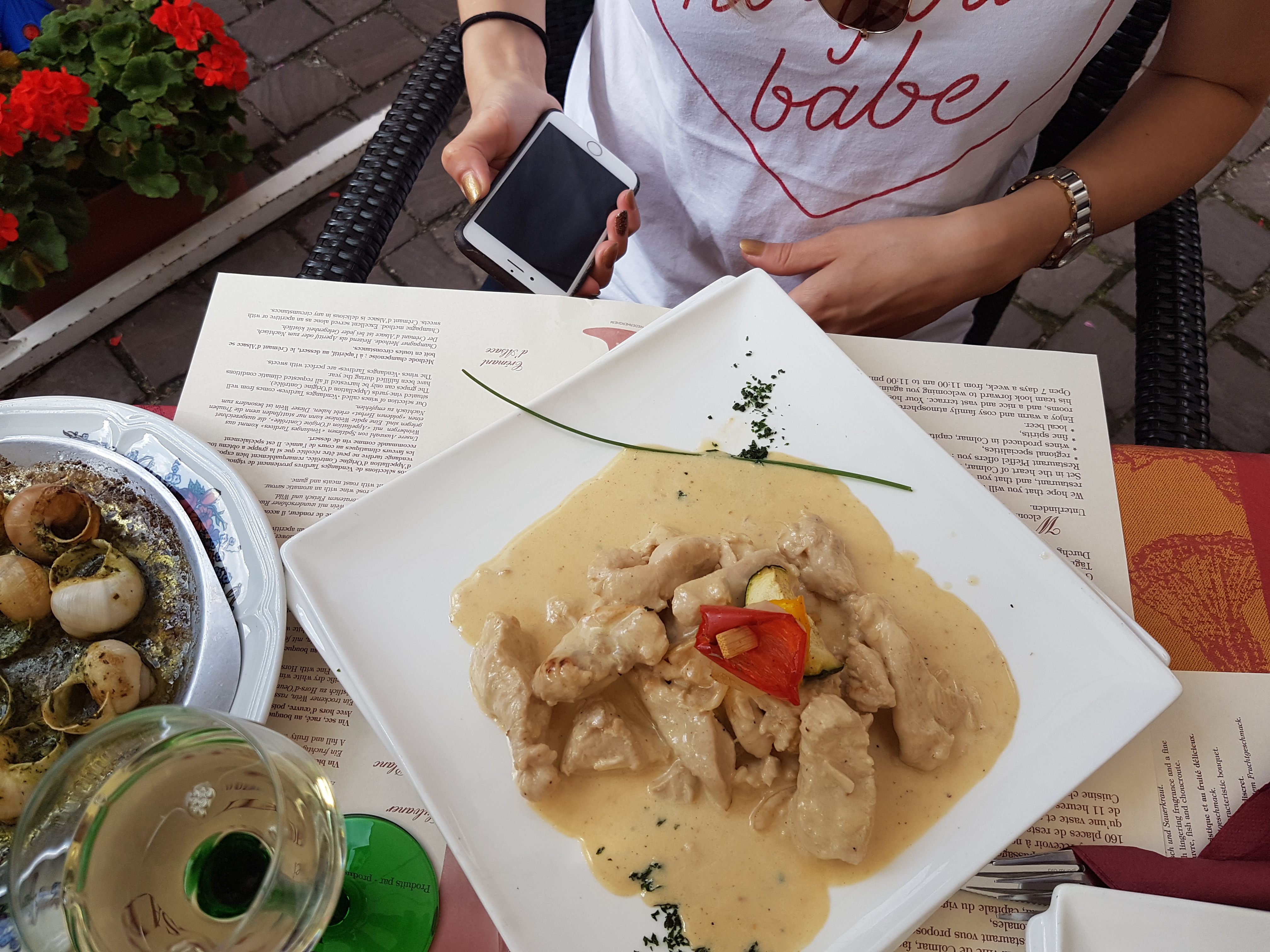 C'est dommage la terrasse est agréable, mais le repas, escargots et la salade vraiment pas au niveau... les escargots sont meilleurs chez Picard et pourtant ce n'est pas une référence... Le pichet de 50cl de Sylvaner est quand même à 20,00€!