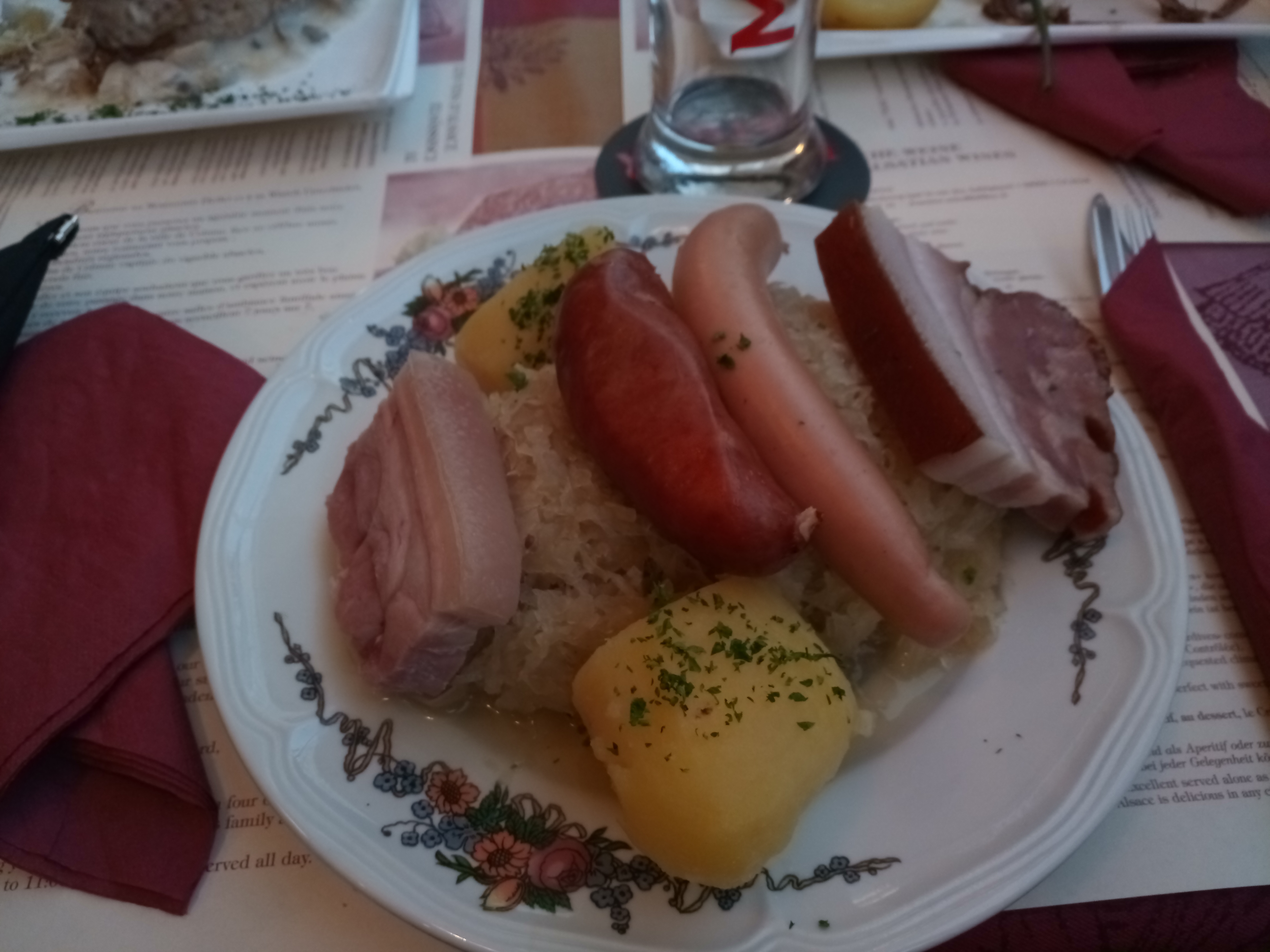 Choucroute, viande trop grasse. Serveurs aimables