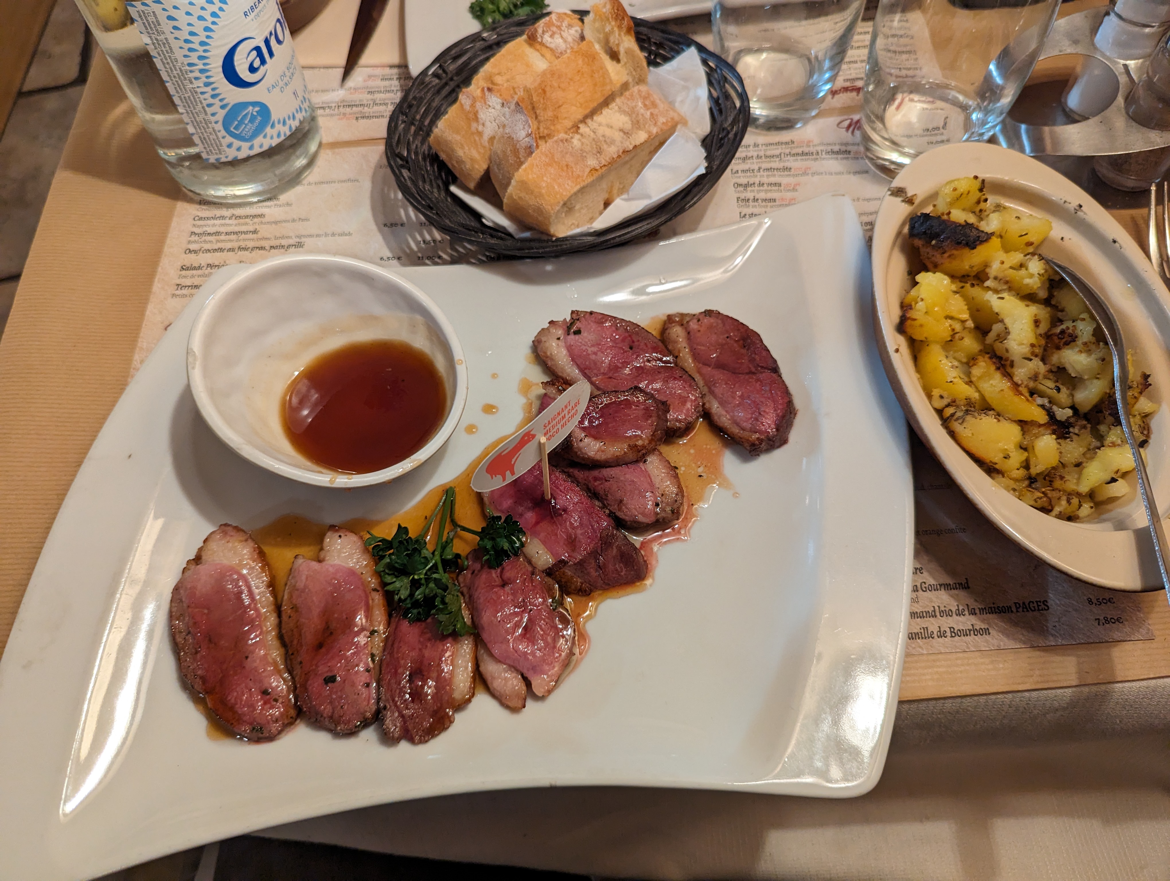 Une très bonne ambiance, un resto au décor rustique. Repas délicieux du début à la fin. Je ne suis pas très viandarde mais j'ai pris un magret de canard à tomber par terre. Le temps d'attente entre les plats et pile ce qu'il faut pour digérer et apprécier le prochain plat. Un dimanche midi au top .