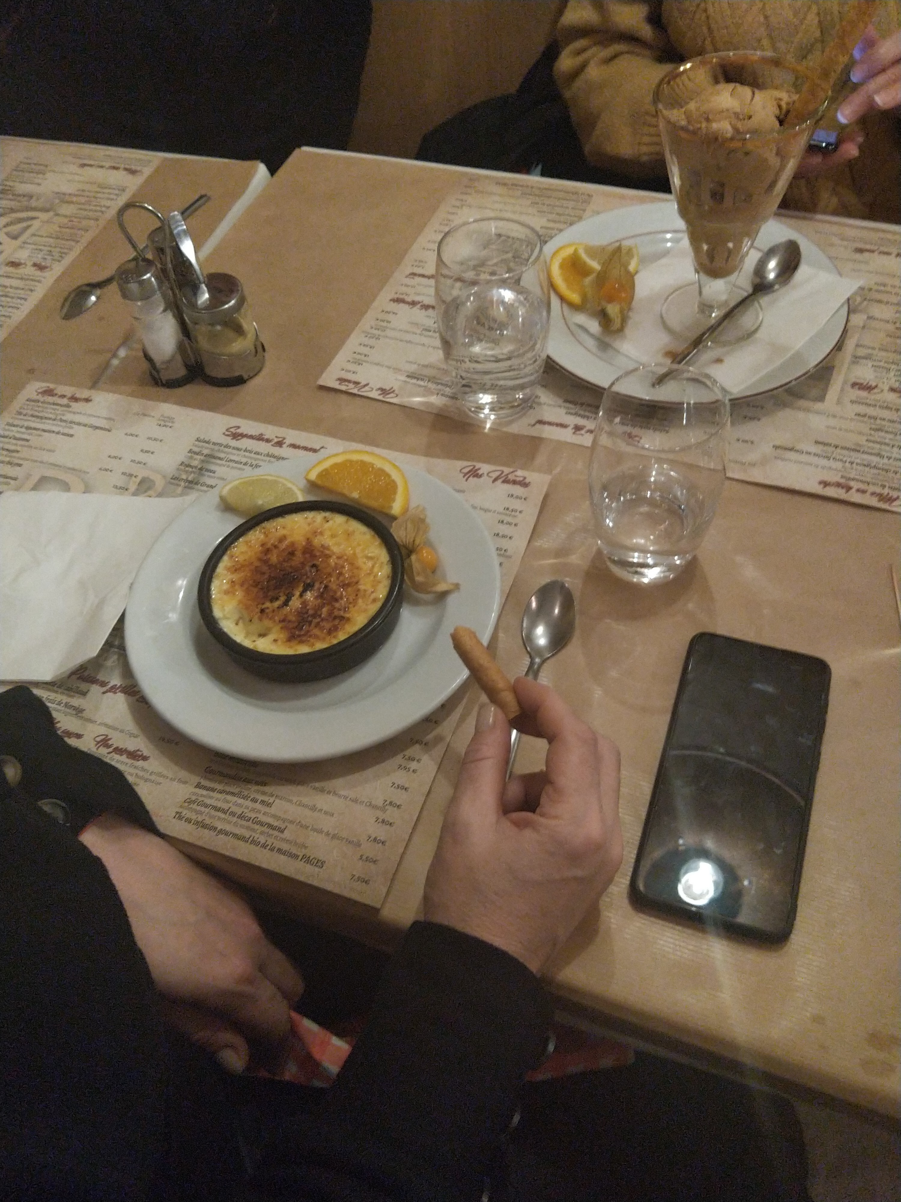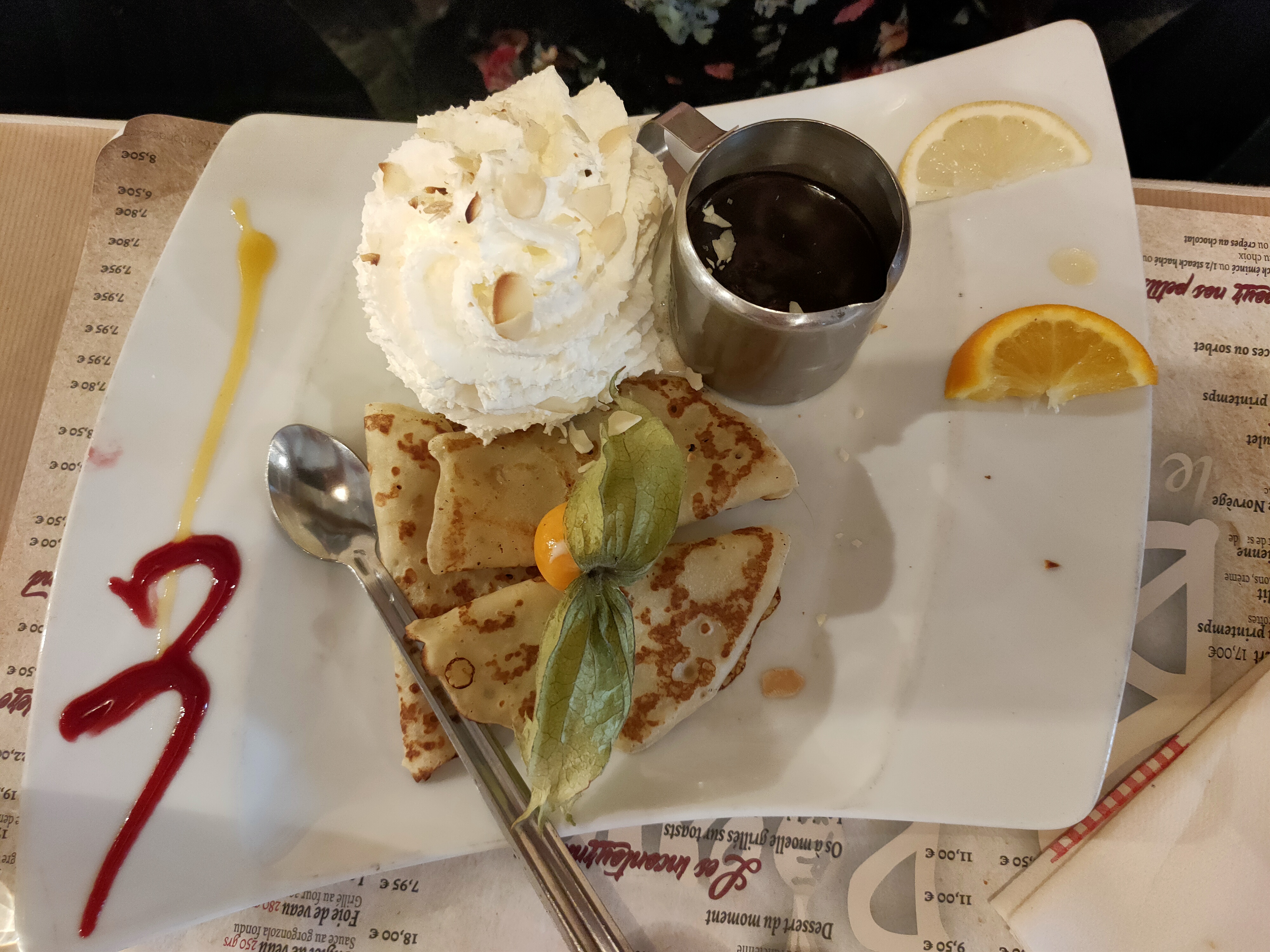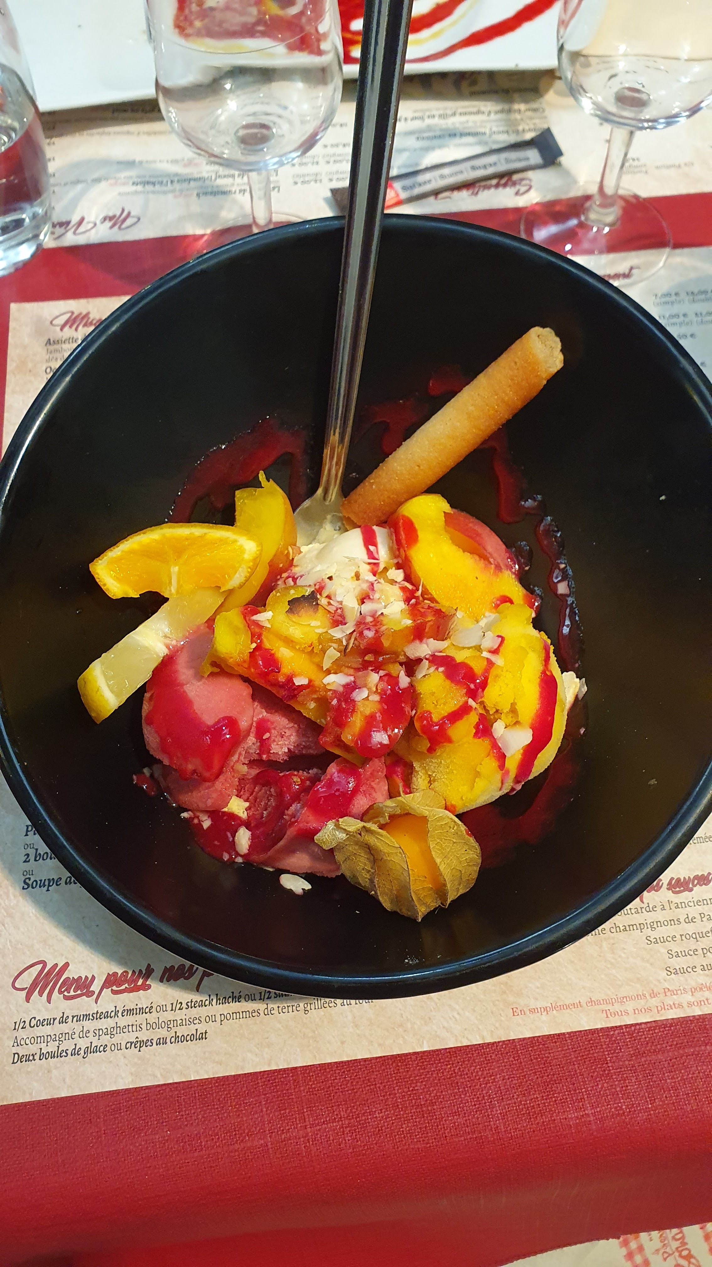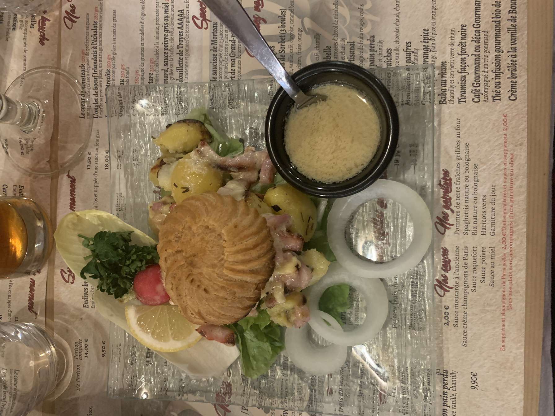 J'ai mangé dans ce restaurant à l'occasion de l'anniversaire d'un ami. Dommage qu'ils ne proposent pas vraiment de plats végétariens en dehors des salades. Sinon les salades sont bonnes et à des prix corrects. J'ai beaucoup aimé les profiteroles que j'ai prises en dessert. Le personnel est sympathique. Par contre, on a attendu 1 h avant d'avoir une table de libre. Jolie décoration au fond de la salle et à l'étage.