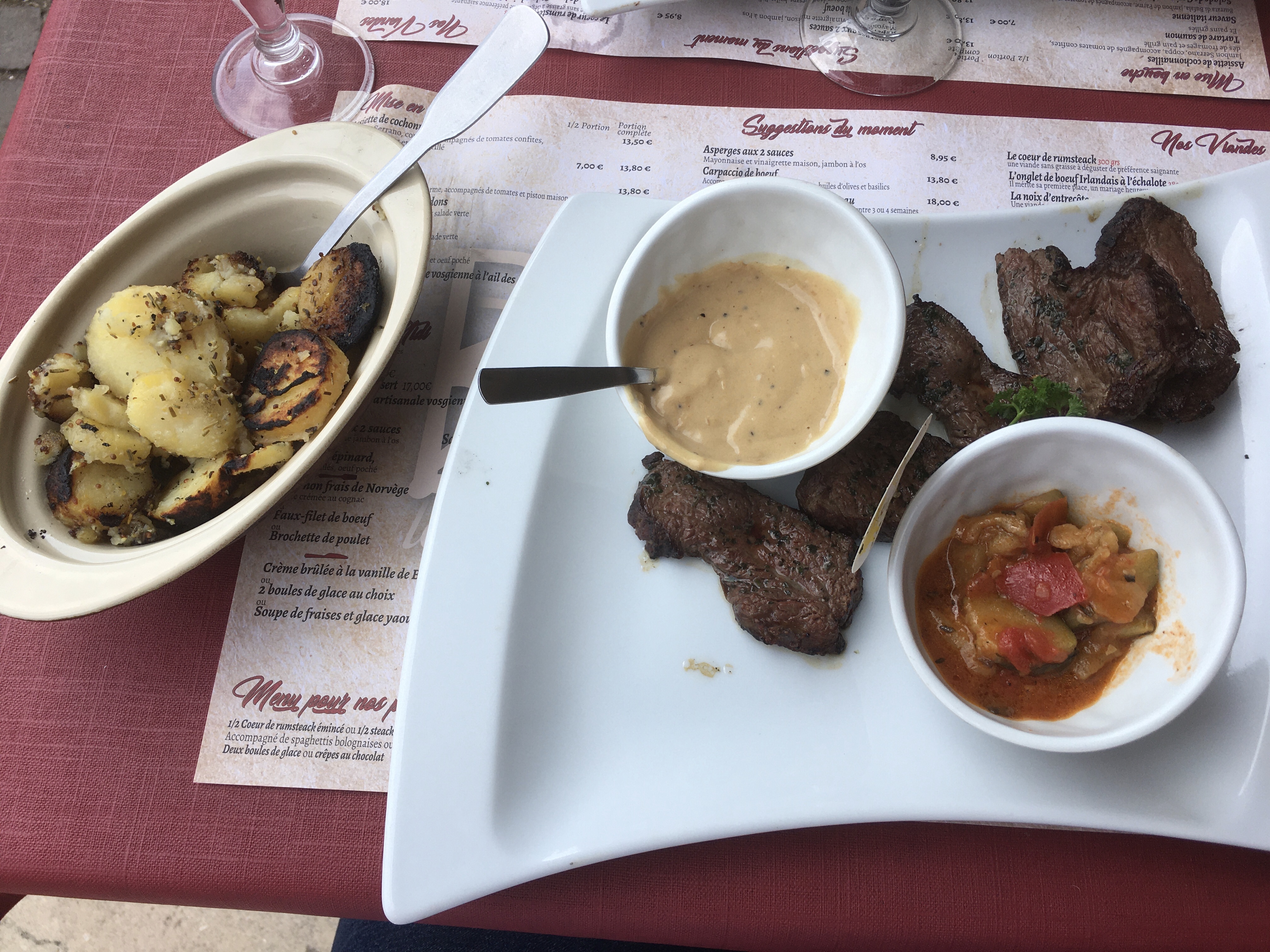 Quand on aime la viande, adresse incontournable de Pont à Mousson, j'y viens toujours les yeux fermés. La pièce du boucher n'était pas excellente cette fois et pas tout à fait cuite comme je le souhaitais, le personnel l'a remarqué et n'a pas hésité à enlever mon assiette pour me donner une pièce de boeuf parfaitement cuite à bleu et délicieuse, rien à redire, au service du client. Très bon moment comme à chaque passage.