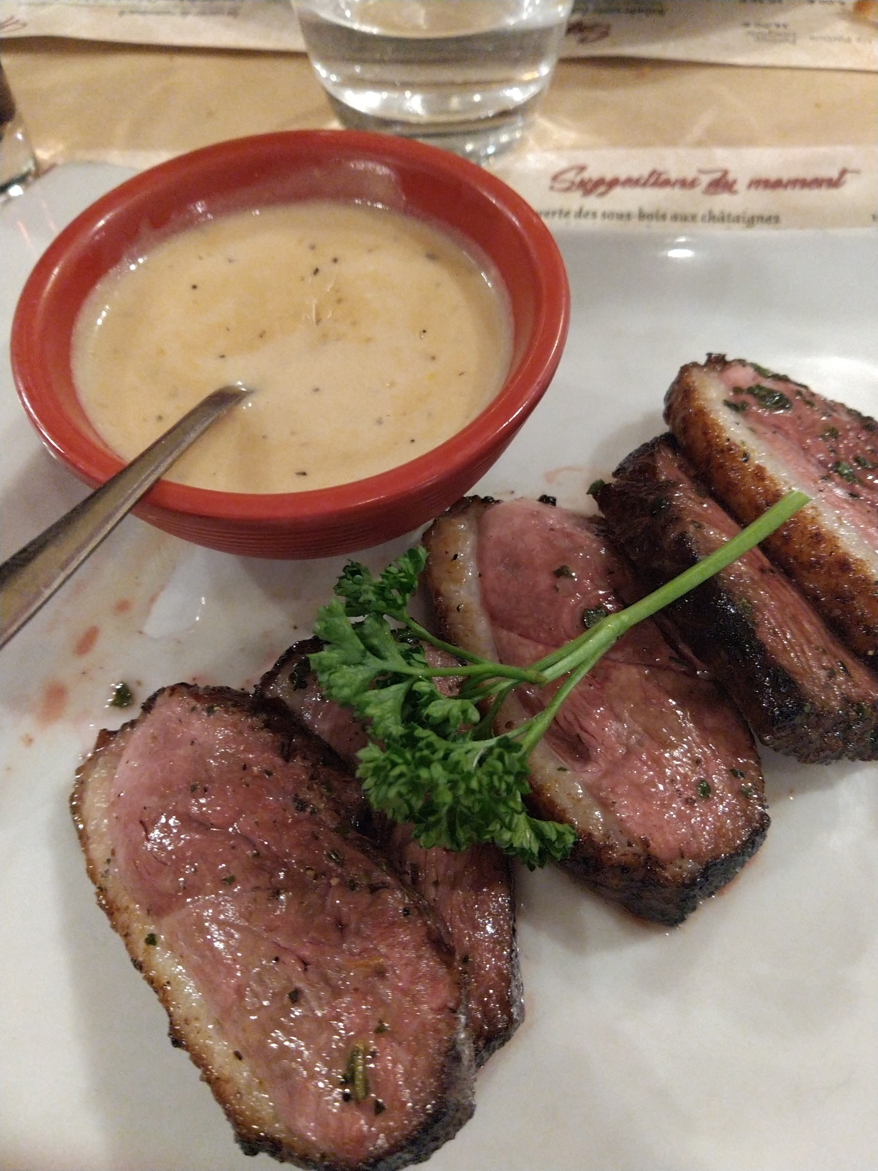 J'y ai mangé 2 jours de suites. 1er soir : endives sauce foie gras avec du jambon a l'os --> Excellent mais l'endive supplémentaire à 5.50, je trouve cela un peu excessif 2eme soir : magret de canard sauce miel --> Excellent J'y suis également allé l'an passé et la qualité était identique. Je conseille.