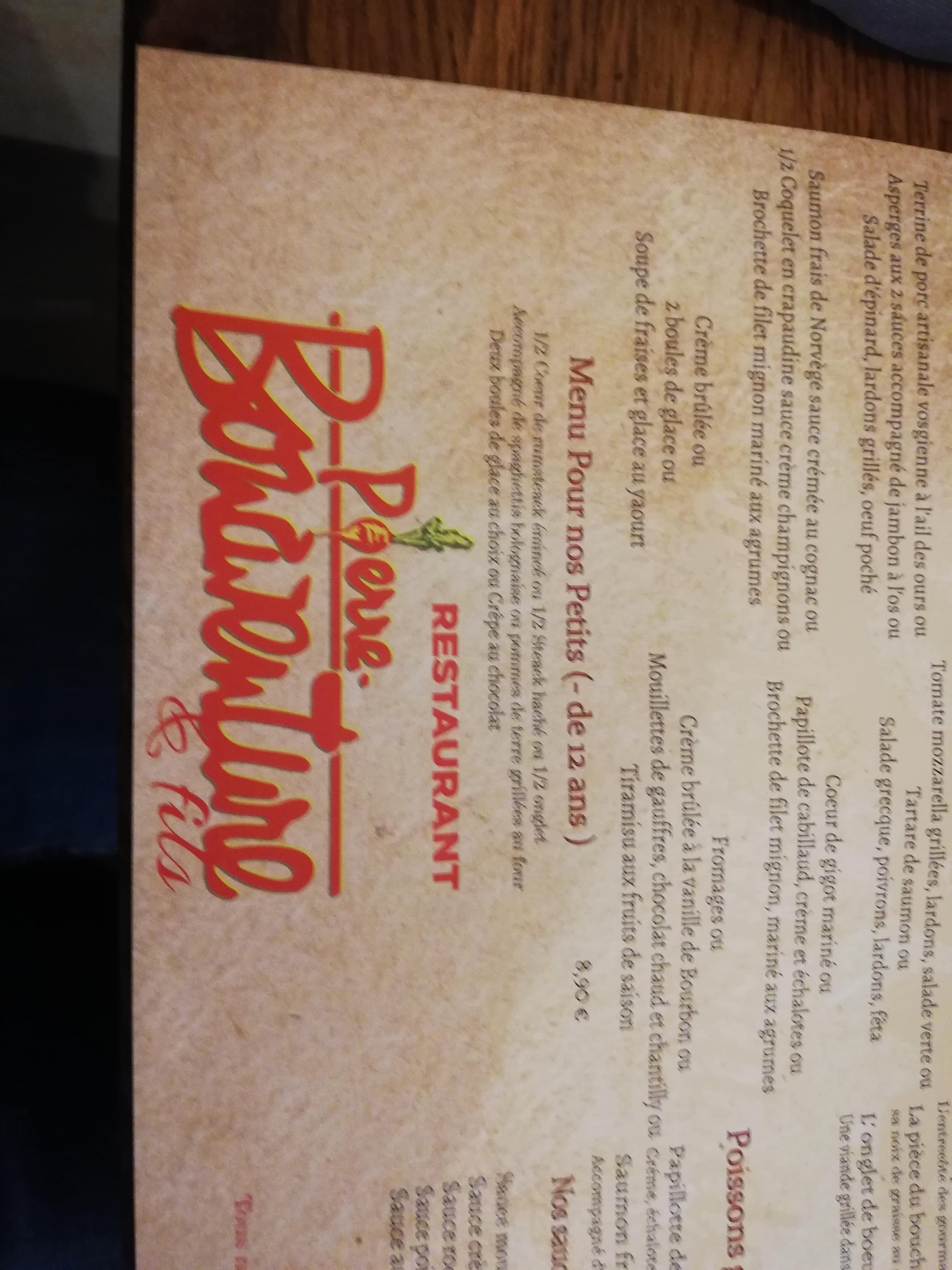 Cuisine au feu de bois superbe avec des produits de qualité. Les 2 fils de Mr Bonaventure sont de très bon commerçants toujours aimable et serviable. Je recommande vivement