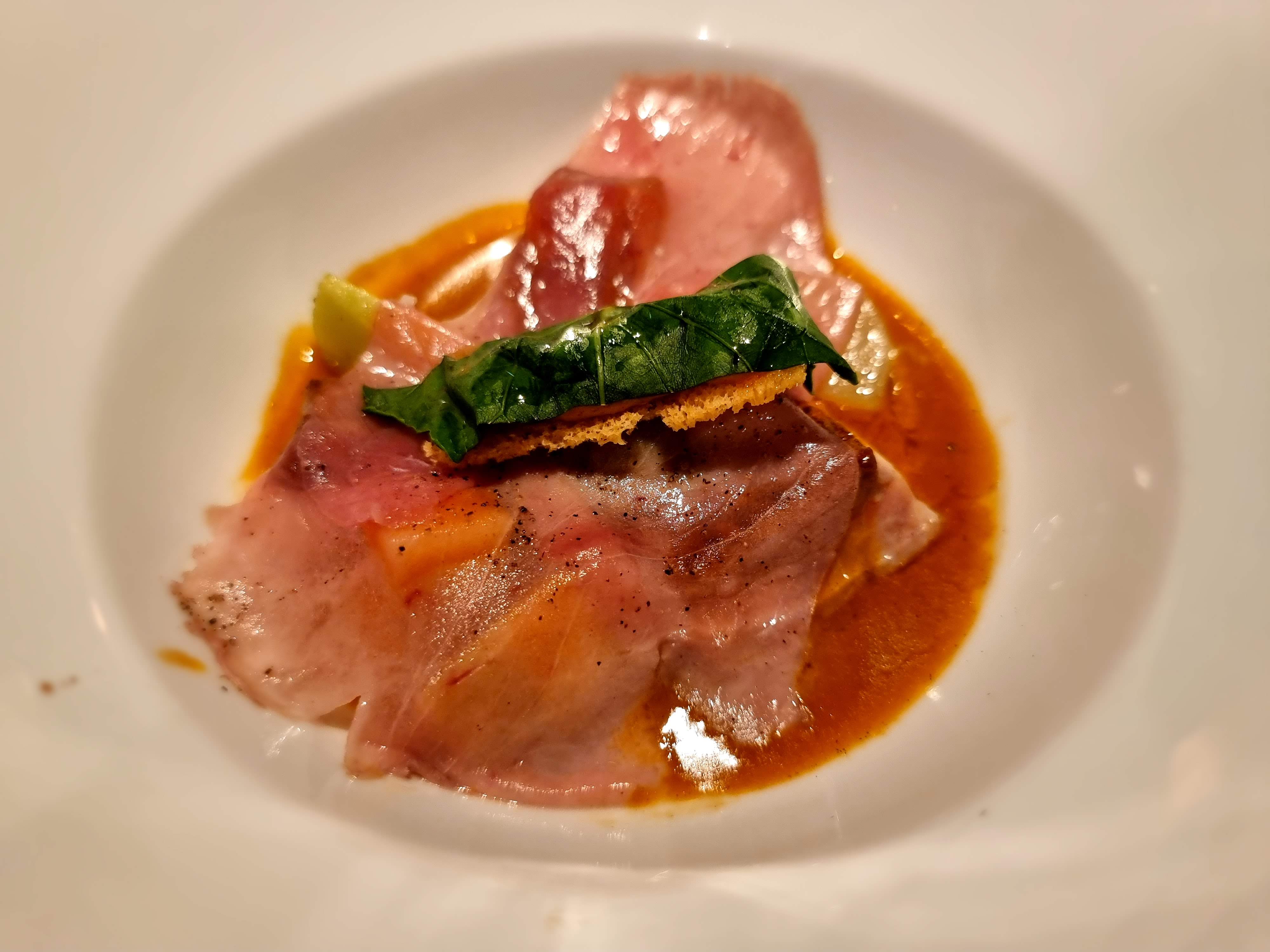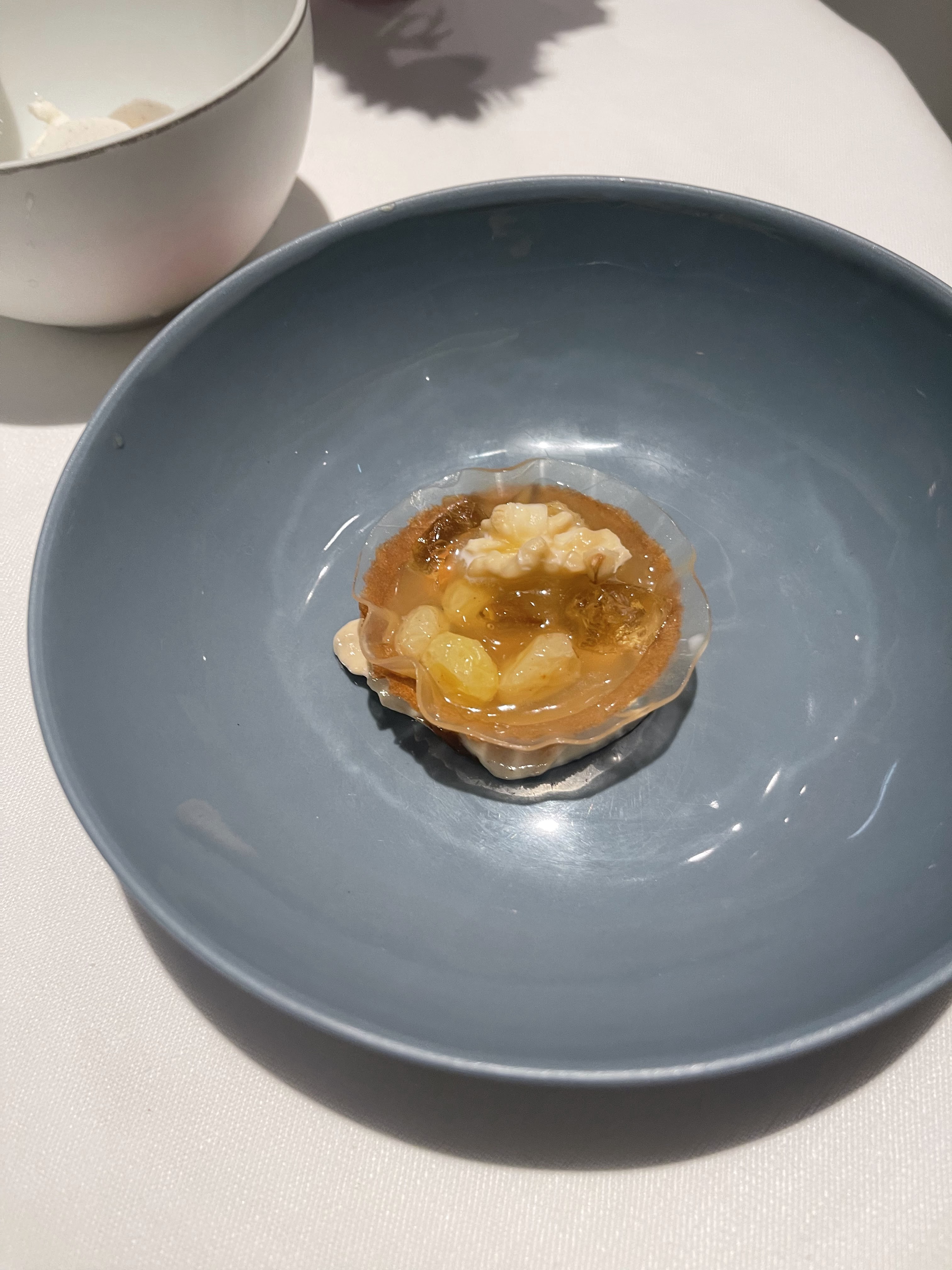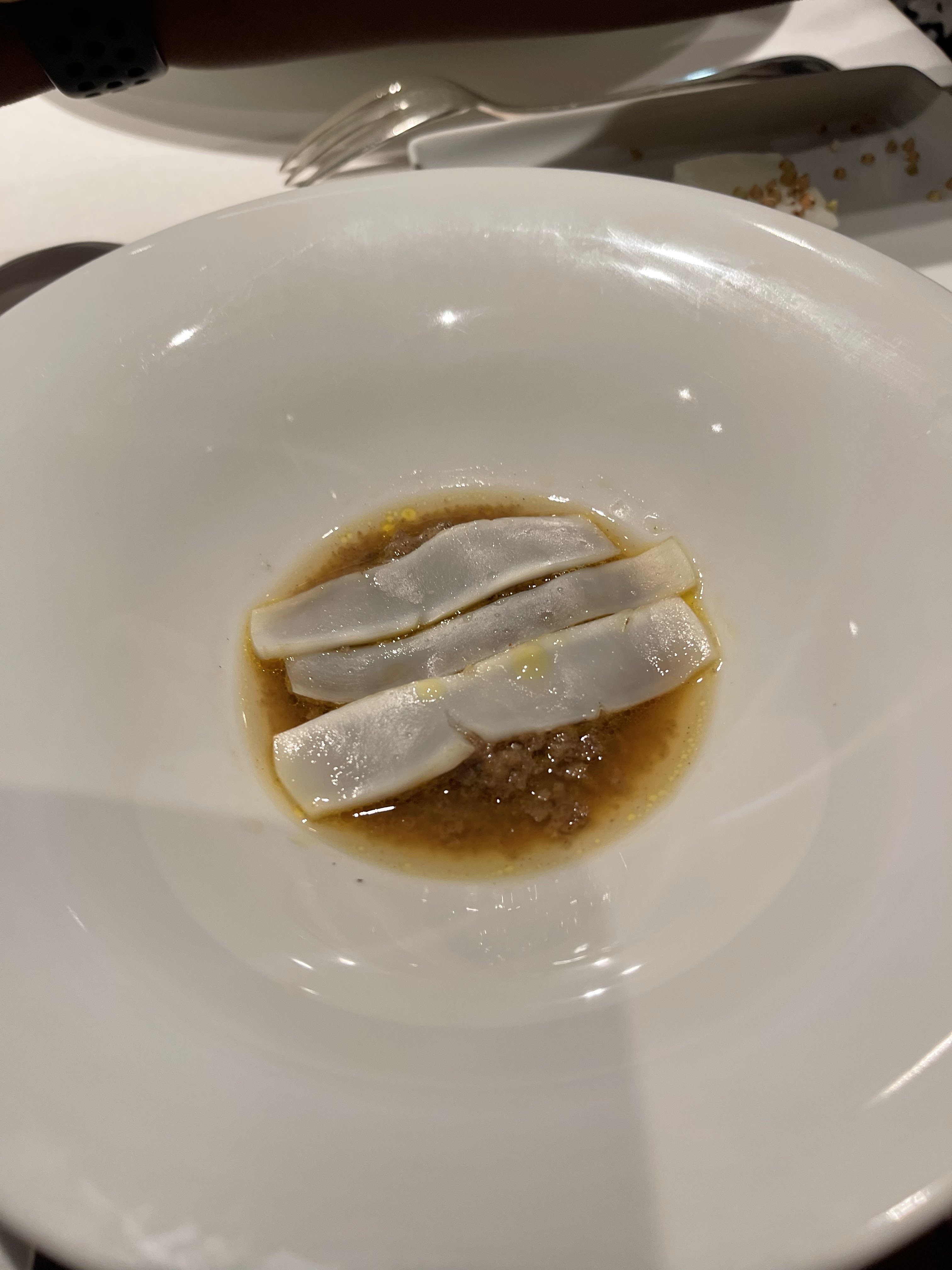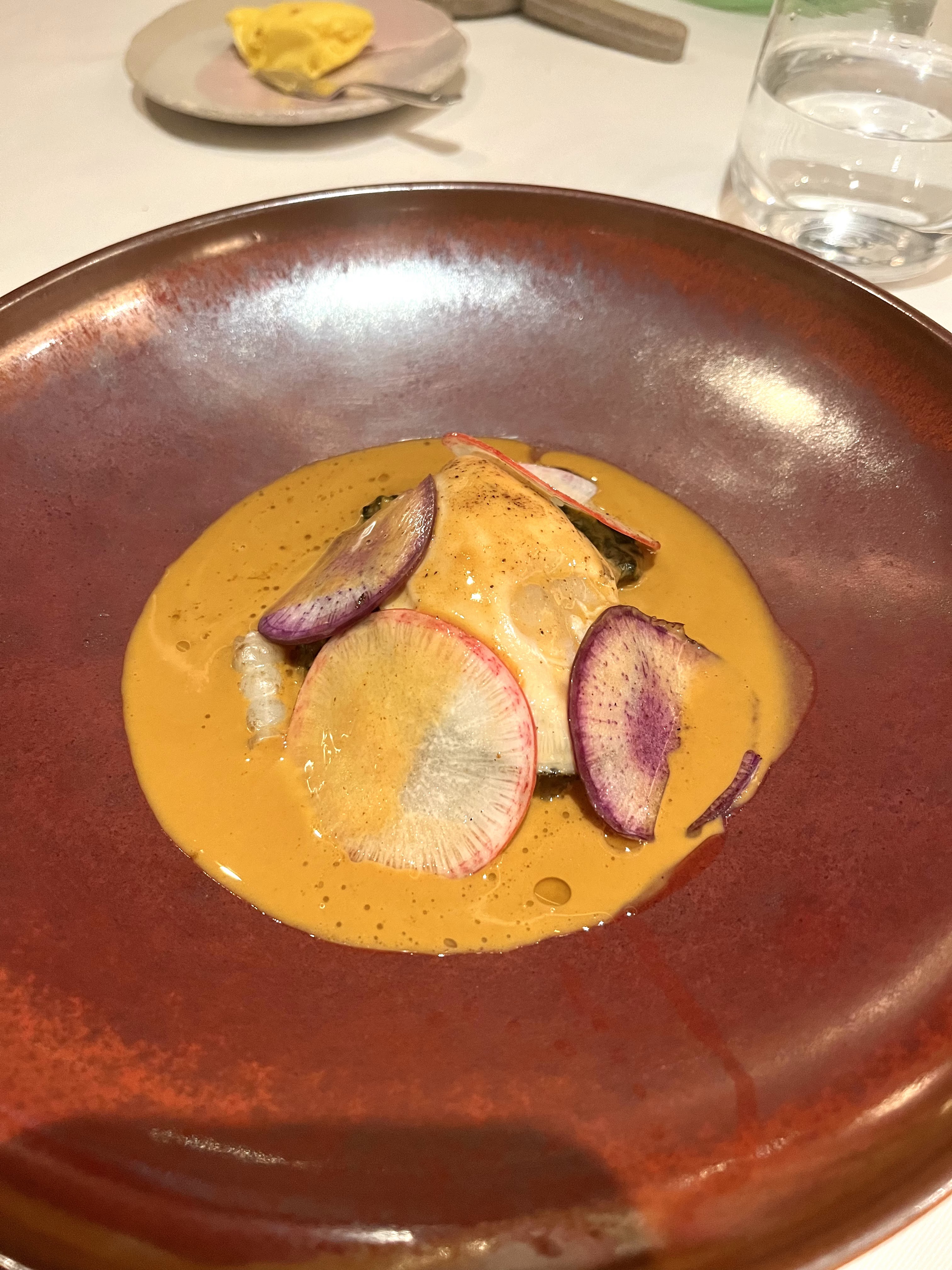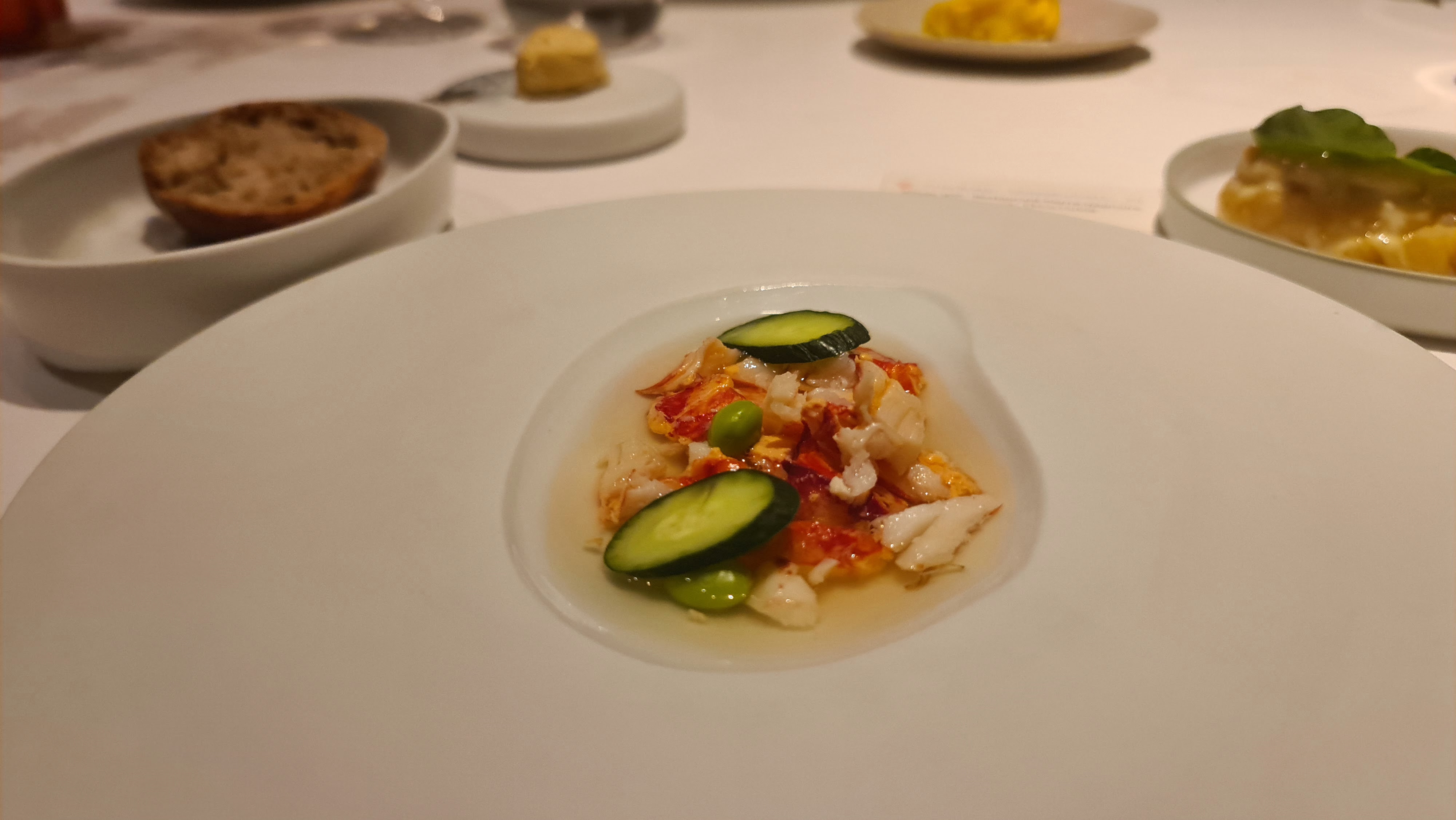 Le consommé de langoustine était trop salé. Lorsque j'en ai parlé, le gérant m'a expliqué que le consommé est préparé à partir de coquilles de langoustines, ce qui lui confère une forte saveur iodée. Il attribue le goût à cette méthode de préparation unique et « cela n’a rien à voir avec le sel ». Cependant, je m'interroge sur le bien-fondé d'une telle préparation si elle donne un goût presque immangeable, surtout pour un plat qui est le plus cher de la carte. Les autres plats n’étaient pas mauvais, mais j’ai eu du mal à comprendre pourquoi ils sont qualifiés de pionniers. Par ailleurs, la présentation semblait manquer de finesse. De plus, en tant qu'invité solo, j'ai bénéficié d'un service réduit : pas de présentation des ingrédients, comme les différentes variétés de vanille.