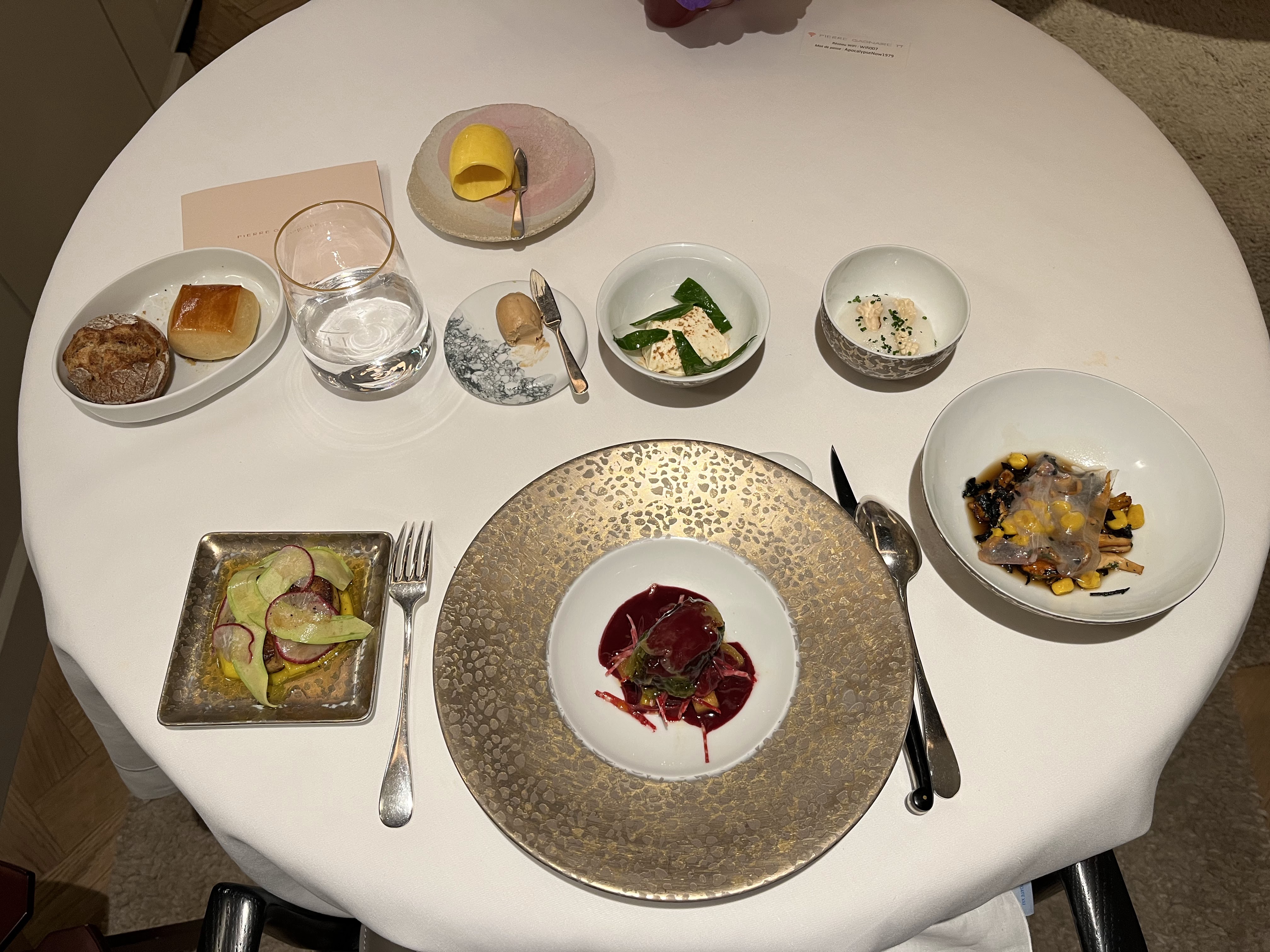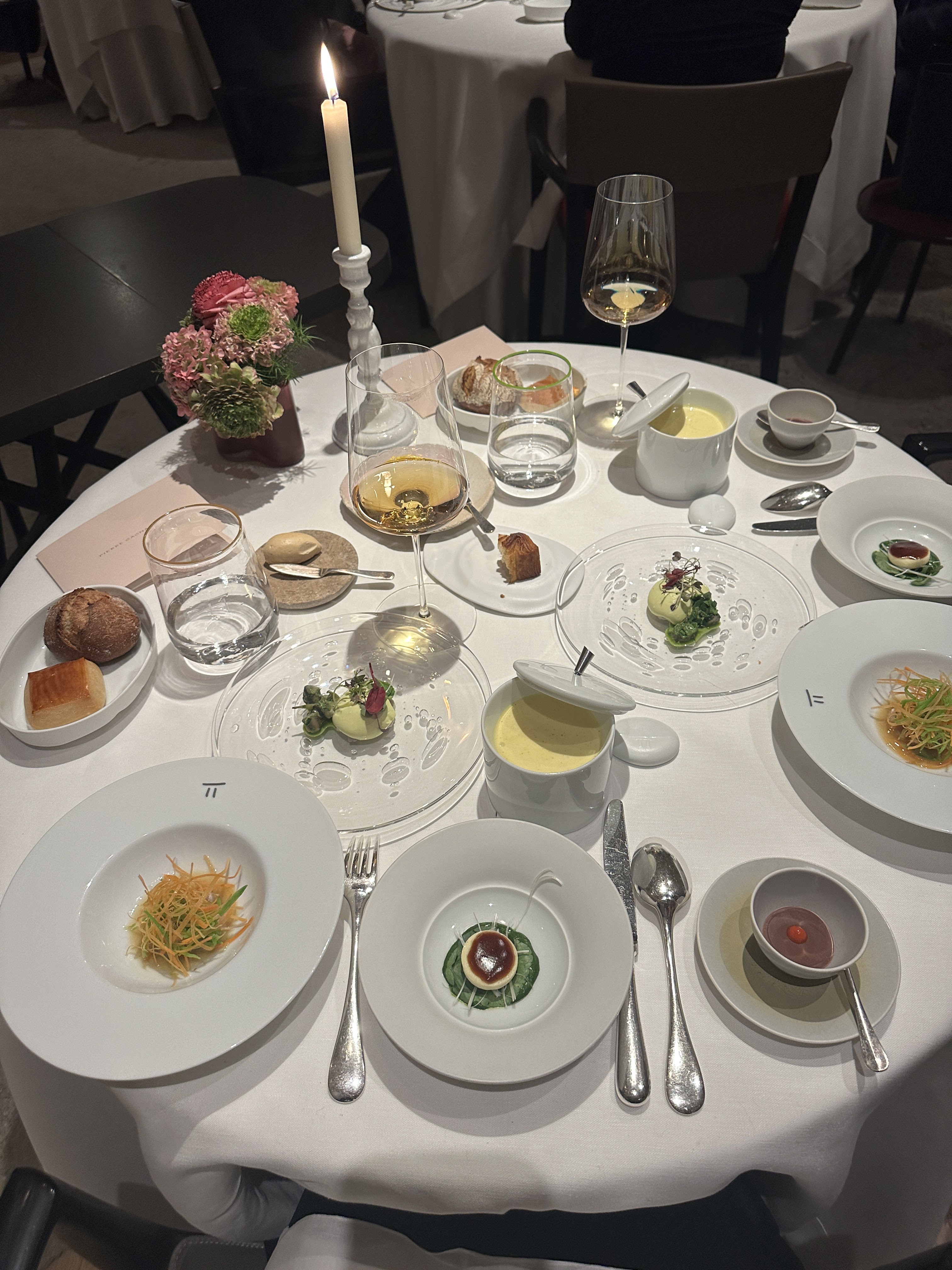 Le restaurant phare du chef Pierre, avec ses trois étoiles Michelin, est une expérience culinaire dont seuls quelques élus peuvent profiter. Le menu du dîner à plats fixes est le moyen privilégié pour profiter de tout ce que ce chef remarquable a à offrir. La plus grande surprise a été le grand nombre de cours « extra mini » intercalés dans les cours réguliers. La nourriture est évidemment excellente, tout comme le service et l'attention portée aux détails. Si vous avez l’occasion de dîner ici lors de votre prochain voyage à Paris, n’hésitez pas.