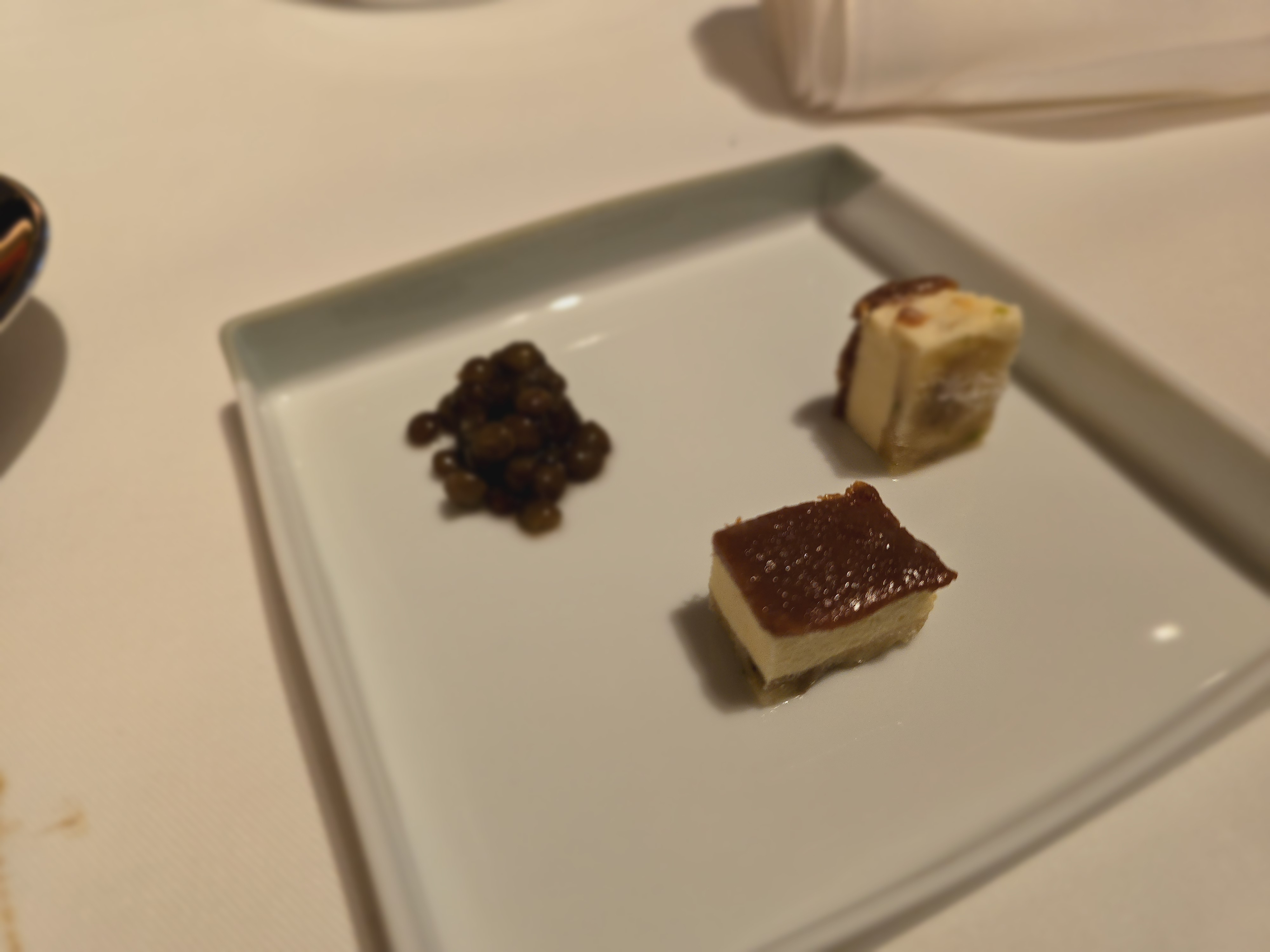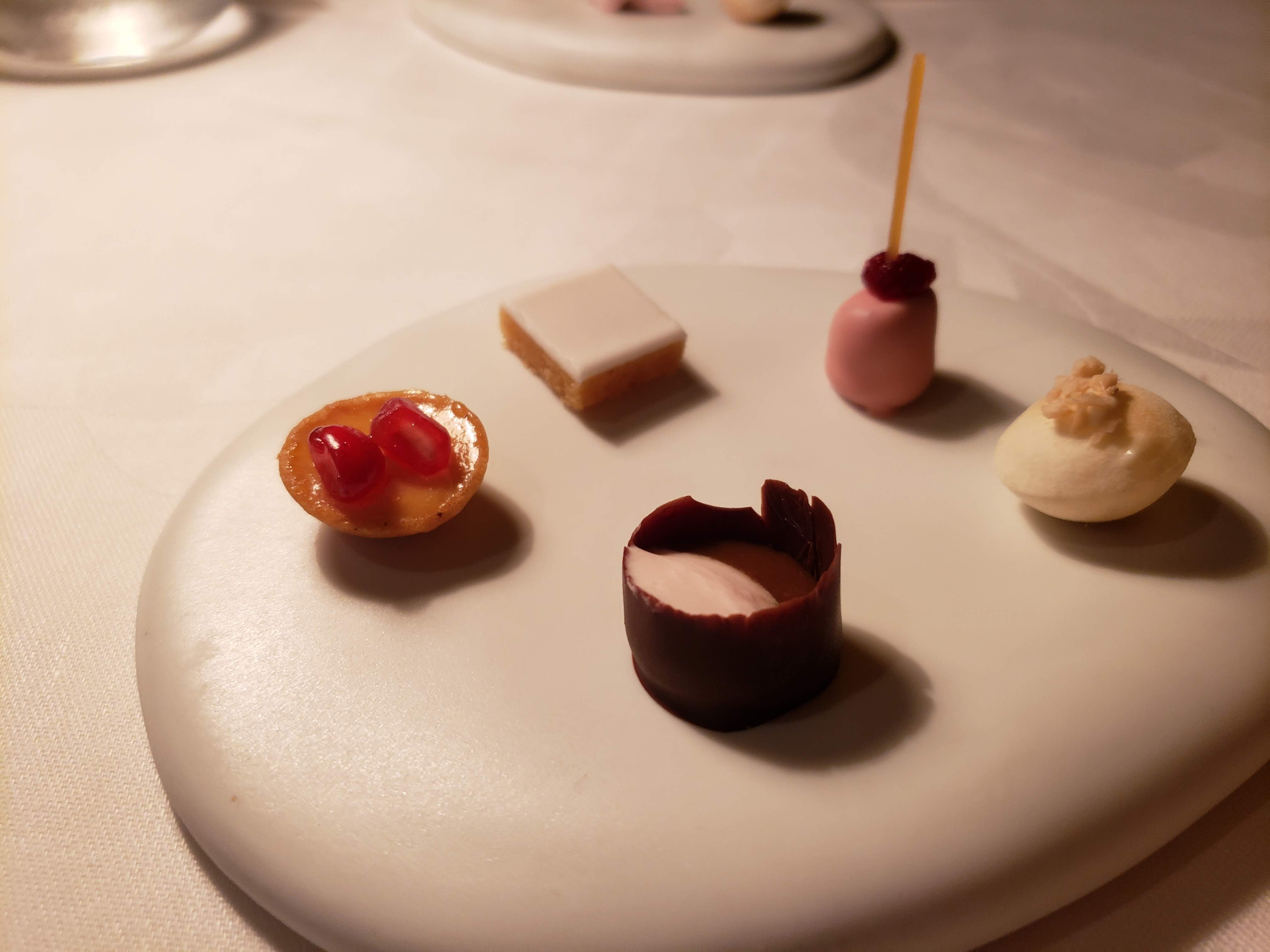 L'élément le plus inoubliable lors d'un délicieux dîner a été, de manière inattendue, le choix étrange de la musique de fond. D'abord, c'était trop fort, puis toute la playlist semblait être faite à partir du top 20 des panneaux publicitaires il y a vingt ans. C'est agréable que nous finissions par chanter parfois, mais pour un repas raffiné, tellement intéressant. Ce set de neuf desserts ! Aimer! Si je suis difficile, ma serviette a été repassée correctement, mais l'expérience a été plutôt bonne.