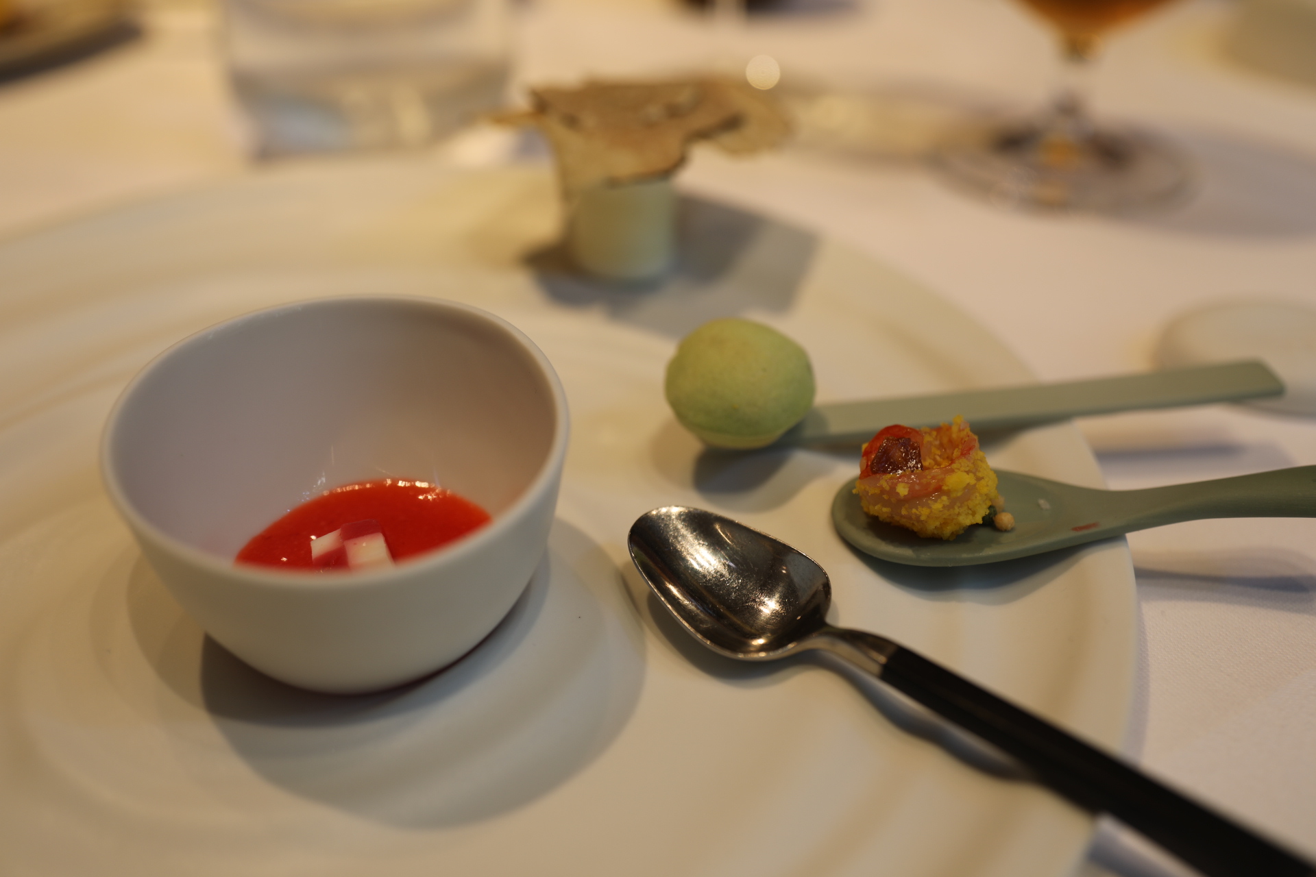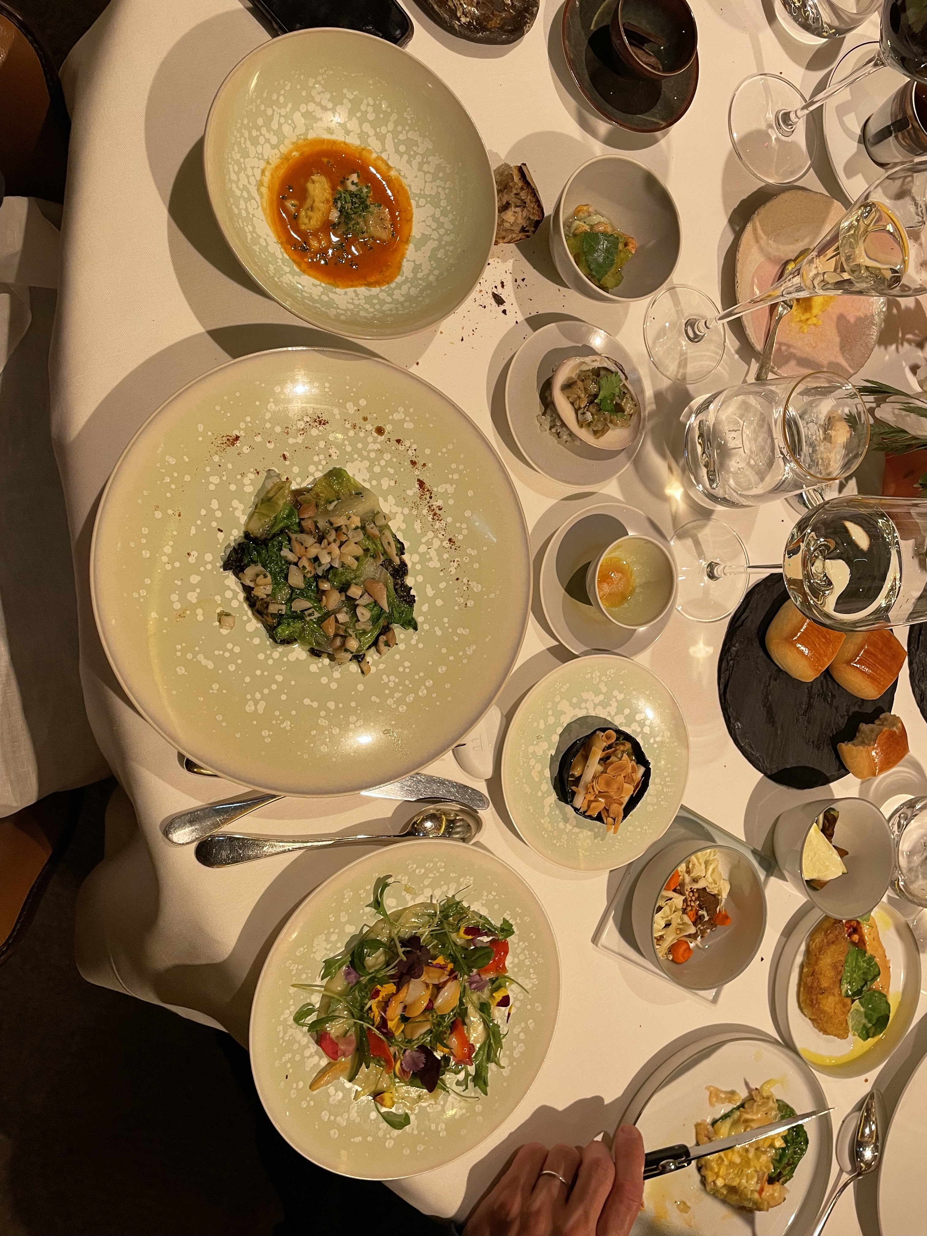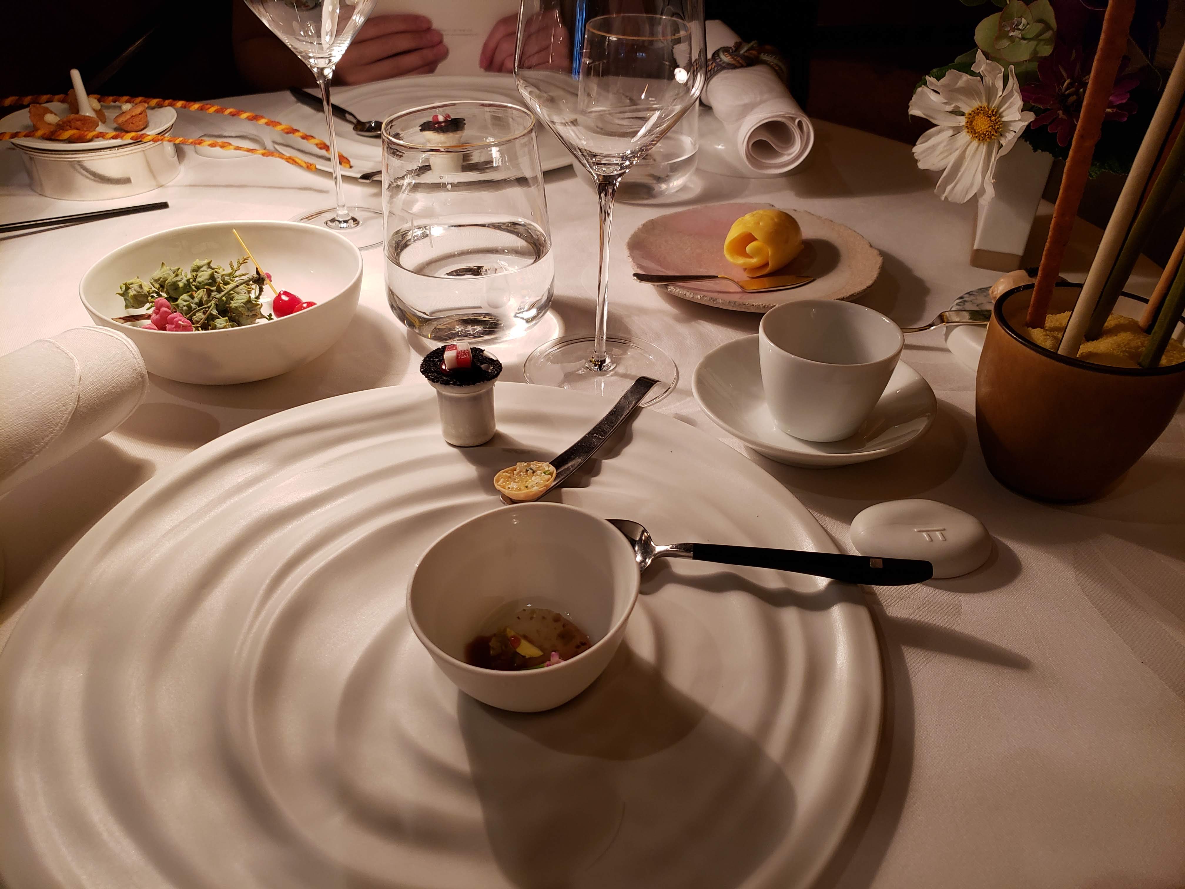 Le seul menu dégustation que j’ai eu où je n’avais pas peur de repartir affamé. En fait, j'avais le souci inverse ! Il y avait deux séries d'entrées avant un énorme plat d'entrée, puis le plat principal et chaque plat - peut-être 30 au total ? - était créatif et délicieux. Digne des distinctions, avec un personnel irréprochable à chaque instant et un cadre raffiné sans être étouffant.