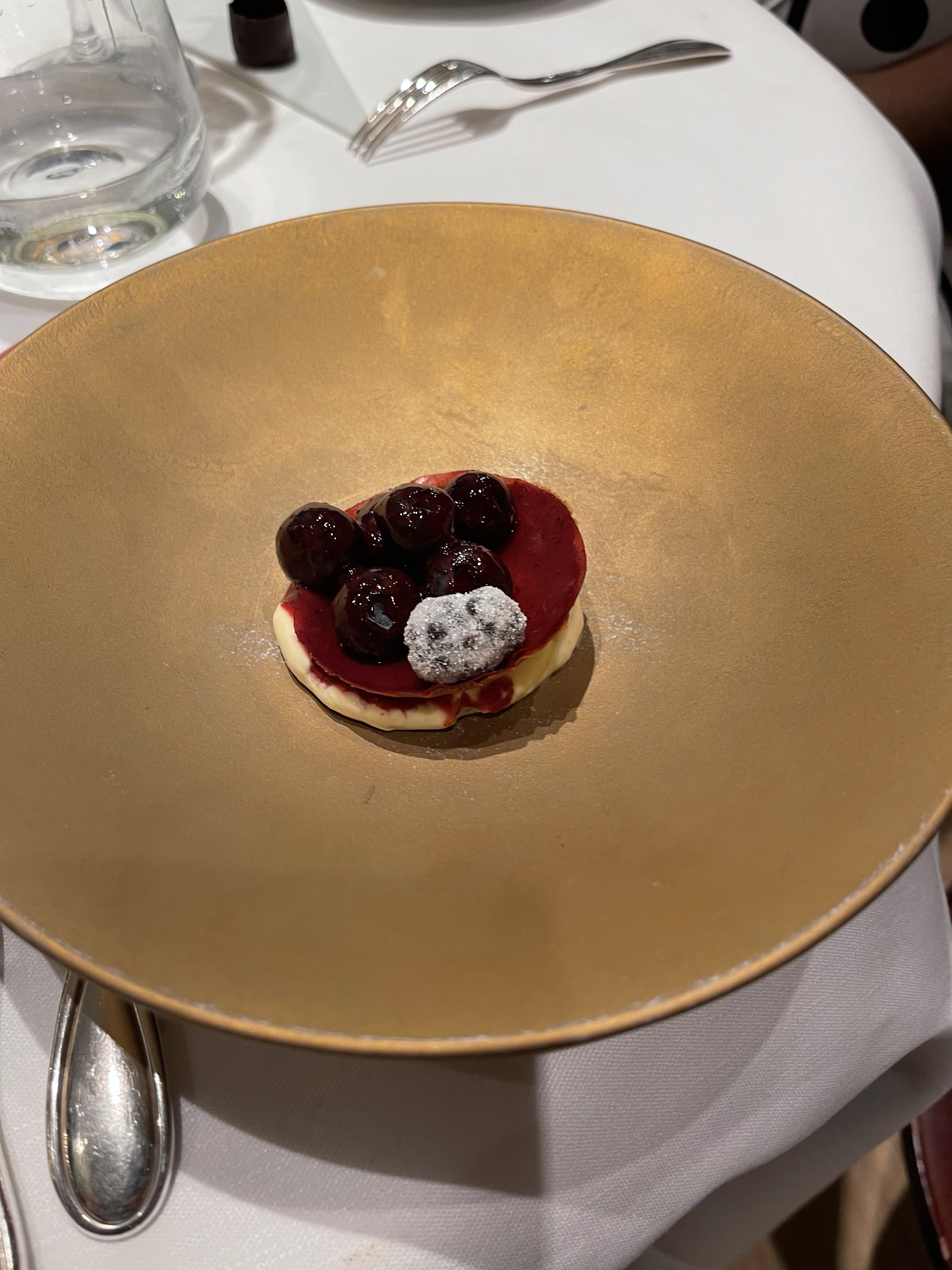 Une superbe découverte. Nous avons découvert un Rembrandt , un Velasquez, un Goya pour finir sur un Cezanne. Une succession de parfum, de texture, de goût qui ont été tout au long du repas un enchantement constant. Un immense merci monsieur Gagnaire ainsi qu’à toute l’équipe du service de table.
