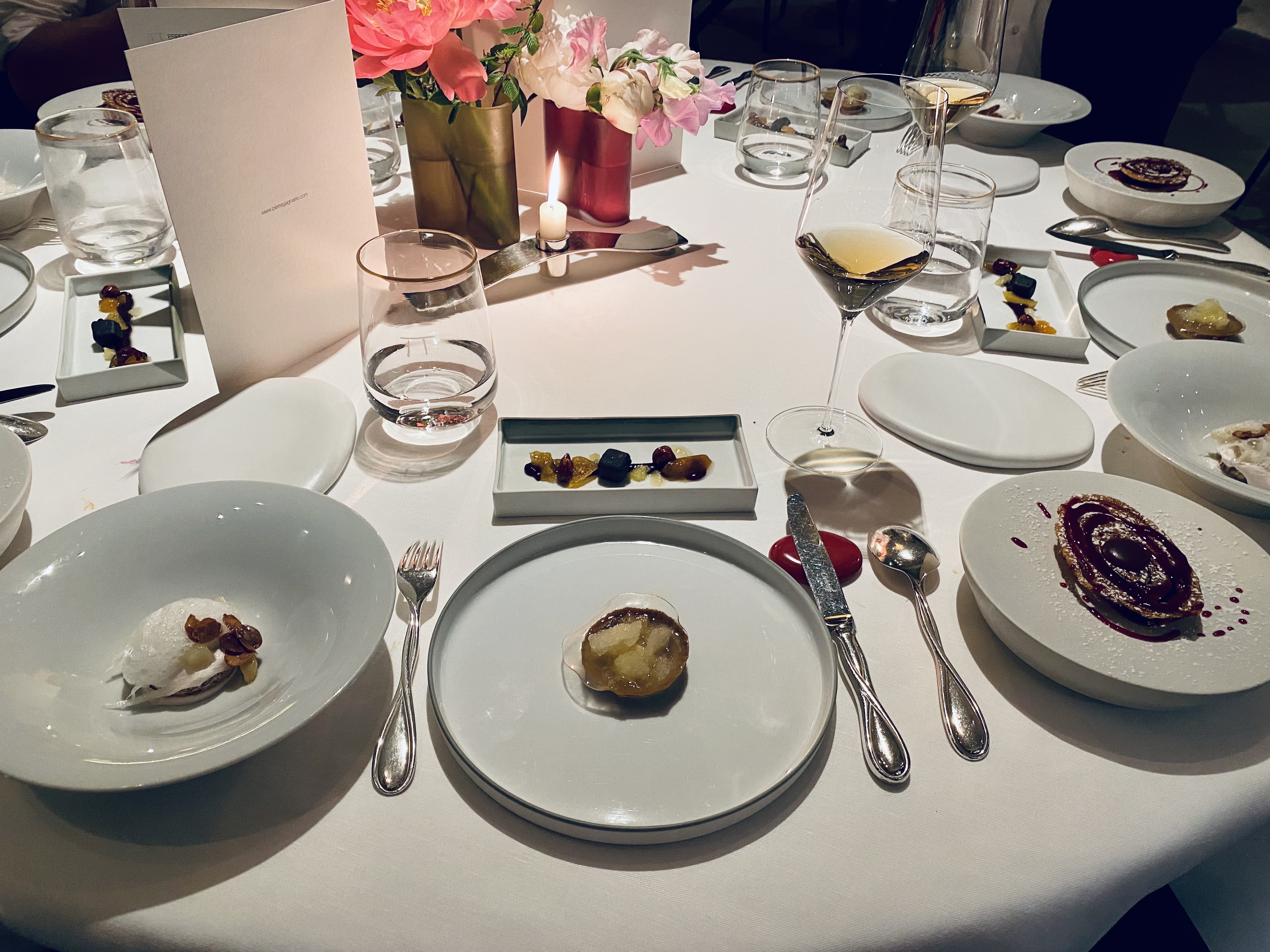 magique,festival de saveurs à savourer avec enthousiasme et recueillement. merci. équipe chaleureuse et attentionnée, Pierre Gagnaire présent, veillant avec attention et délicatesse au plaisir de ce moment de partage gastronomique.
