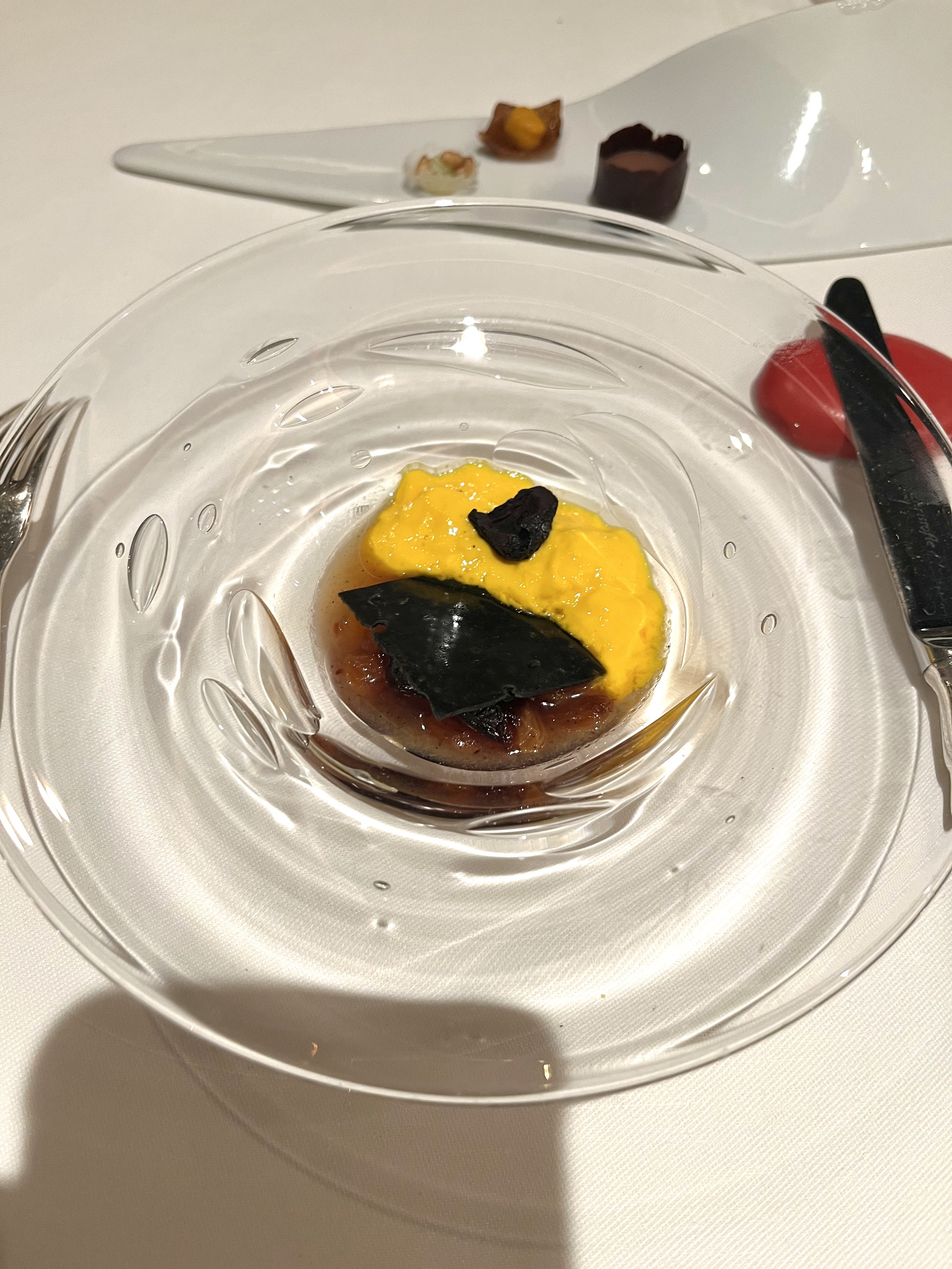 Le restaurant..tout est très bon Mais le lieu n a pas forcément de charme et est même sombre par rapport a plein d autres 3 étoiles qui ont une vue ou lieu atypique