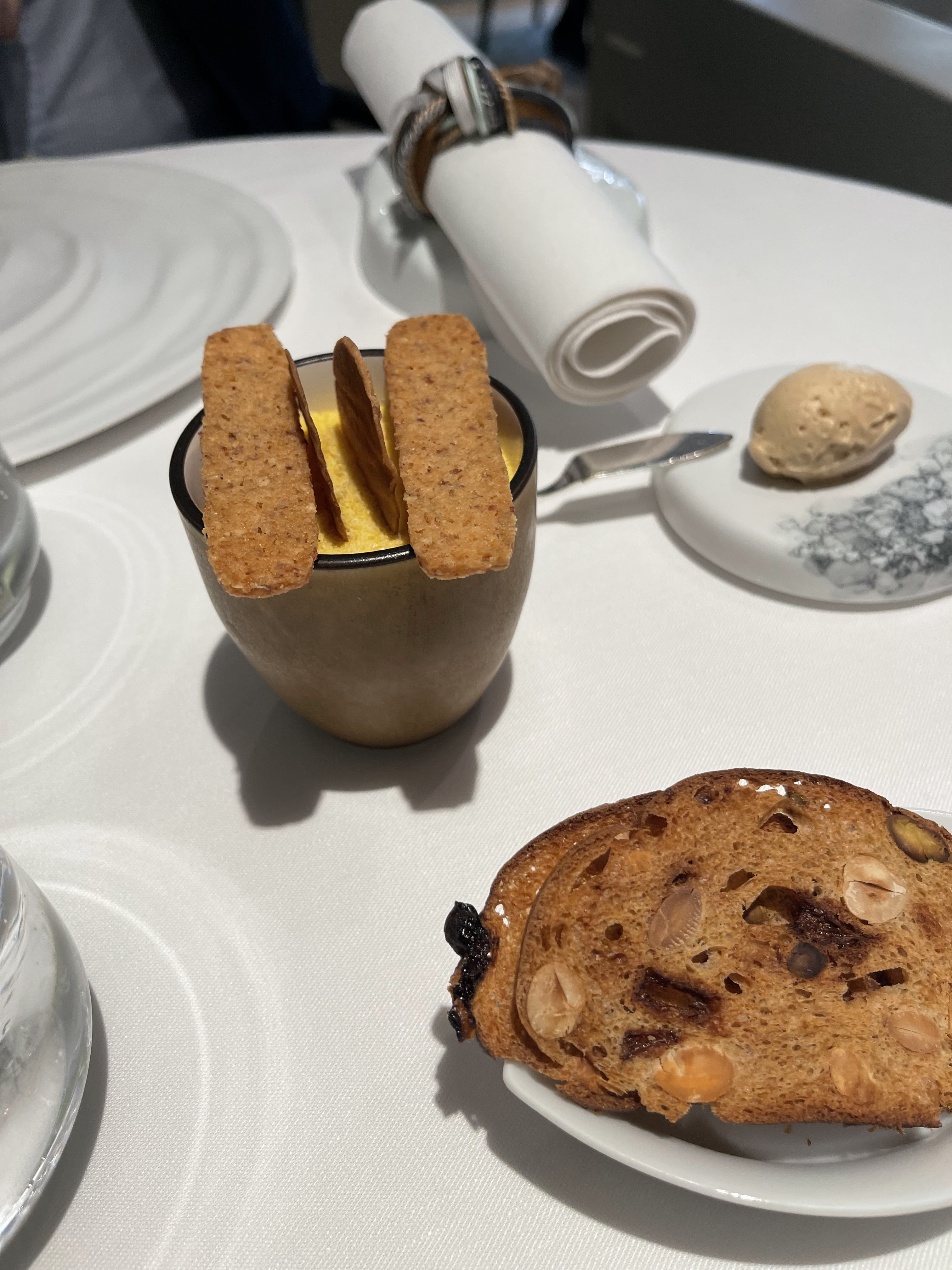 Ce qu’il faut savoir, c’est que la brigade de cuisine PG (à Paris) est d’une qualité de classe mondiale. Il y avait certainement beaucoup de plats exceptionnels (j'ai joint des photos de 1 ou deux des... plats exceptionnels dont je parle, mais PG propose une incroyable variété de plats de référence, donc je ne fais que... gratter la surface. En effet , un des meilleurs 3 étoiles Michelin français partout dans le monde. Les fondamentaux de la cuisine française classique haut de gamme sont à leur meilleur, ici (ouais, je sais, vous vous attendiez à des trucs modernes et fous, Mdr. Eh bien, la présentation est moderne. C'est sûr, mais techniquement, la nourriture n'est pas une question de gadgets. Ce qui est une bonne chose !