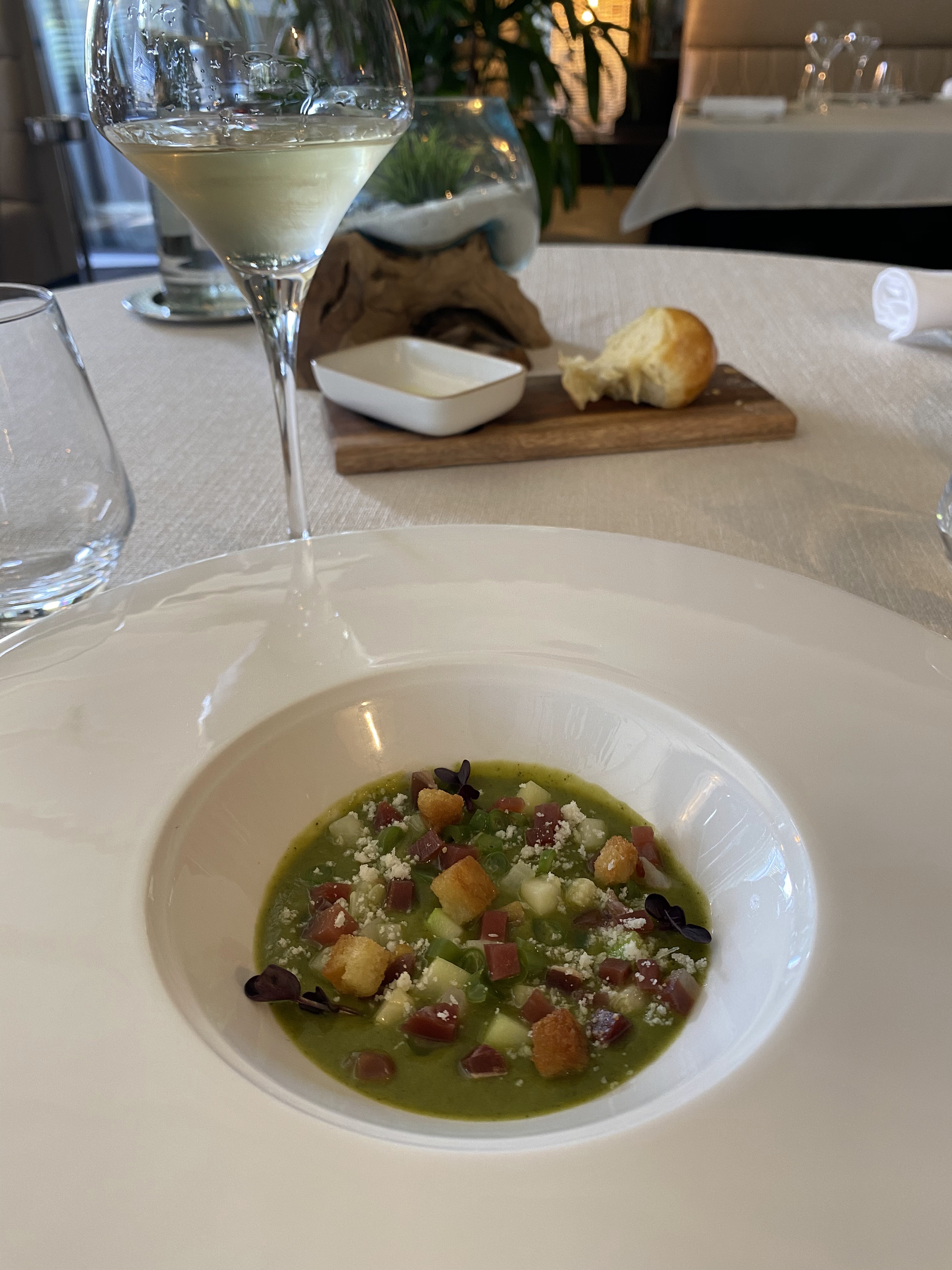 MAGNÍFICO!!! C'était un repas hors du commun. Nous sommes allé avec ma femme et mon petit de 2 mois et c'était une soirée exceptionnelle. Le service de salle est super bien géré et assuré par 2 jeunes très dynamiques, sympas et très attentives. Le repas, je manque des mots pour le décrire. A mon avis, un des meilleurs restaurants étoilés où j'ai jamais mangé. On a pris le menu de printemps avec 7 services et ils étaient tous vraiment bons, du début à la fin, du pesto au dessert, en passant par la Dorade. Pour la première fois dans un restaurant j'ai demandé la brioche pour accompagner le dessert et ils me l'ont servi, un détail très apprécié. Un restaurant qui mérite bien son ⭐ Je serai bien obligé de revenir