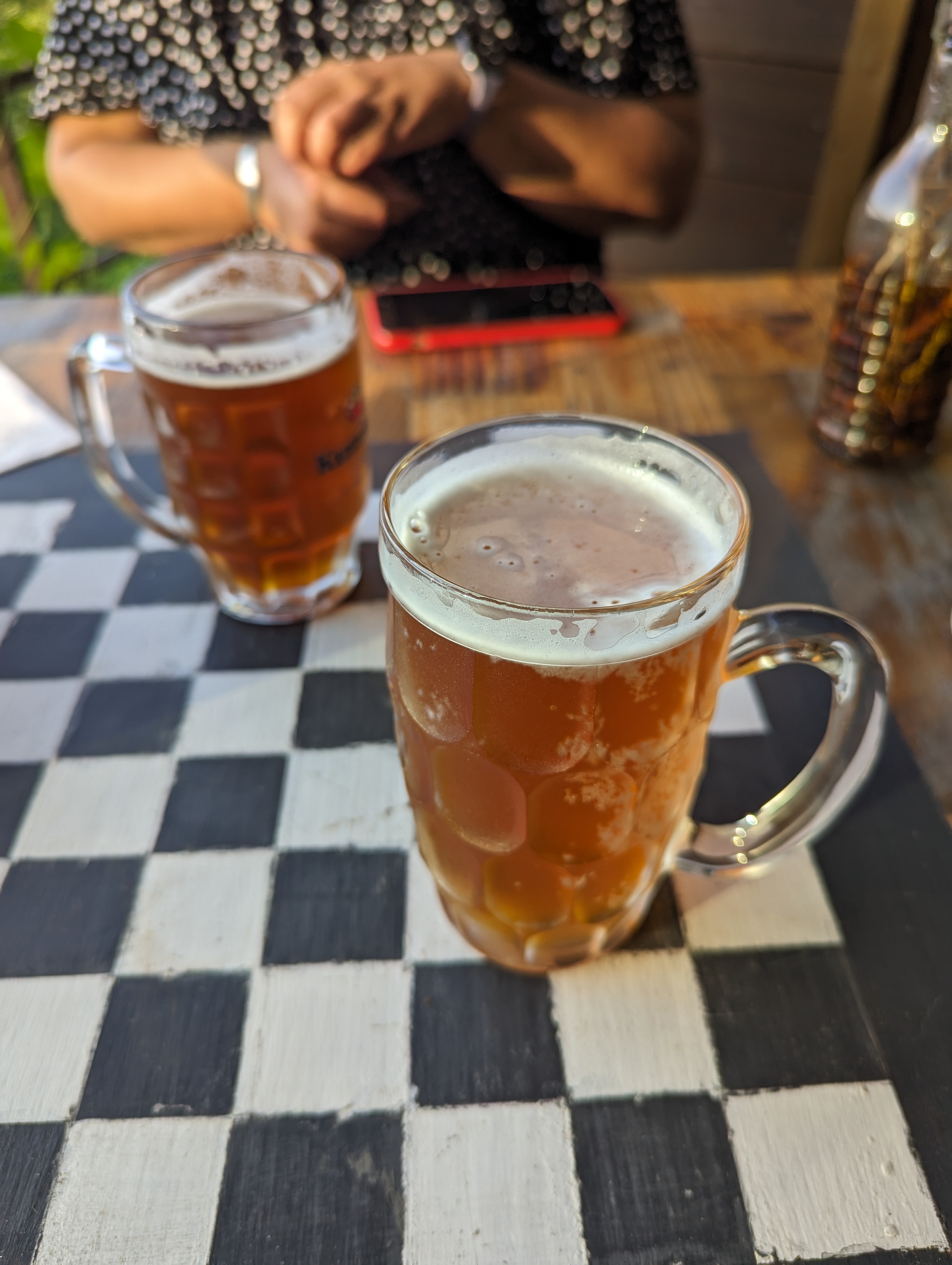 Pizza ok (même s'ils n'utilisent pas de mozzarella). Bonne bière et environnement paisible.