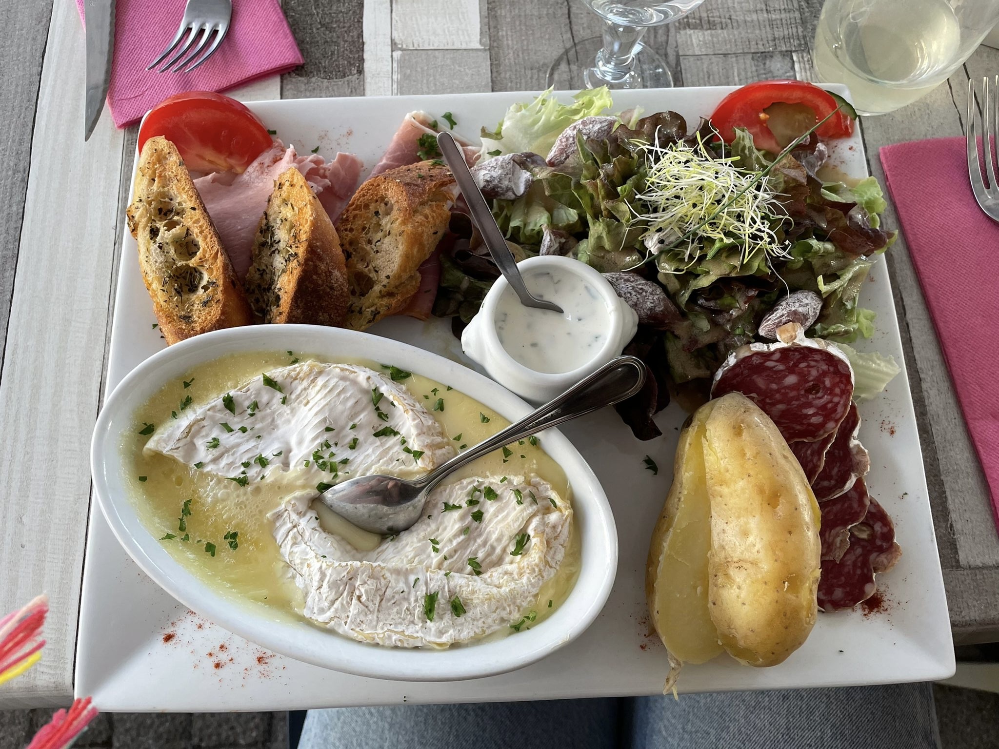 Rassasié, j'ai mangé un camembert rôti, très bon et copieux, la glace hummmm! Je le recommande aux gourmands