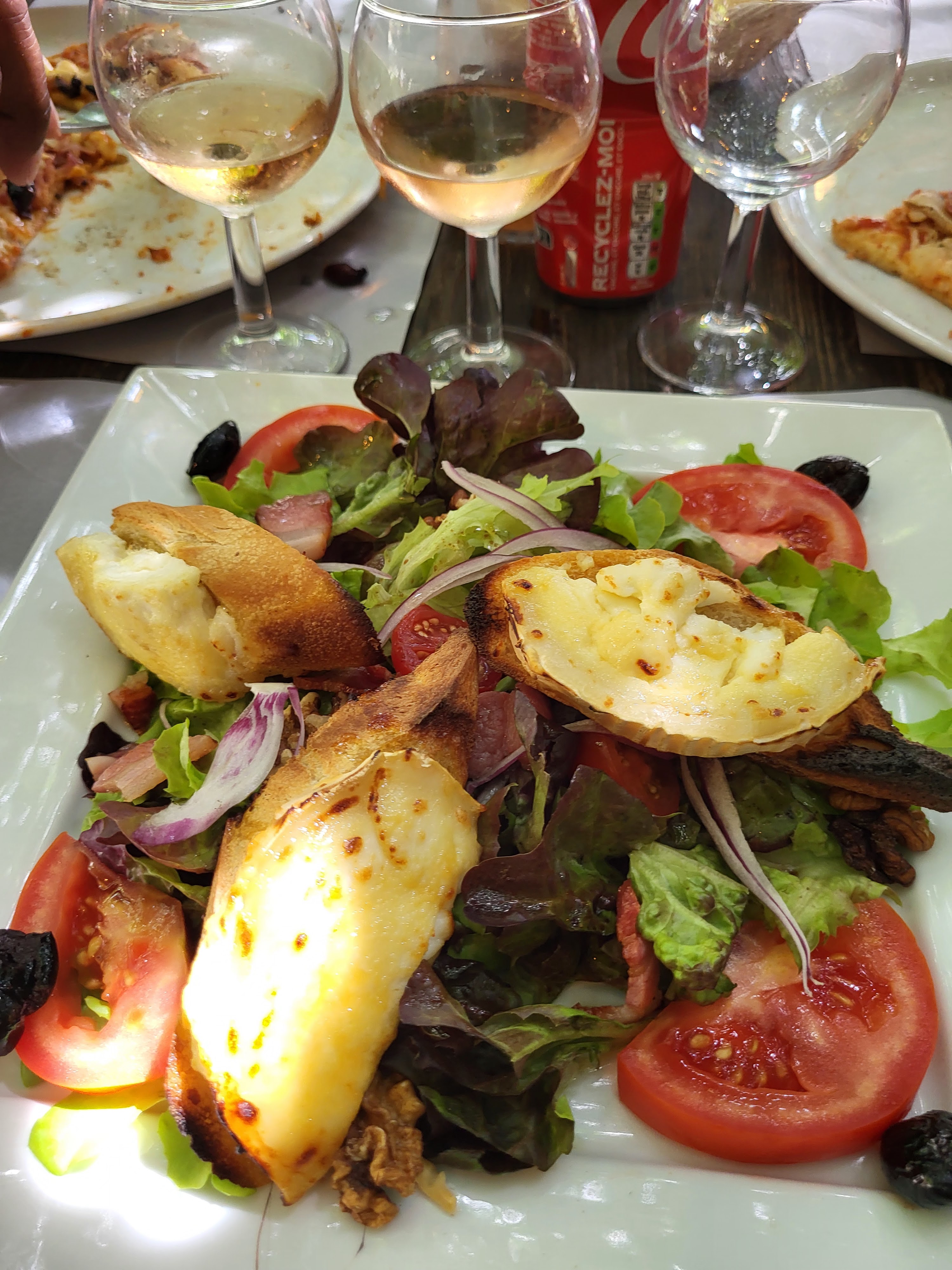 Les toasts de la salade servis carbonisés et la pizza brûlée... La salade a été changée. Resto pas au top...