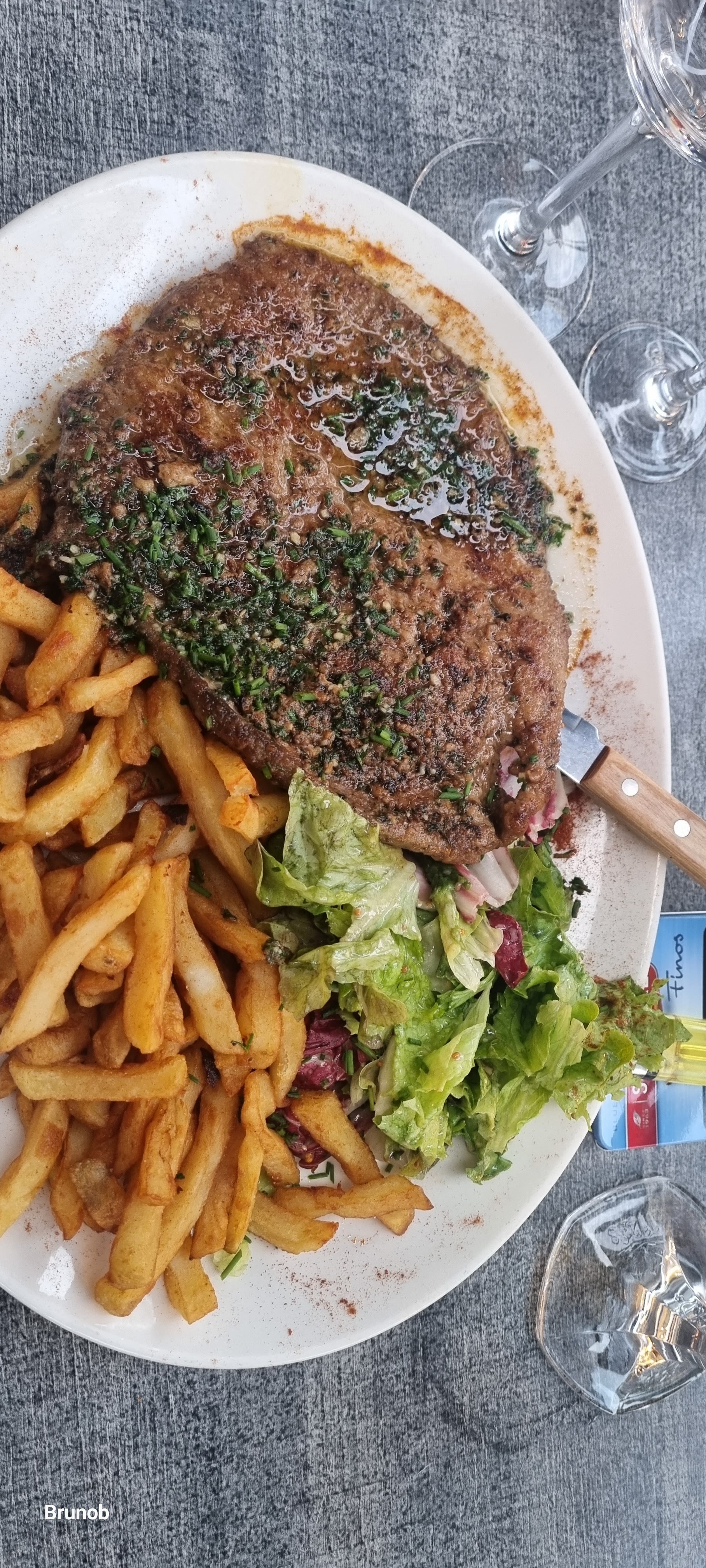 Je mange tous les midis au resto depuis 25 ans...Ce midi j ai pris une entrecôte: tout simplement fa-bu-leu-se!! Cuisson au top et en plus un vrai couteau qui coupe (Depardieu disait un couteau qui coupe c'est un couteau qu',on ne regarde jamais,!)