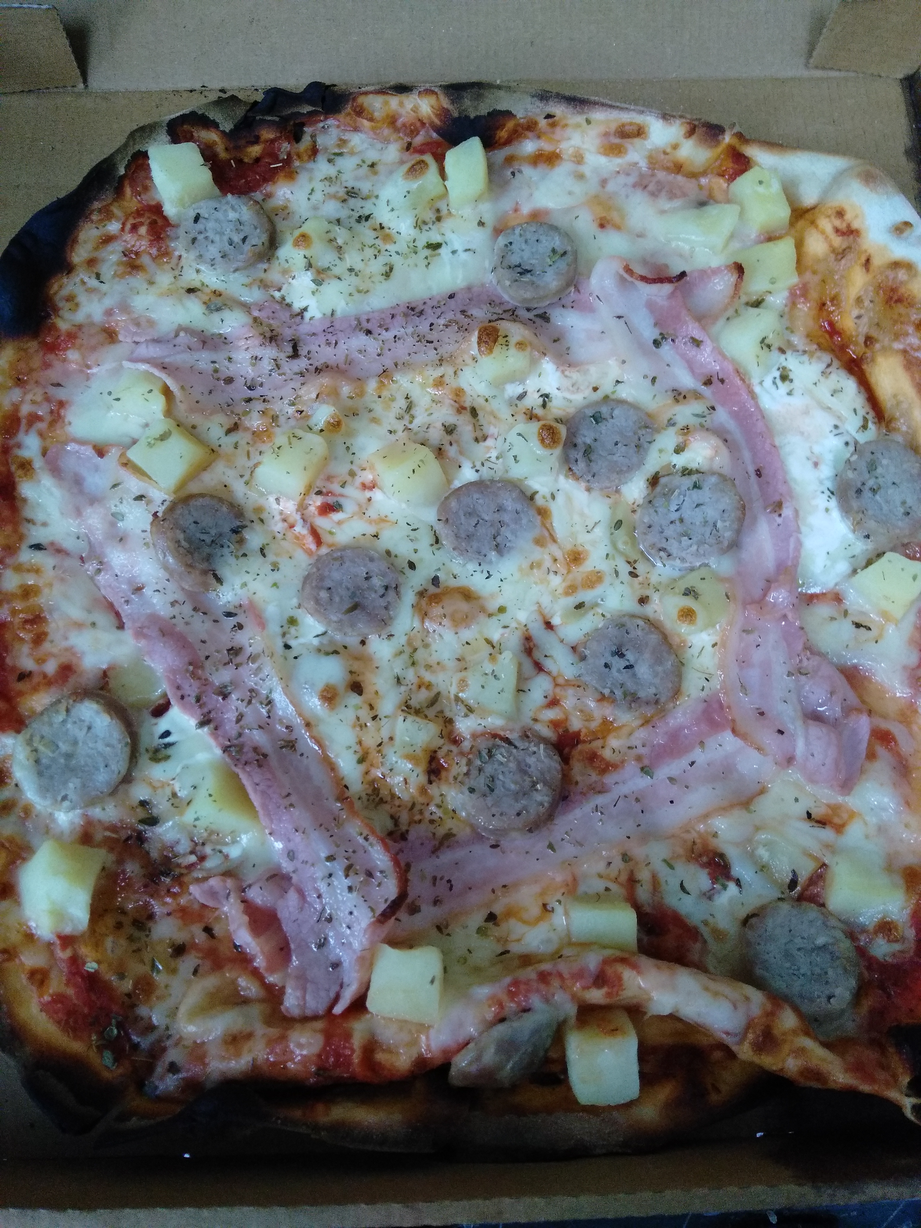 Désolé pizza trop cuite pour moi quand c'est noir cramé autour c'est pas bon on a que le goût du cramé une prochaine fois peut être je ferais un deuxième essai