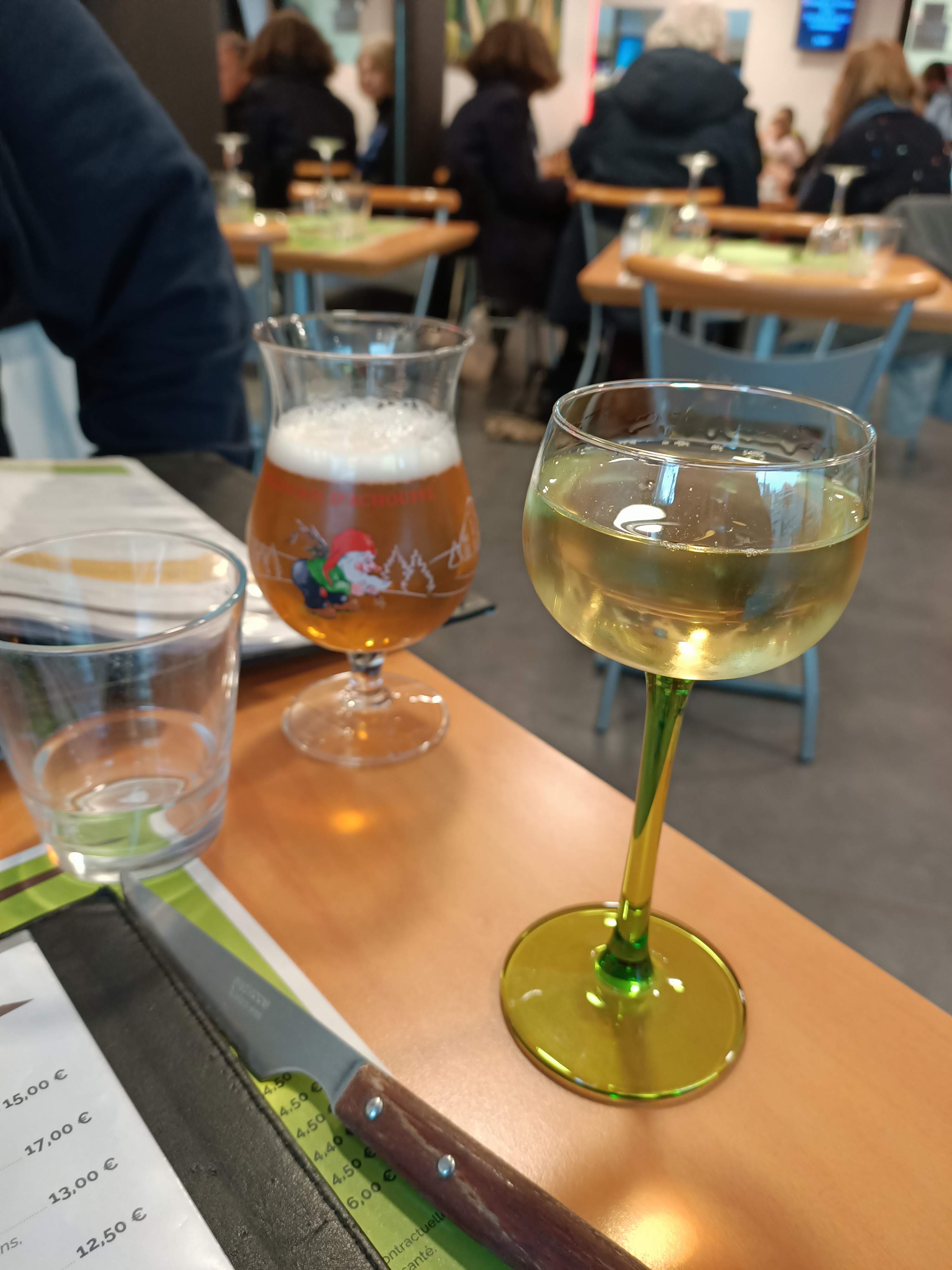 Une terrasse au soleil avec vue magnifique sur le calvaire. Un service accueillant et prévenant, réglage de la table, un restaurant plein mais un service ultra rapide surtout pour le menu enfant qui a eu droit à des crayons de couleur à peine assis. Franchement tout super et en plus une très bonne brochette en plat du jour. A la carte, il y a le café dans les boissons chaudes et les coffee... Pour ceux qui ne conduisent pas.