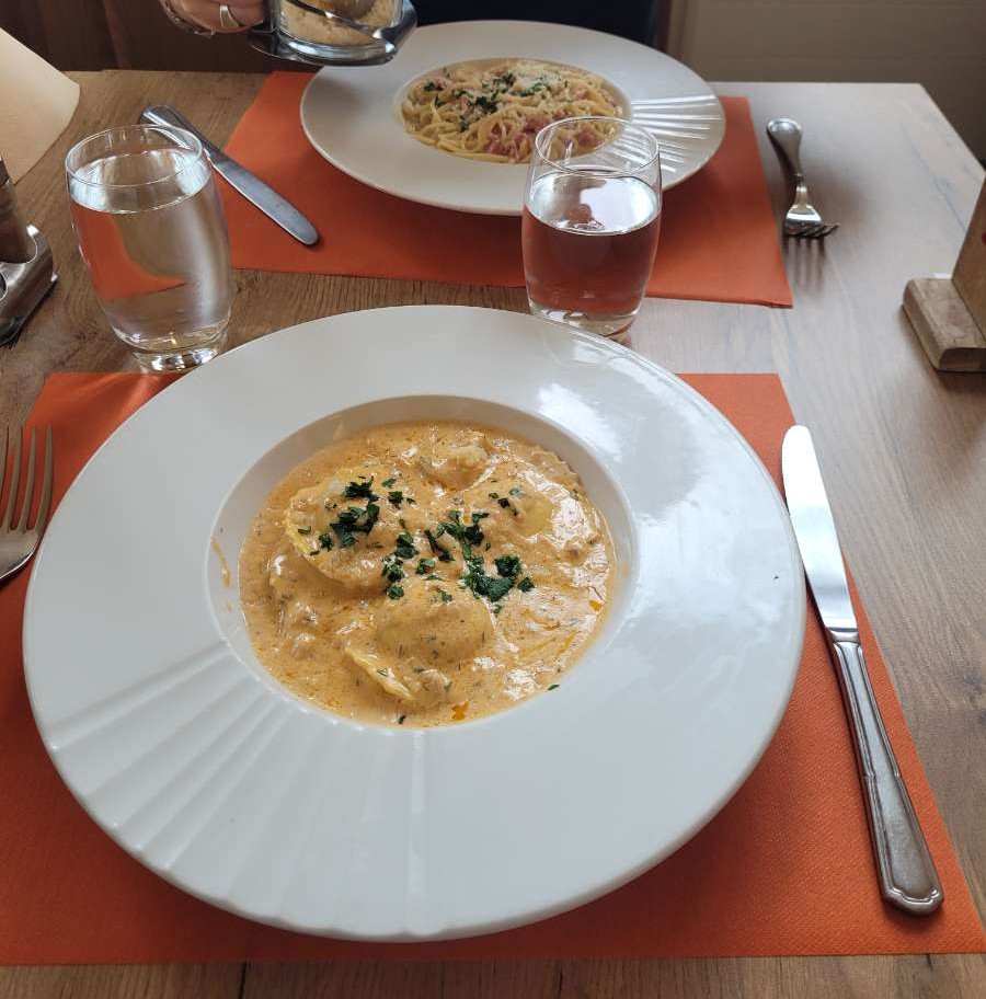 Pizza et raviolis délicieux 🤤! Mention spéciale au serveur aux petits soins , il a été irréprochable et des plus agréables malgré sa fraîche arrivée dans l'établissement et le côté taciturne du patron qui lui ne donne pas envie de revenir.