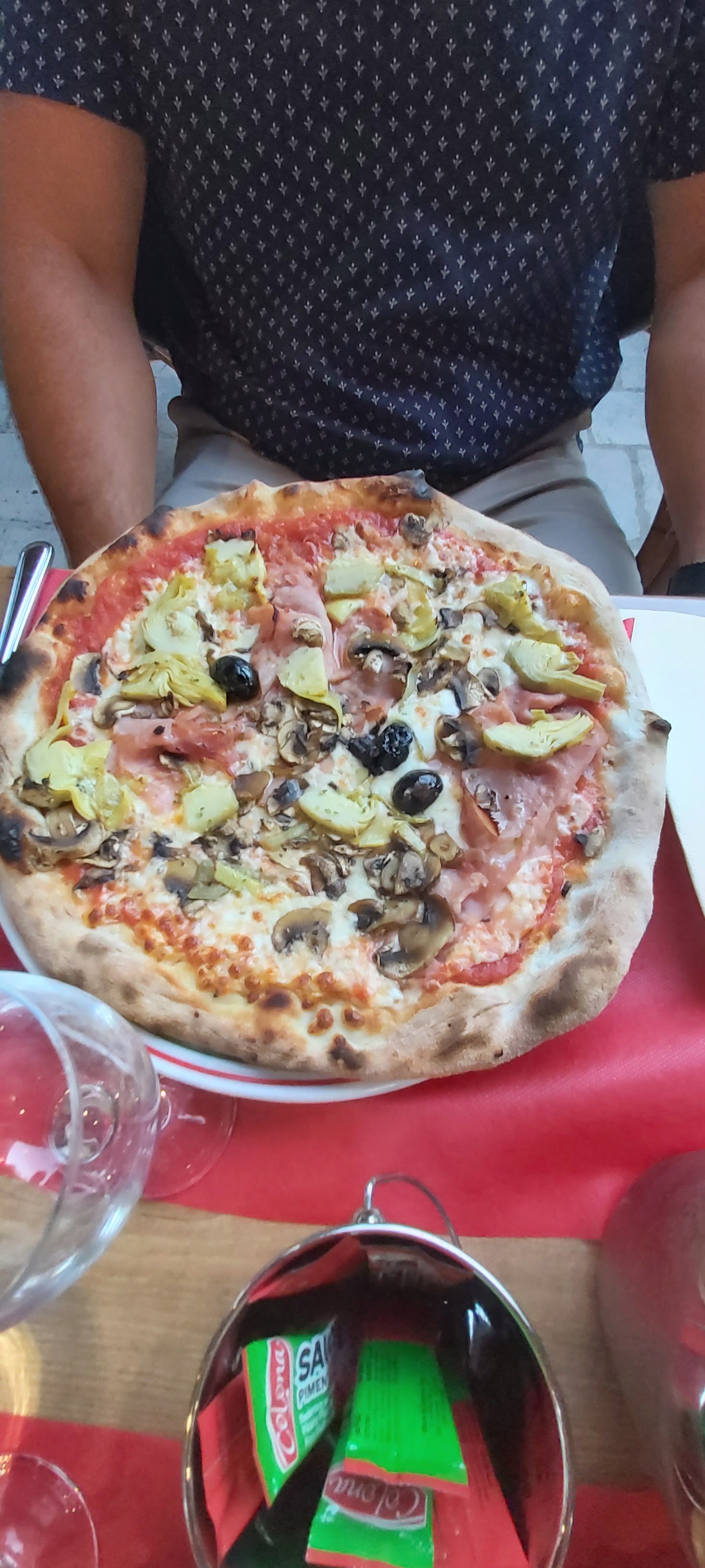 Pizza de qualité moyenne. Une calzone qui était une simple pizza. Servie sans excuse. Le four n’étant pas adapté ? Pourquoi la laisser sur le menu ? Sinon service rapide