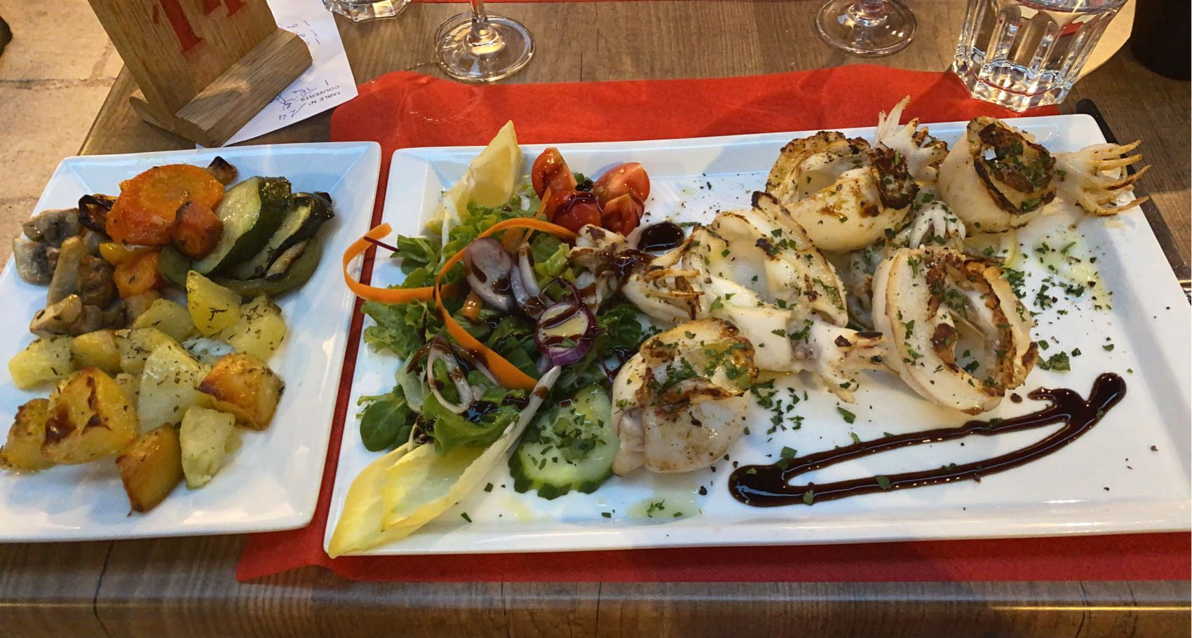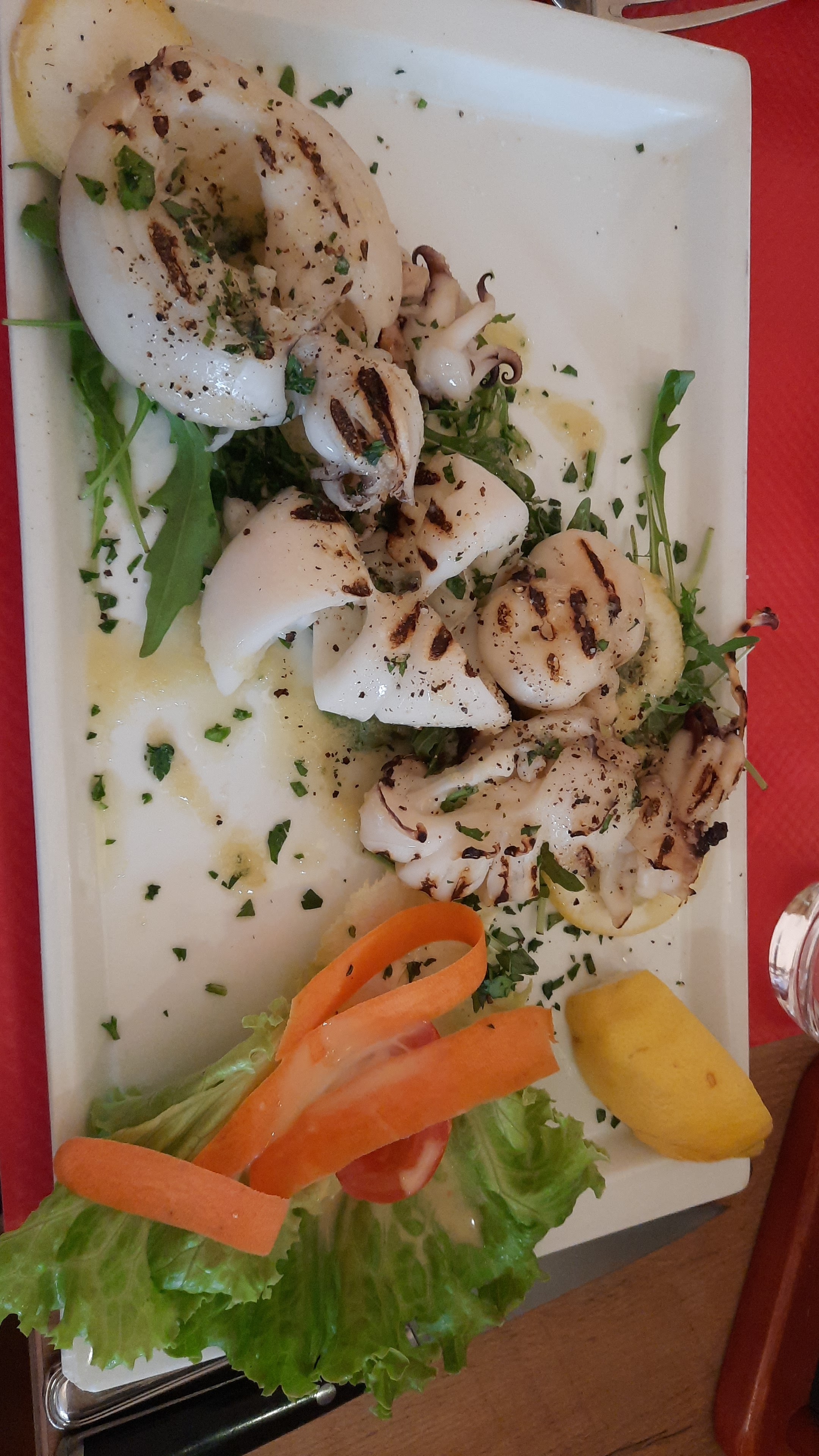 Repas improvisé à la dernière minute. Calamars grillés à la carte. Excellents.