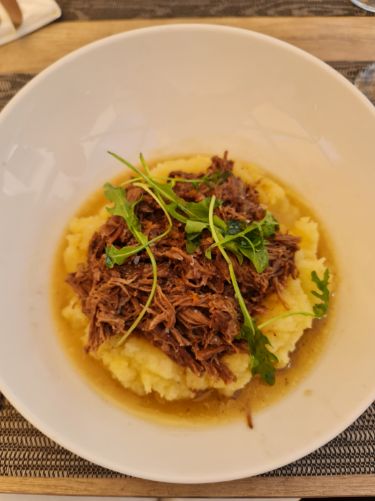 Restauration et service chaleureux. Un pavé de taureau divin