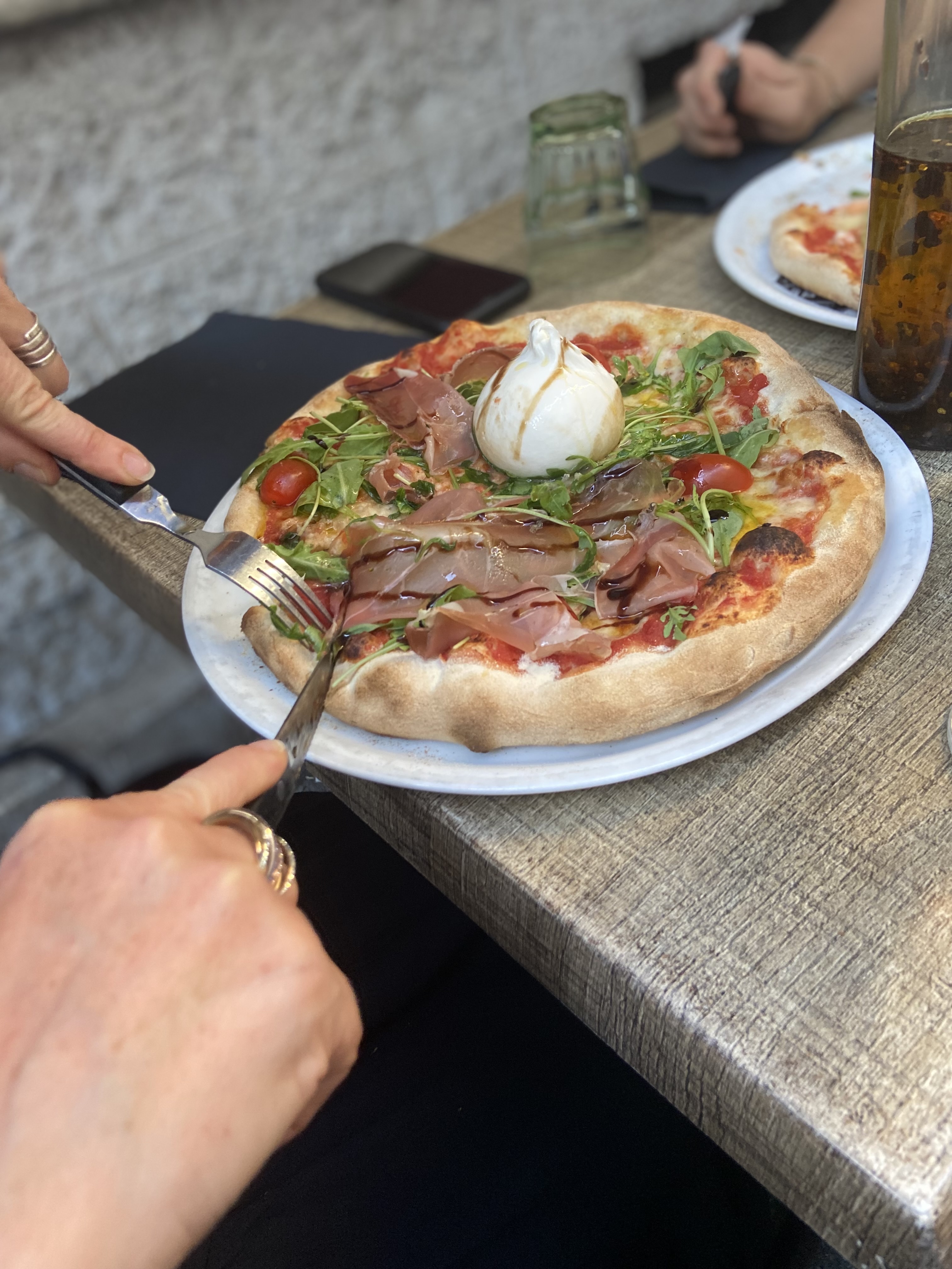 Pizza de qualité et rizzoto de cèpes excellent. Bonne adaptation à la distanciation sociale. Personnel à l'écoute et service rapide. Je recommande