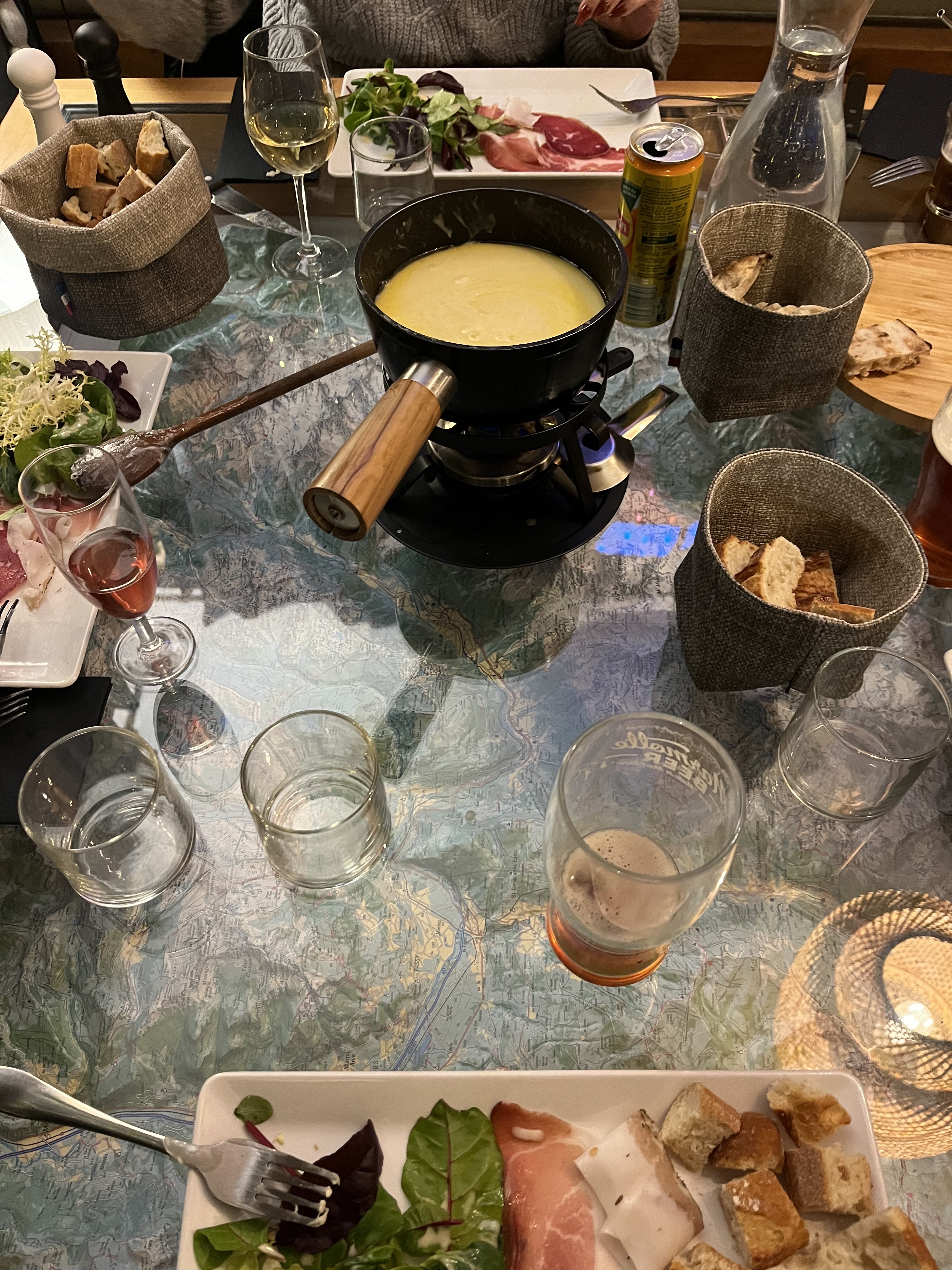 Soirée fondue Suisse. Cadre sympathique, accueil chaleureux du propriétaire et félicitations à Madame en cuisine.