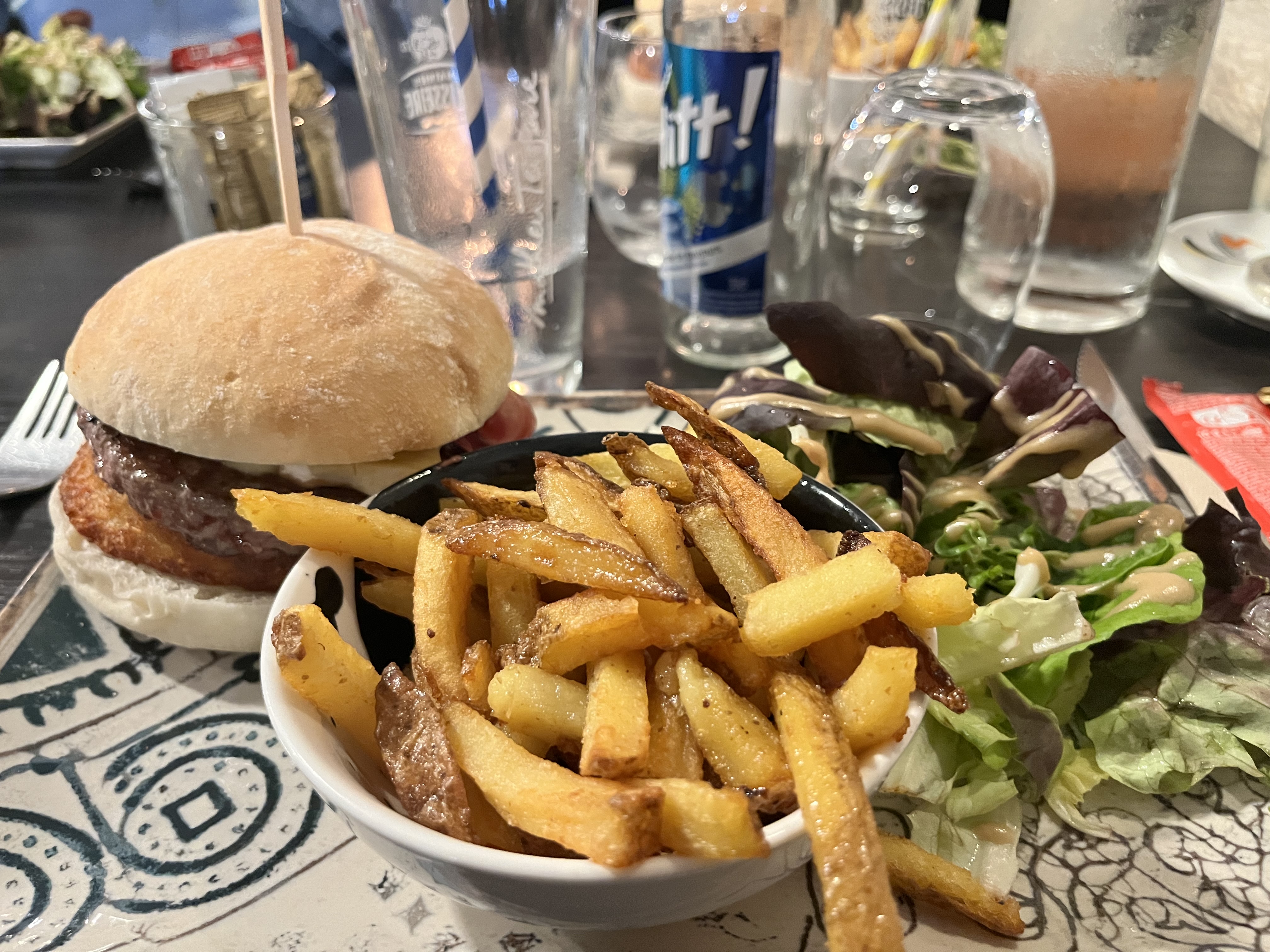 Nous avons manger sur la terrasse avec une belle vue sur la mer, pas beaucoup de monde. Les serveurs était vraiment sympathique. Les burger avec foie gras très bon, un peu de fromage en plus peut être ? Les frites était excellente et pâte carbo aussi . Prix correct. Je recommande cette adresse