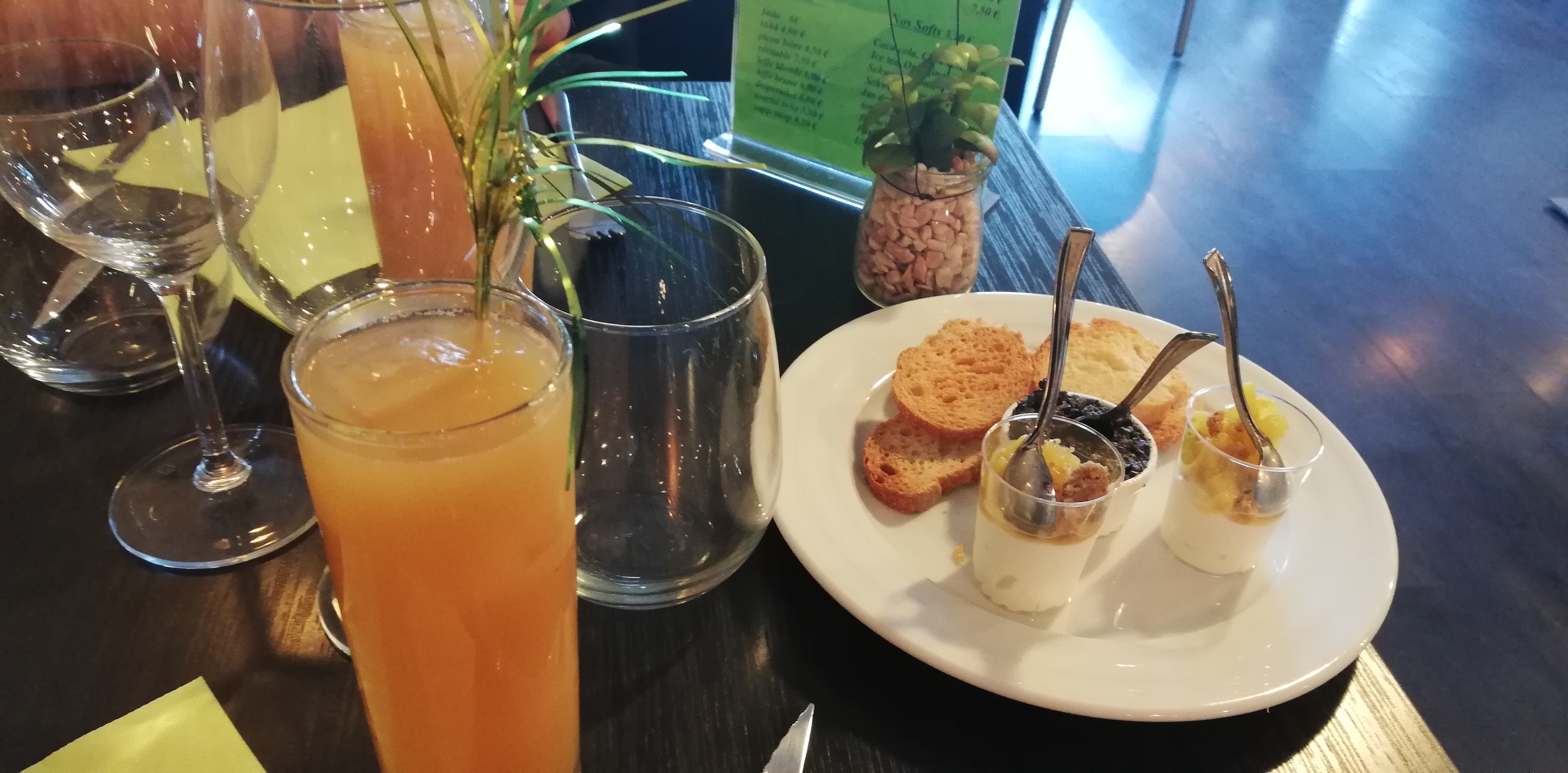 Cadre agréable, service soigné, repas très original et apprécié, addition très correcte. Très très bien. merci