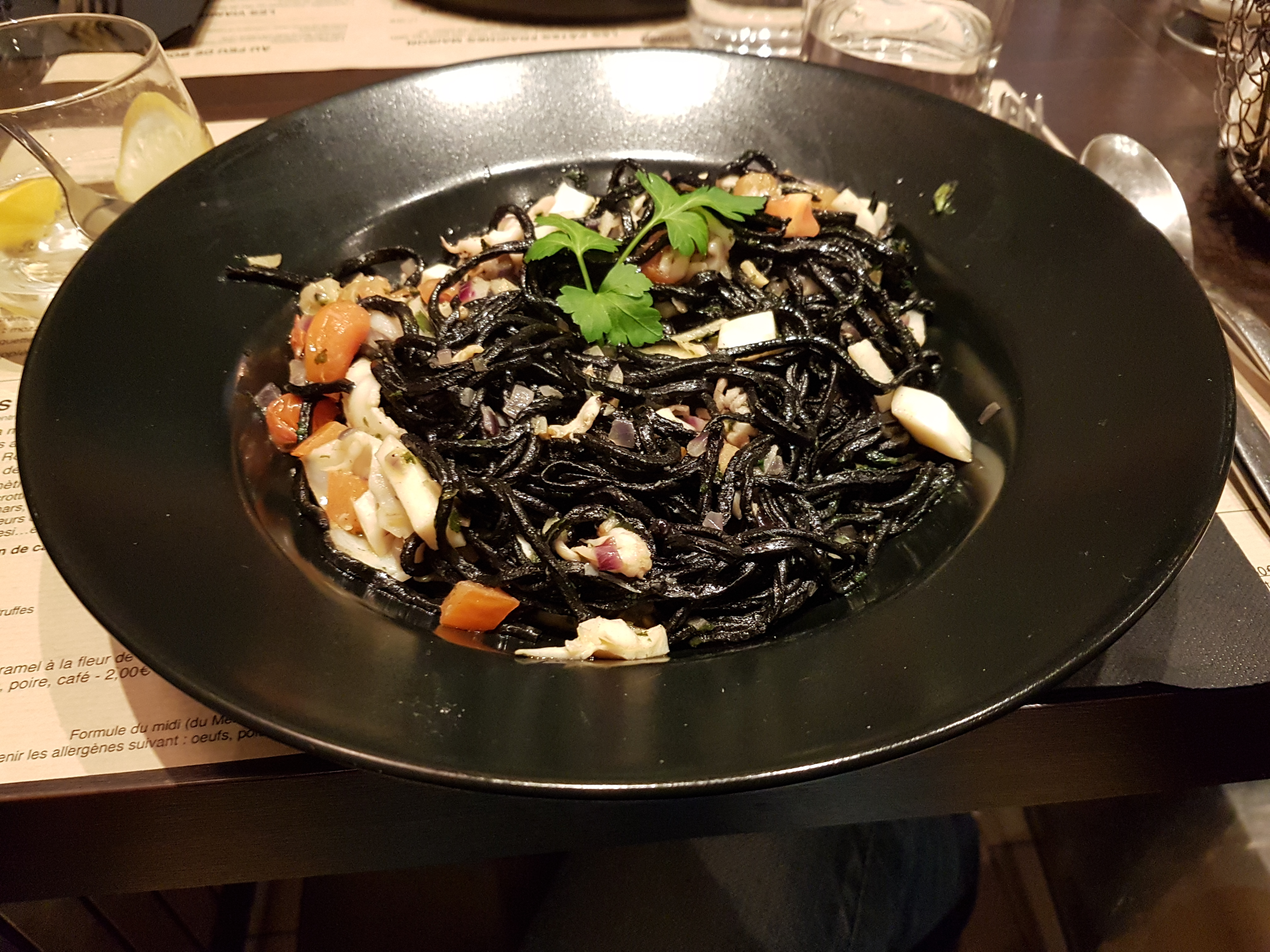 J'adore les pâtes aux calamars à l'encre noire de cet endroit ! Bon service, cadre chaleureux et bel emplacement. Leur café gourmand est plutôt bon aussi. J'ai essayé la pizza marinara - légèrement grasse pour moi mais la croûte mince ne ressemble à aucune de celles que j'ai jamais goûtées.