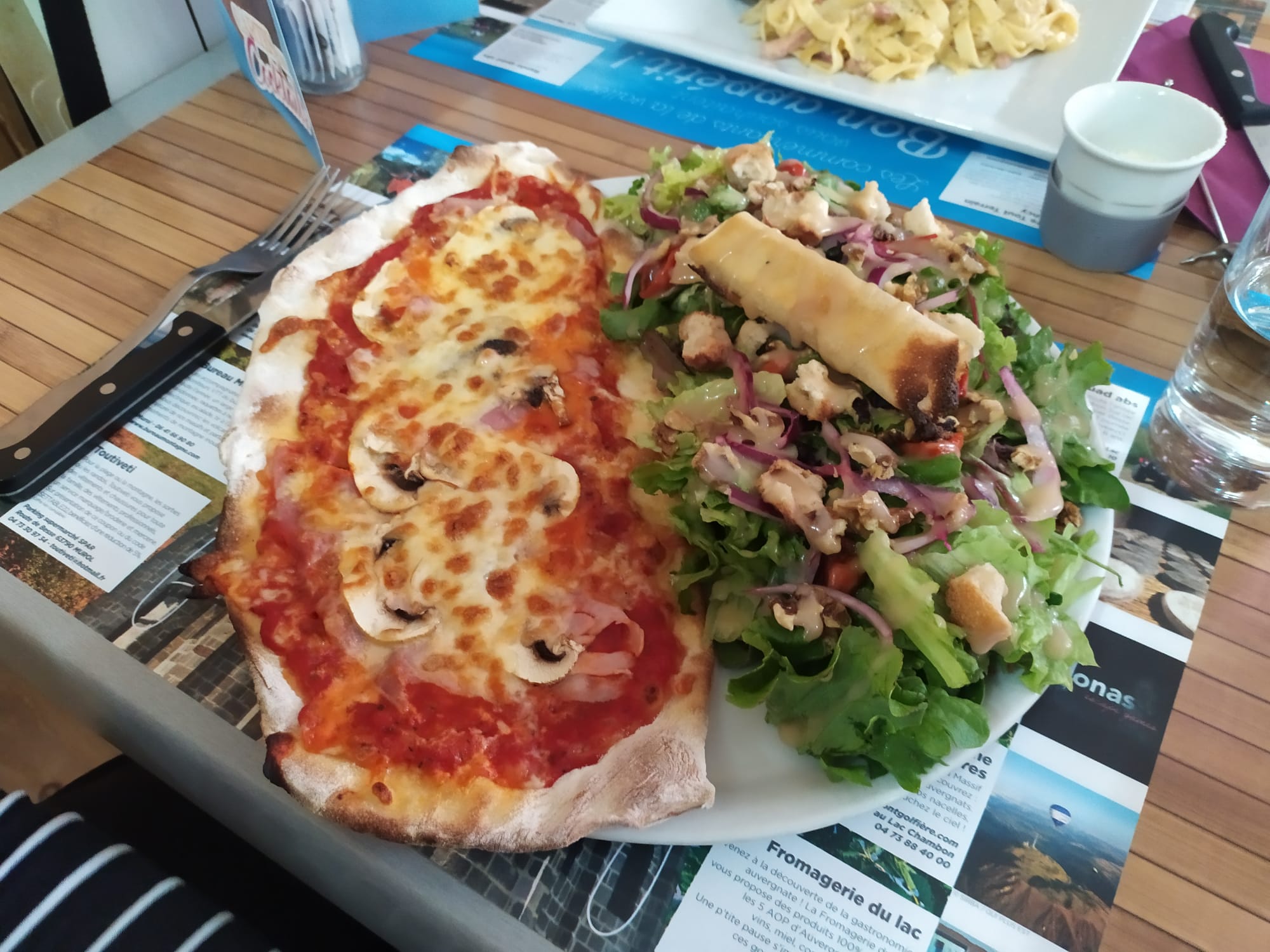 Nous avons pris des pizzas et même les bords ont été terminés, nous sommes un peu comme à la maison 🏡 l'accueil est chaleureux et spontané 👍🏼