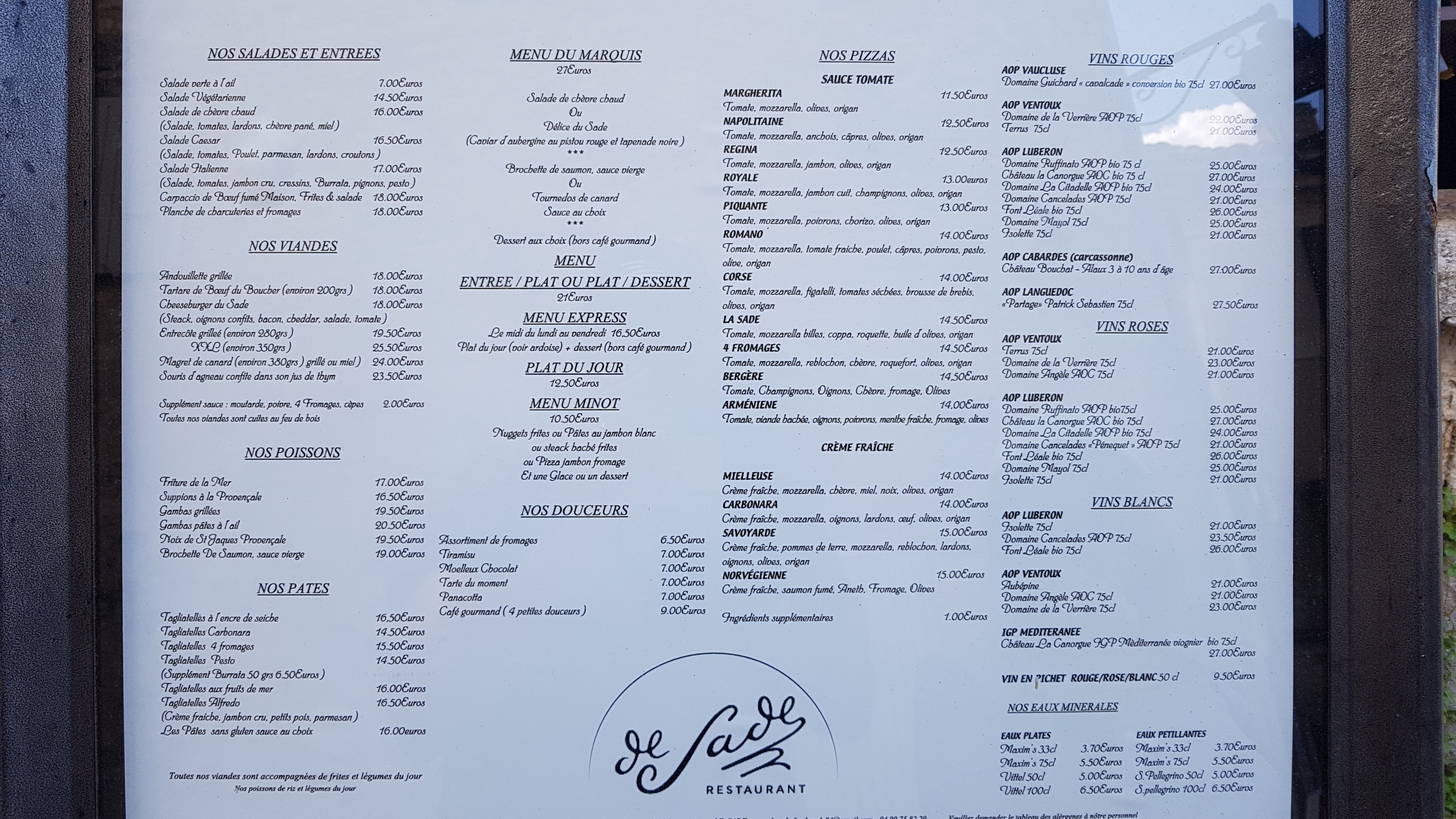 La Brasserie Restaurant le Sade à Lacoste est située au pied du château. Nous connaissons le restaurant depuis des années, le propriétaire a changé l'année dernière, depuis le restaurant a une ambiance animée, vous pouvez y déguster de délicieux plats midi et soir. , le patron et le personnel sont très sympathiques, Excellent service, vaut toujours le détour, la pizza est particulièrement délicieuse, je peux la recommander à tous ceux qui visitent Lacoste