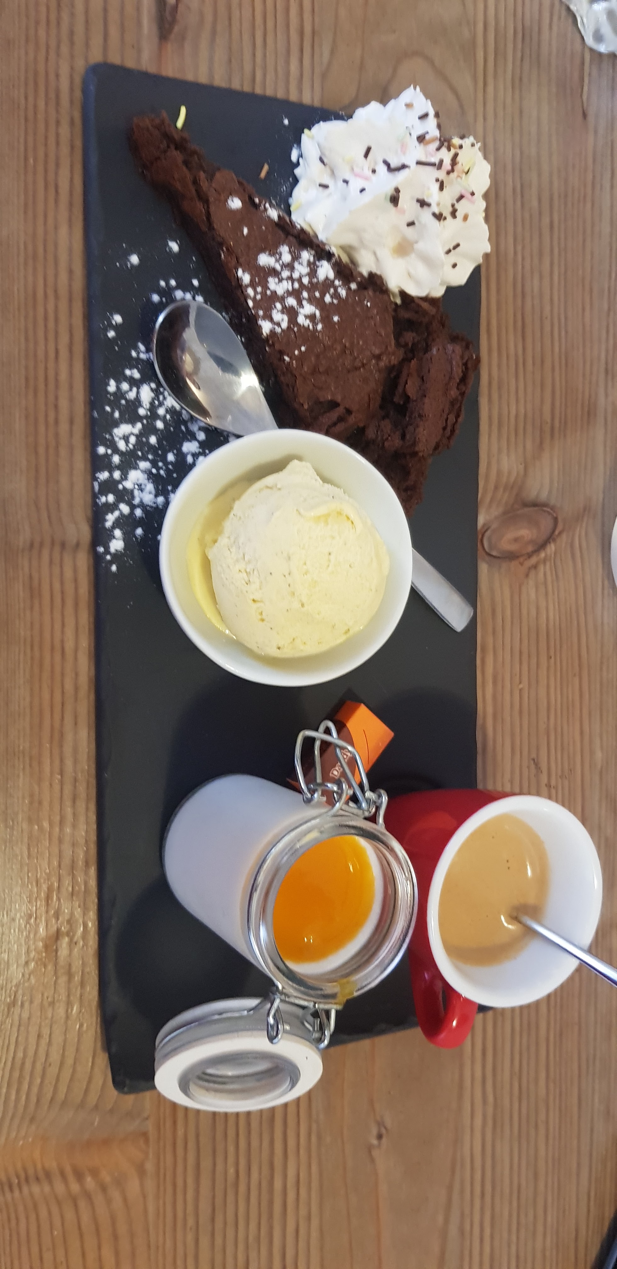 Repas très bon et très gourmand, un décor typique des alpes, une serveuse très gentille et très professionnelle..pour finir un endroit incroyable !