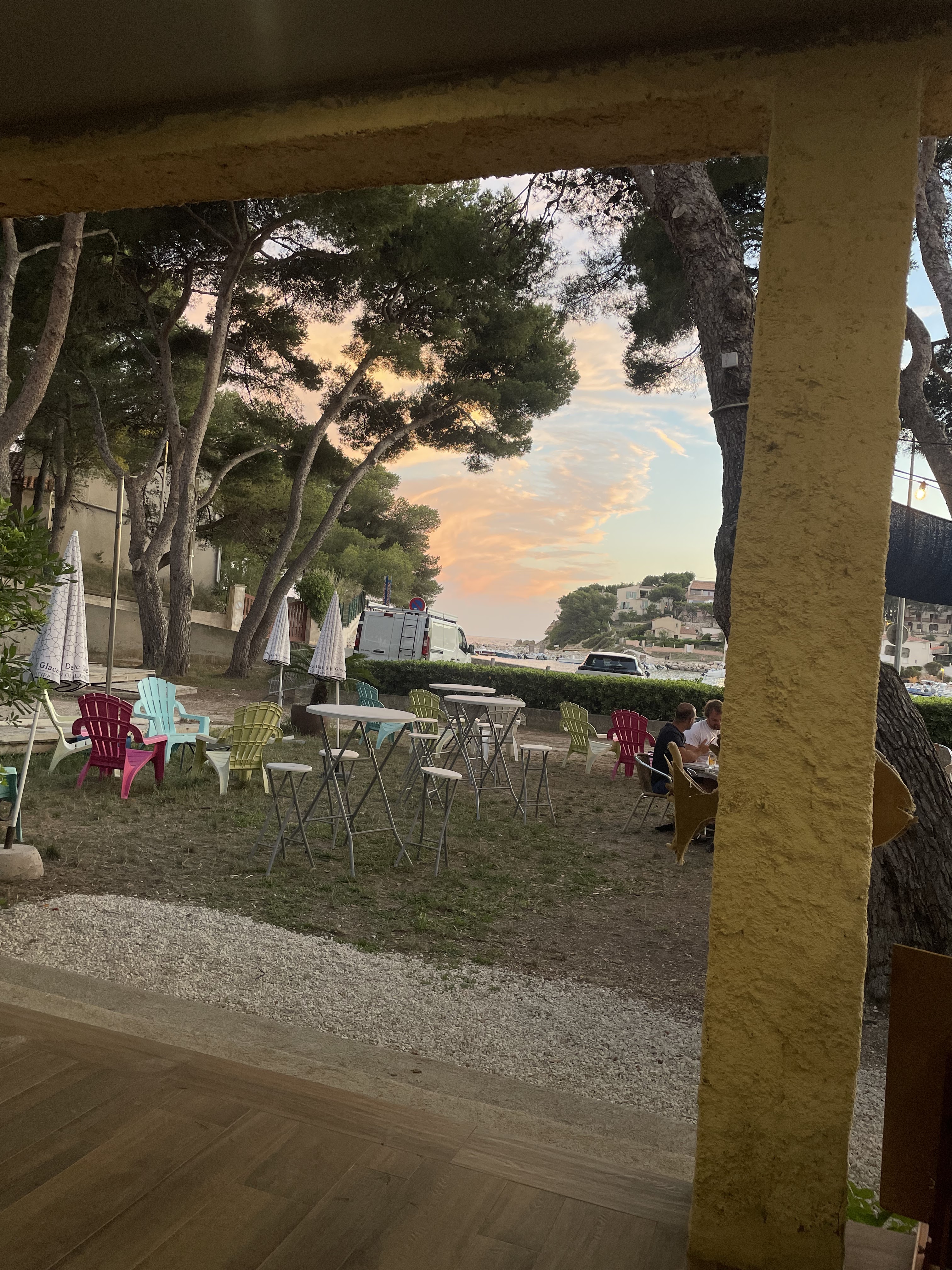 Lieu parfait Bien situé bercé par les cigales sous les pins. Personnel très accueillant, sympathique et prévenant. Et bonne cuisine Pour accompagner l'apéro on a pris une anchoiade. Je regrette de ne pas l'avoir prise en photo. Ça vaut le détour 👍😍