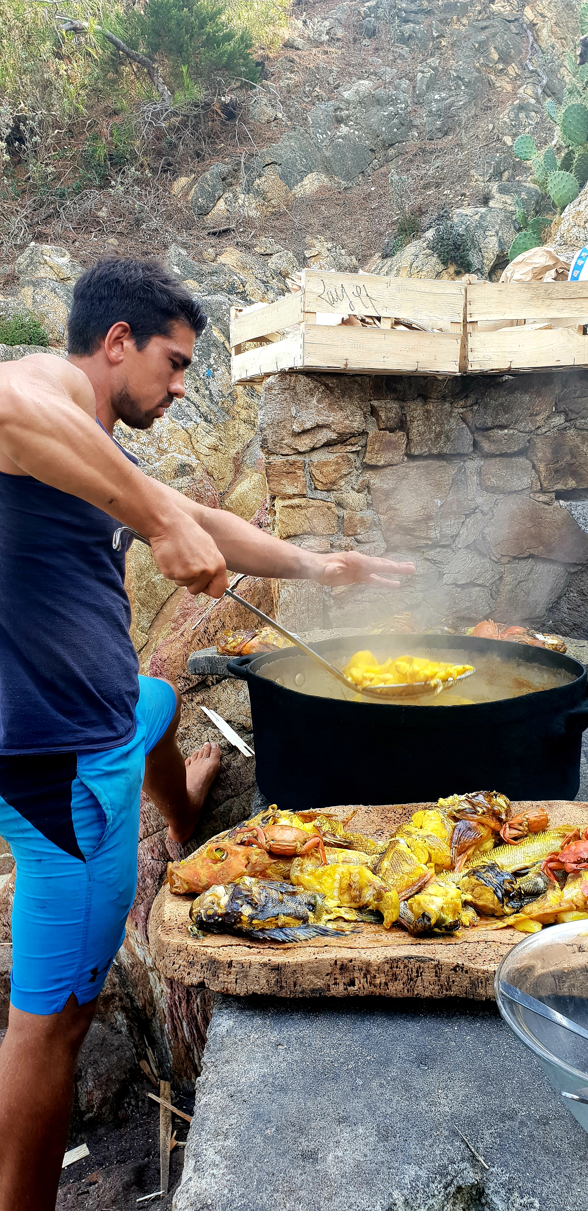 Excellente pêche fraîche du jour grillée juste au bord de la mer dans une crique immaculée. Ça vaut vraiment le coup !!