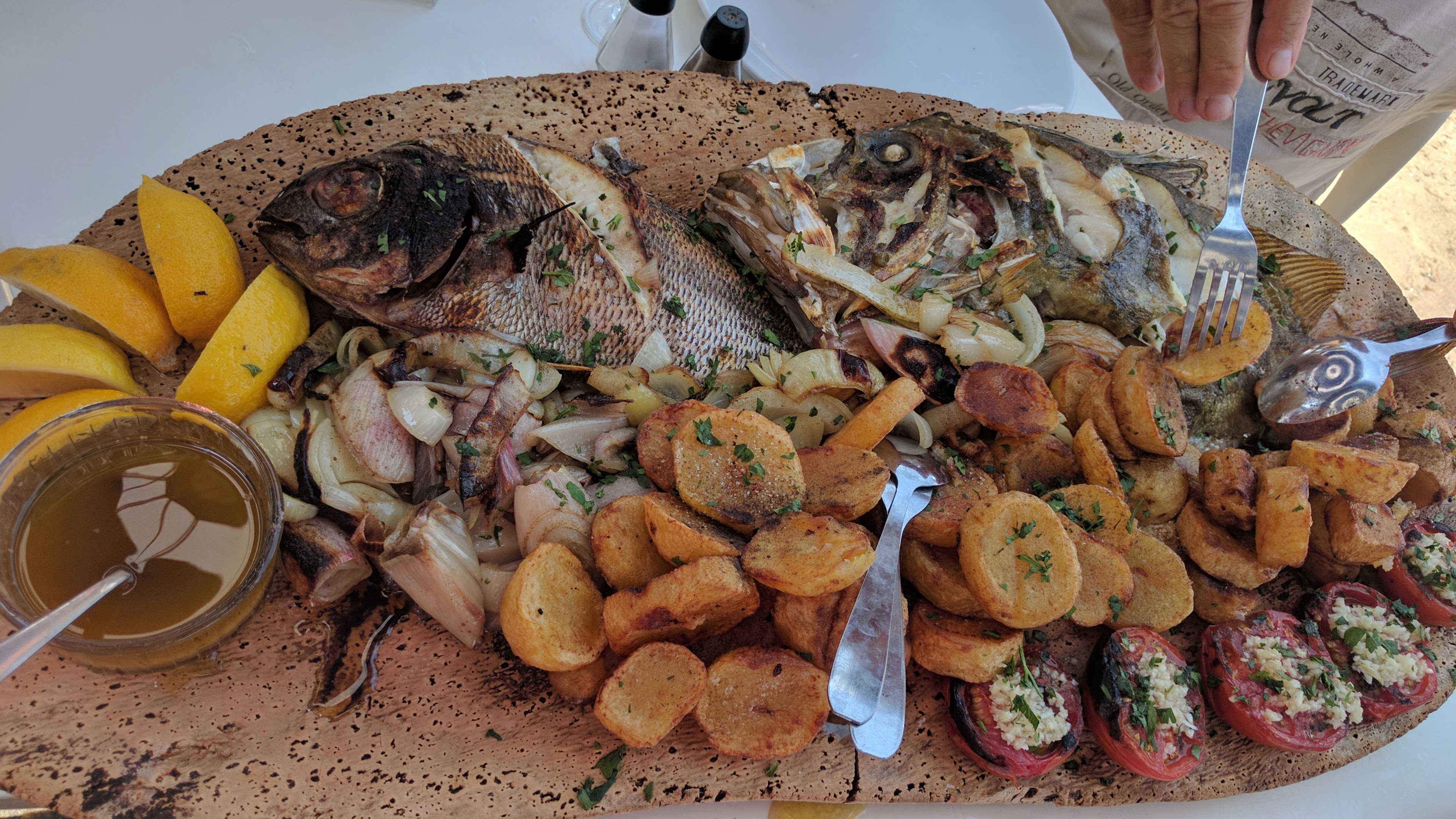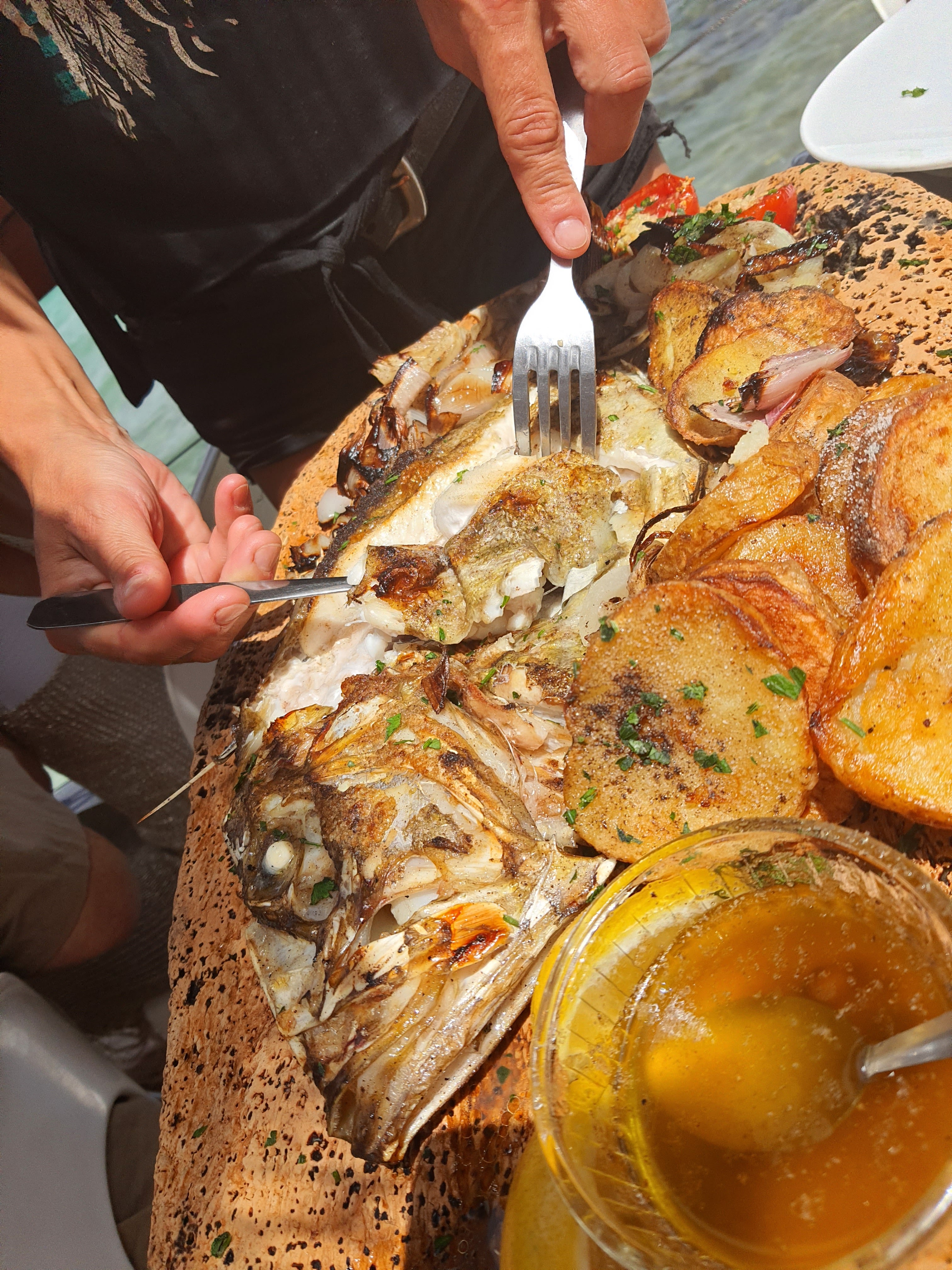 Déjeûner simplement magique ! Une daurade énorme, cuite à la perfection, des sourires à n'en plus finir. Je n'ai besoin de rien d'autre, c'est parfait !