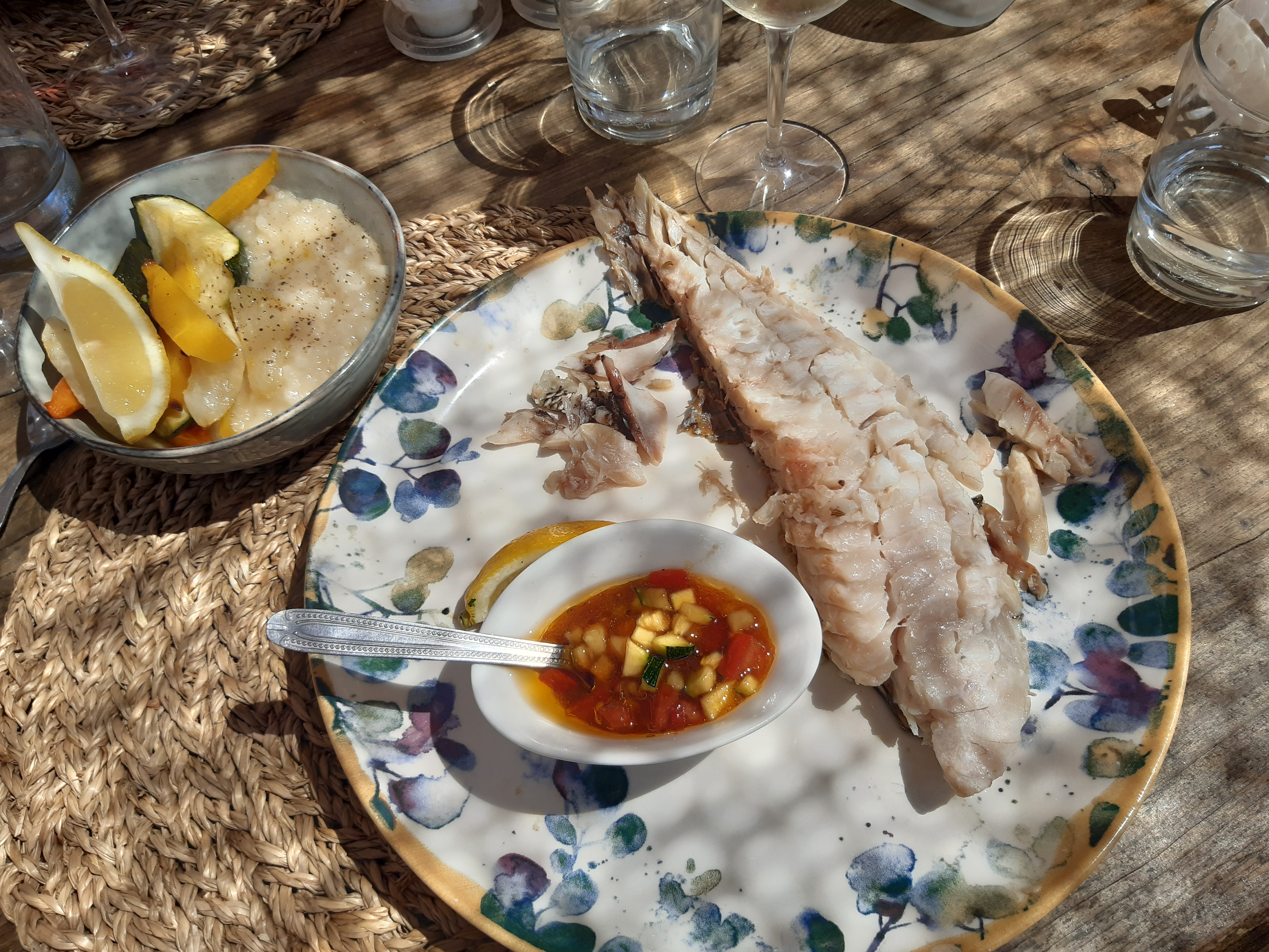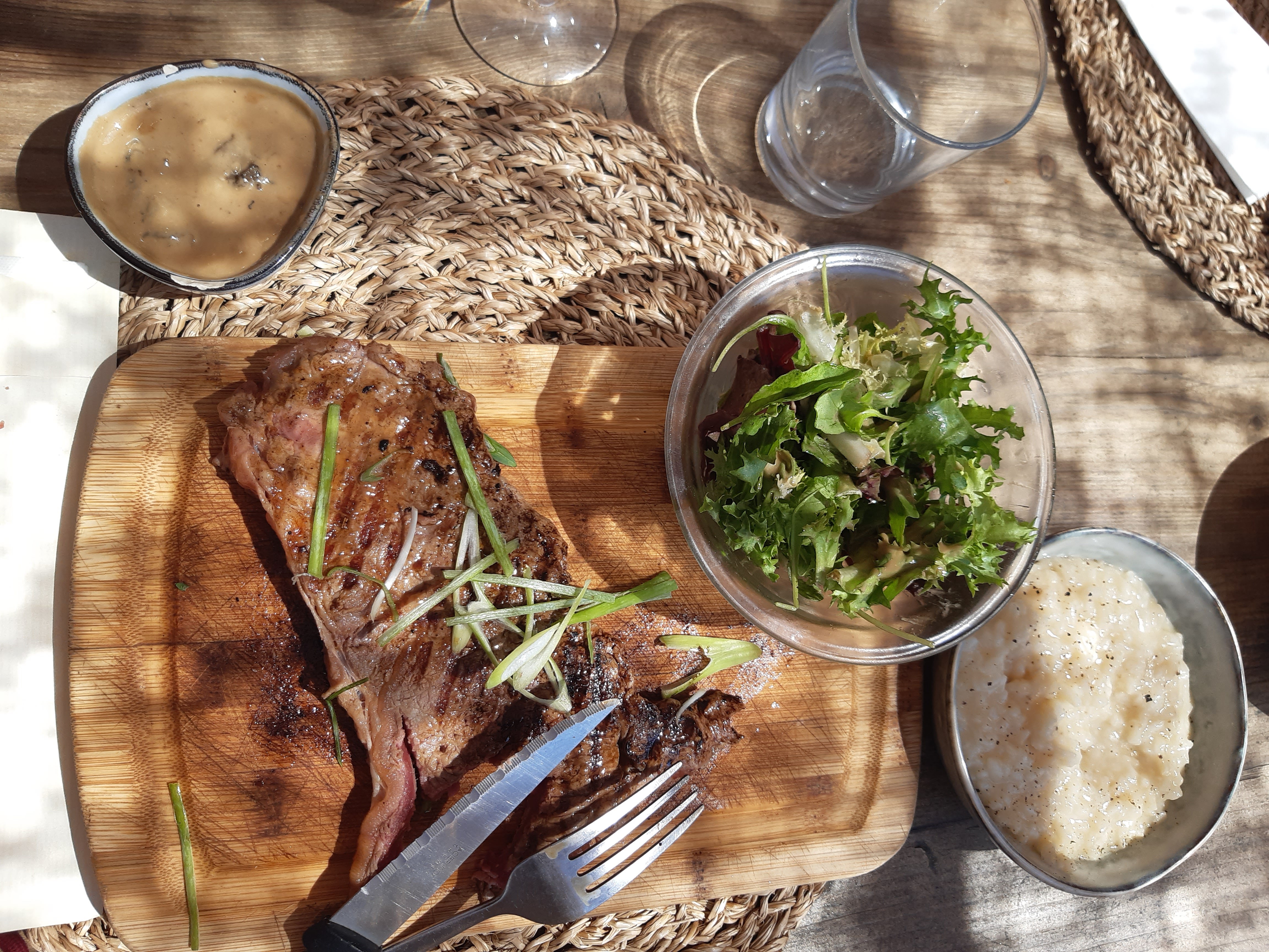 Super sympa et très bon (petit risotto crémeux à la truffe ), les pieds dans le sable (j'adore) ou pas avec une vue magnifique (et en plus abrité du mistral)