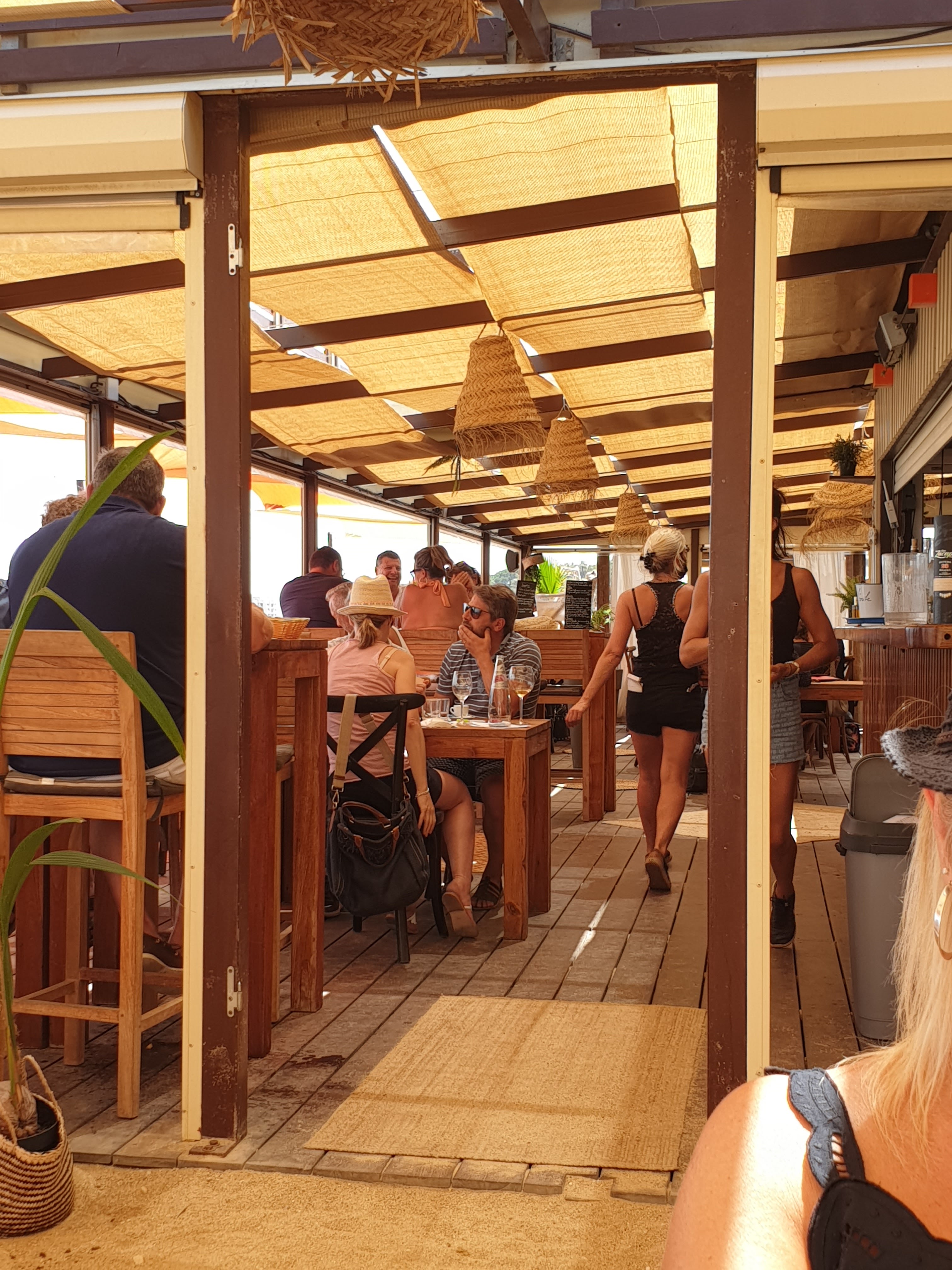 Super ambiance, des serveurs souriants et serviables malgré le port du masque, des tapas bien fournis et très bons. Cela devient vraiment magique quand tout le monde quitte la plage. La mer se calme et le paysage devient magnifique. Je conseille.