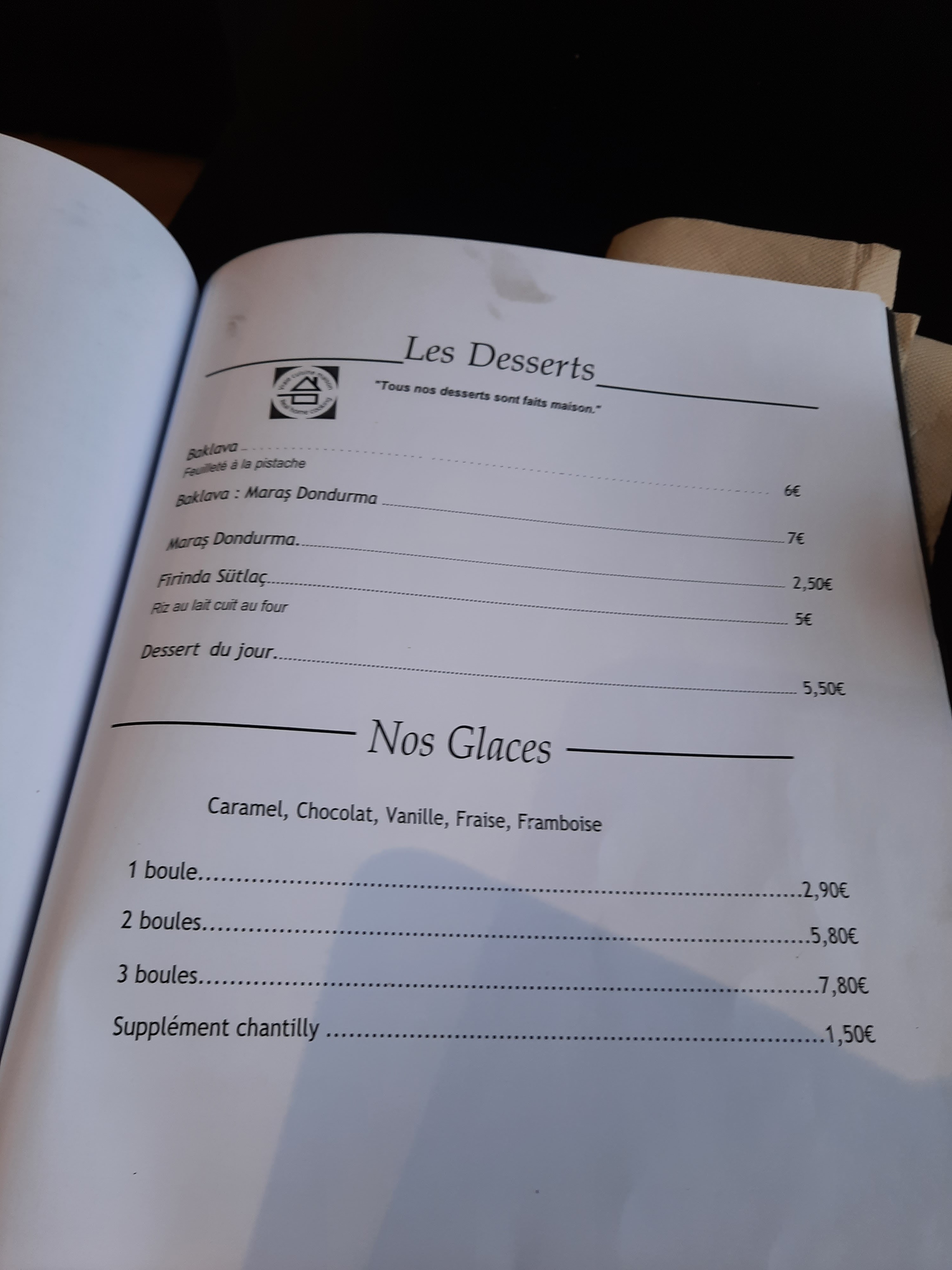 Une très belle découverte de la cuisine turque, des plats de qualité, que des produits frais, fait maison, un acceuil très chaleureux, une cuisine familiale. je vous conseille l'assiette pointgrill pour 2 personnes et en dessert, le baklava est un régal. Le vin turc est également très bon. Nous avons apprécié la sauce blanche, faite maison. Enfin tous le personnel est très sympathique et accueillant. Nous y retournerons avec plaisir. Un très bon restaurant à découverte sans hésitation