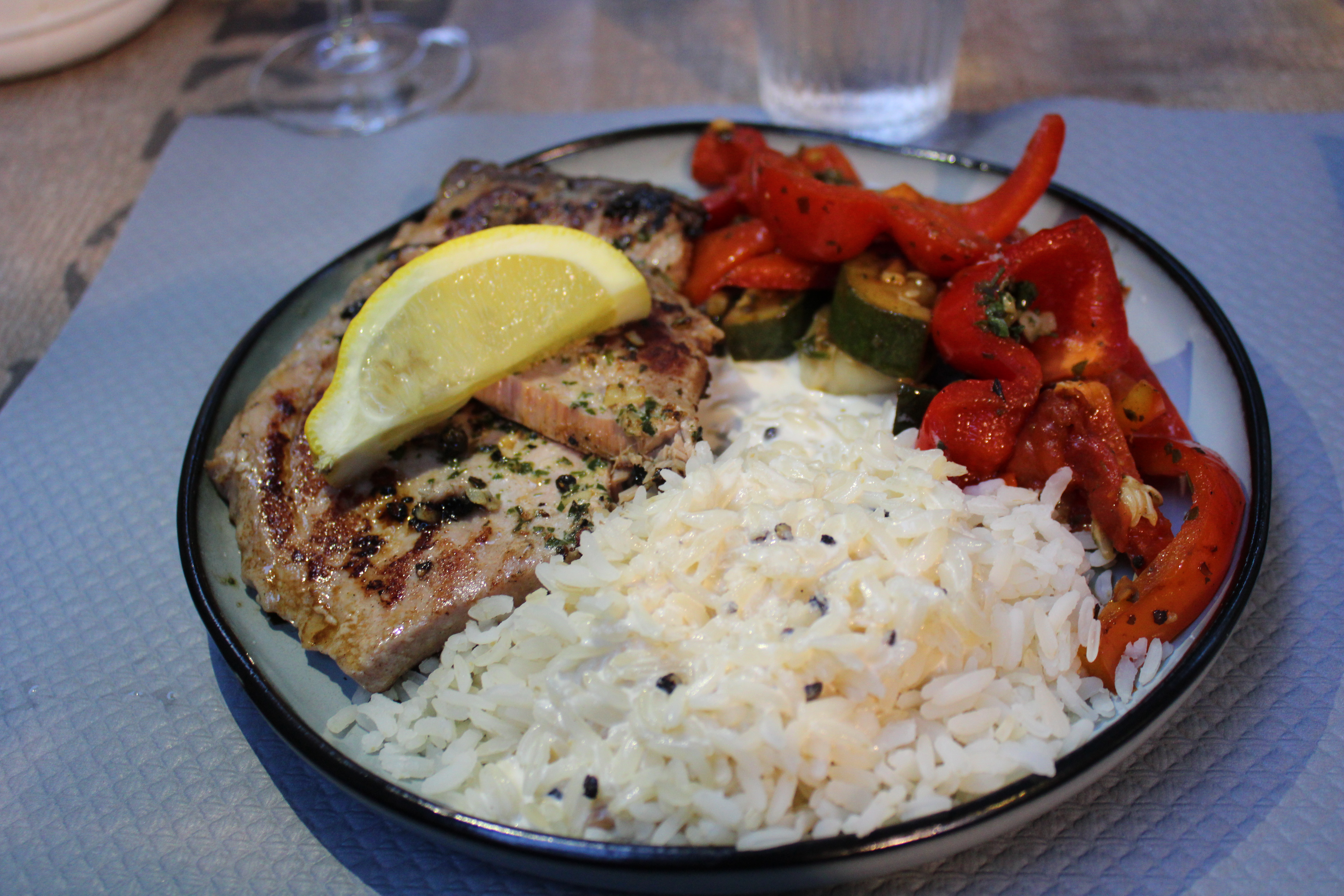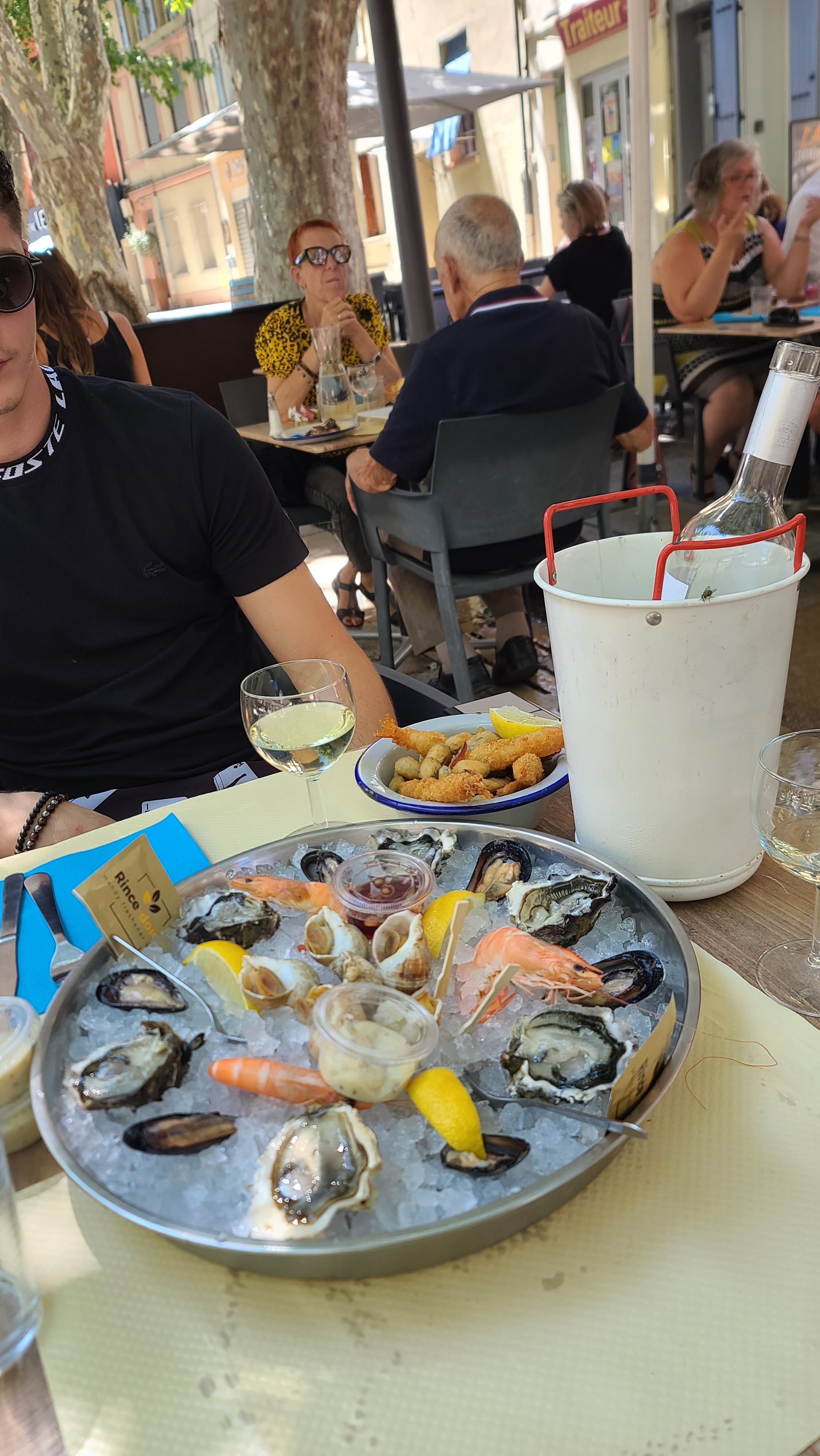 Repas de poisson avec un rosé bien frais. Ambiance sympa