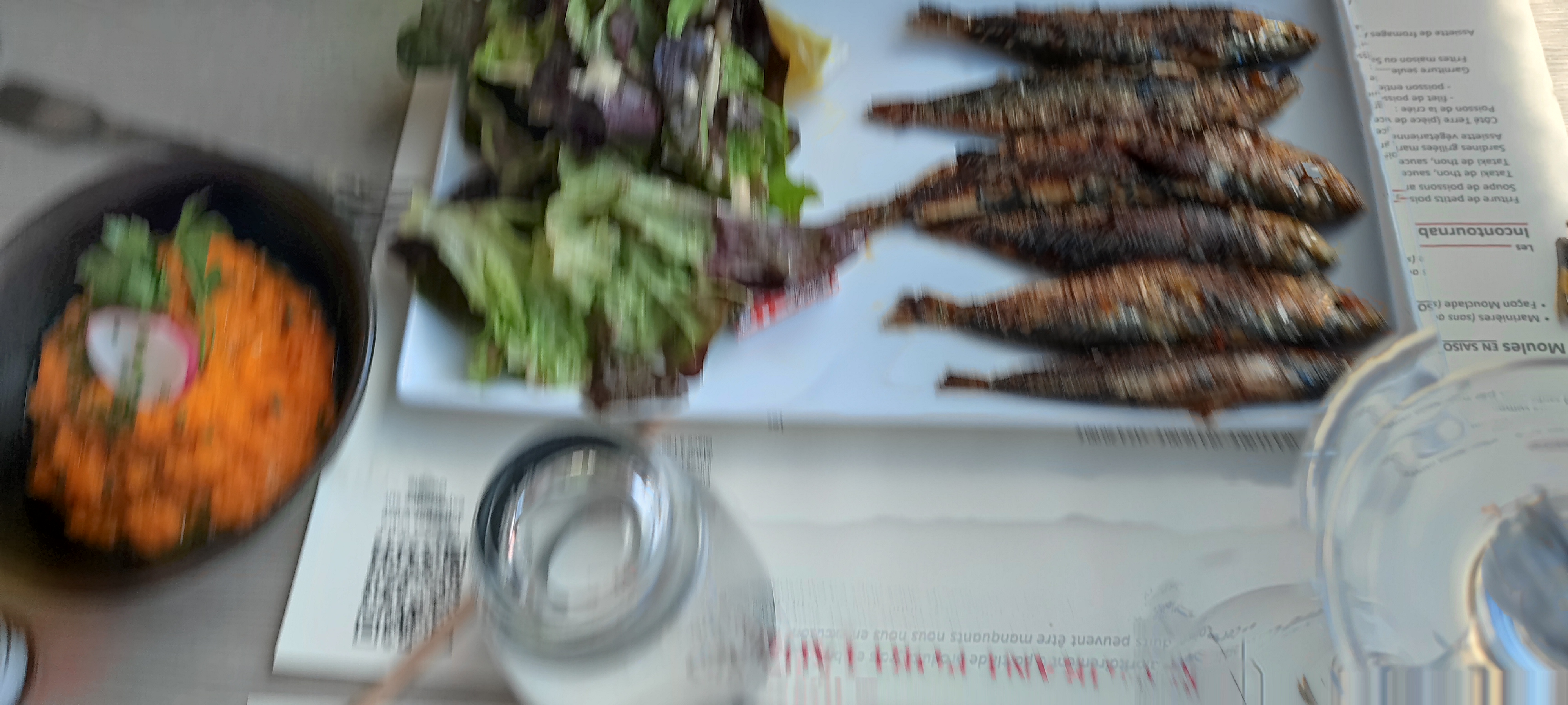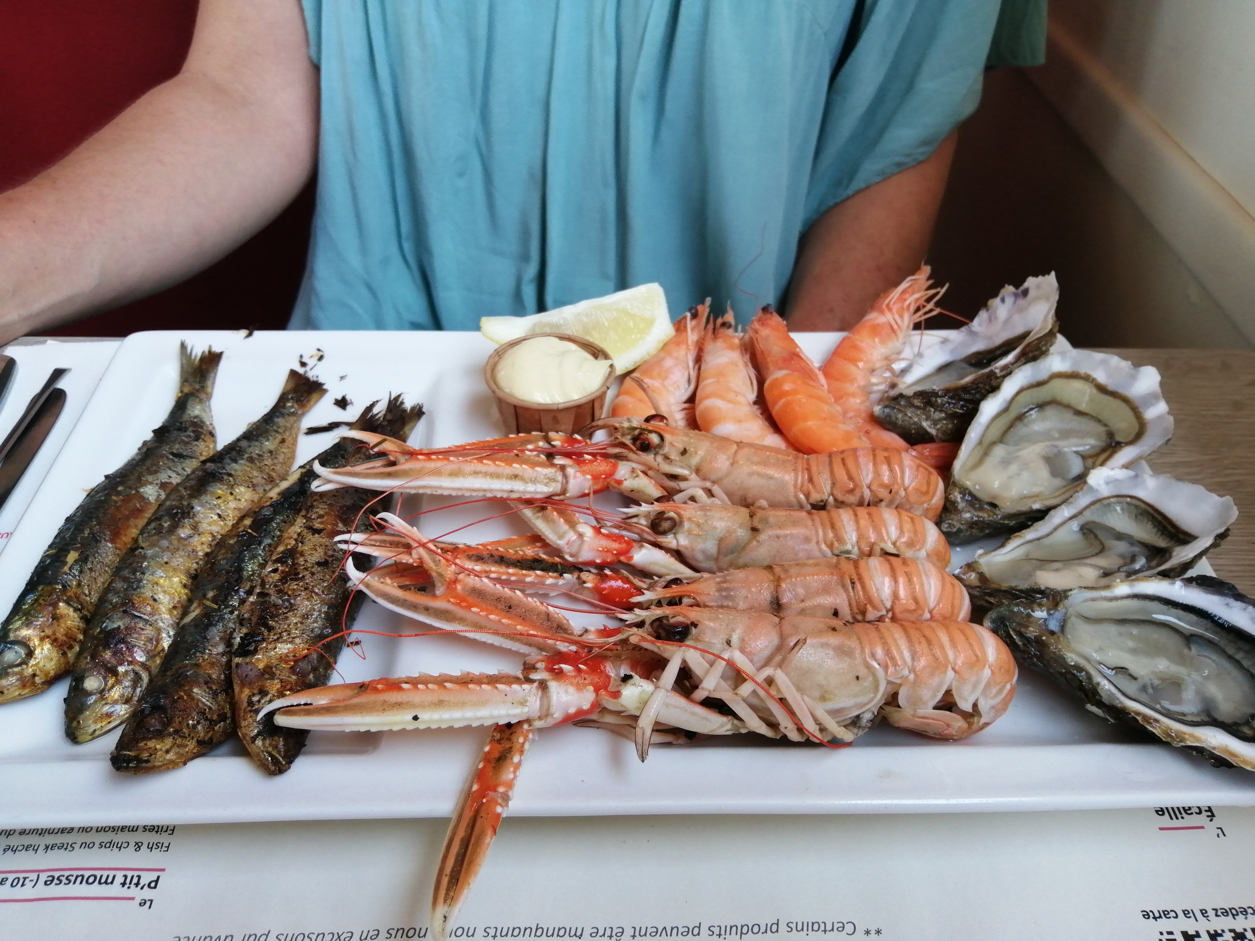 23 euros pour 4 crevettes d'élevage congelé 4 langoustines pleine d'eau mal cuite heureusement 4sardines bonne et 4 huitres, trop de tables on ne peu plus bouger