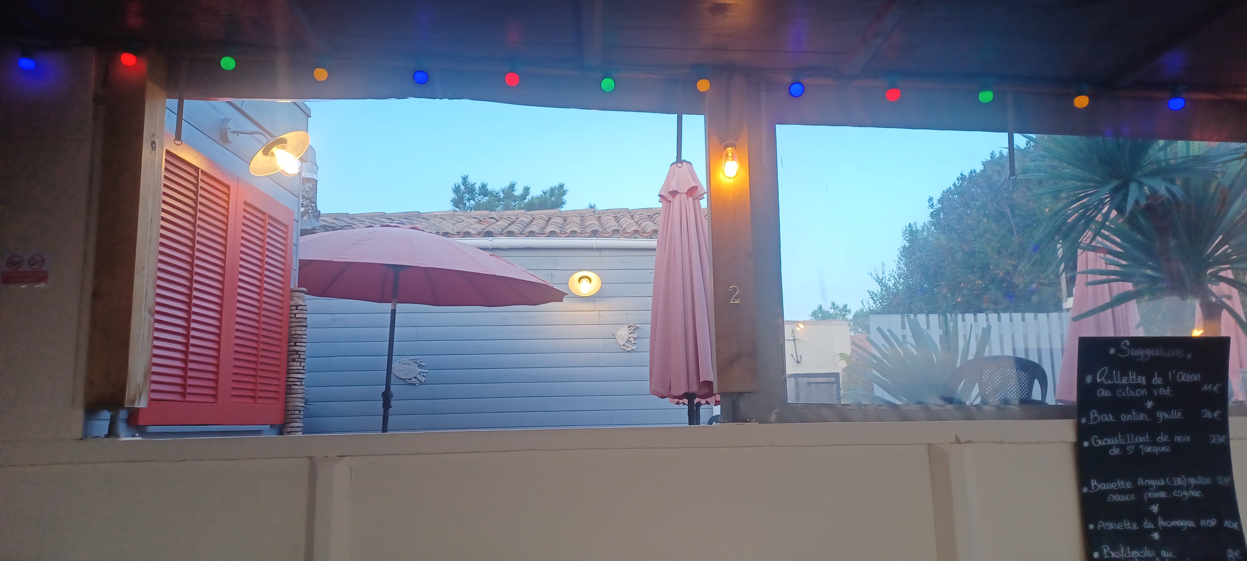 Je recommande vivement d y aller. Terrasse bord de mer en face du pont de île de ré. Coucher de soleil à tomber !!! Côté restau il faut réserver c est mieux. top fruit de mer et avec prdts locaux. A tester. Personnel super. Merci très bon moment.