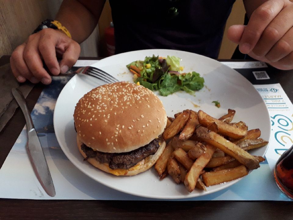 Arrêt pour une pause repas sans recherche d’établissement précis, nous y avons très bien accueilli et avons dégusté chacun un burger entre 13 et 15 pièce. Tellement copieux et bon que nous n’avons rien pris en dessert. Une bonne petite adresse sur la route du port Napoléon, c’est sûr que je ne manquerai pas de m’y arrêter si je repasse par ici. Facilité de garer sa voiture à deux pas de l’établissement.