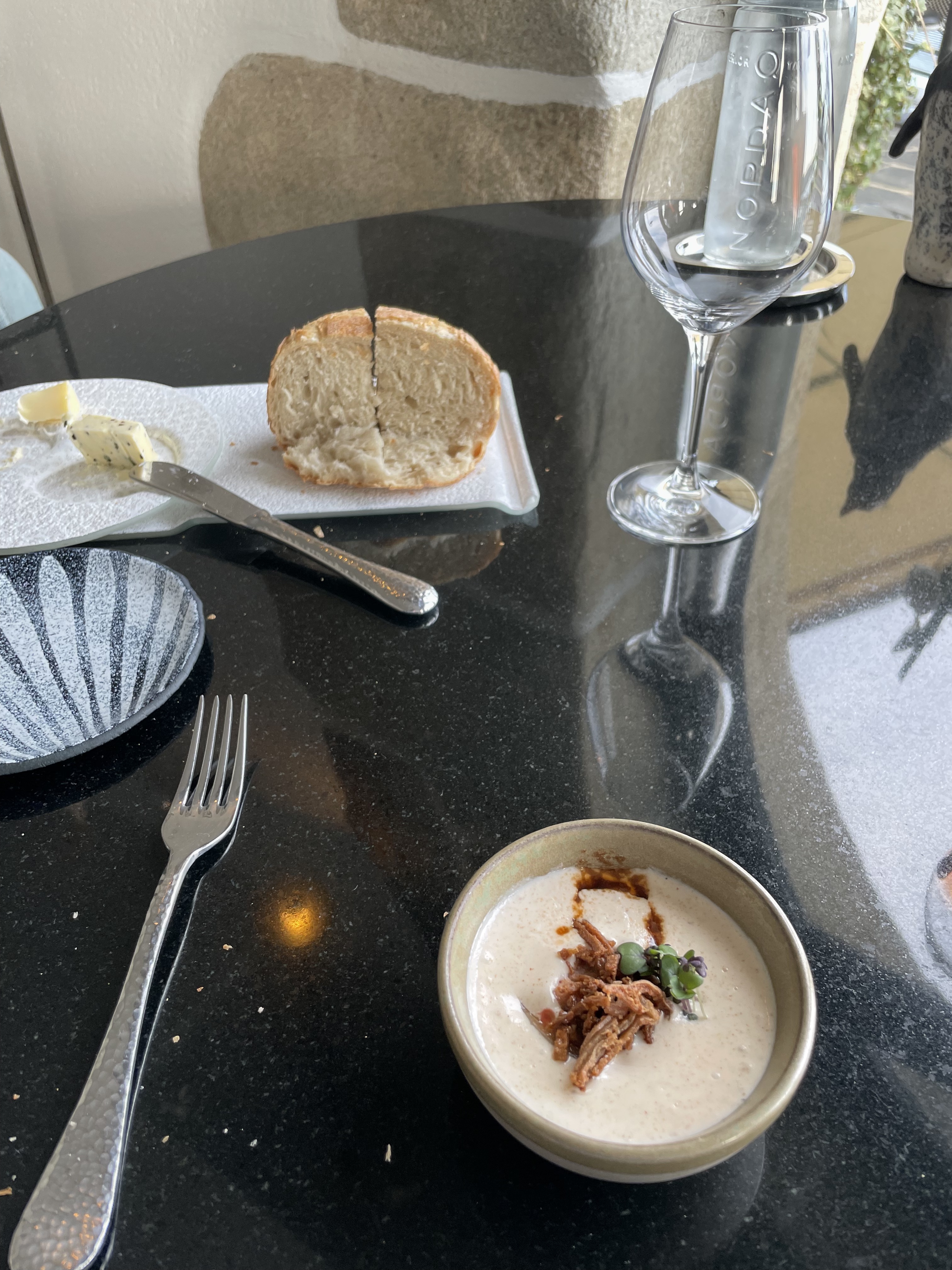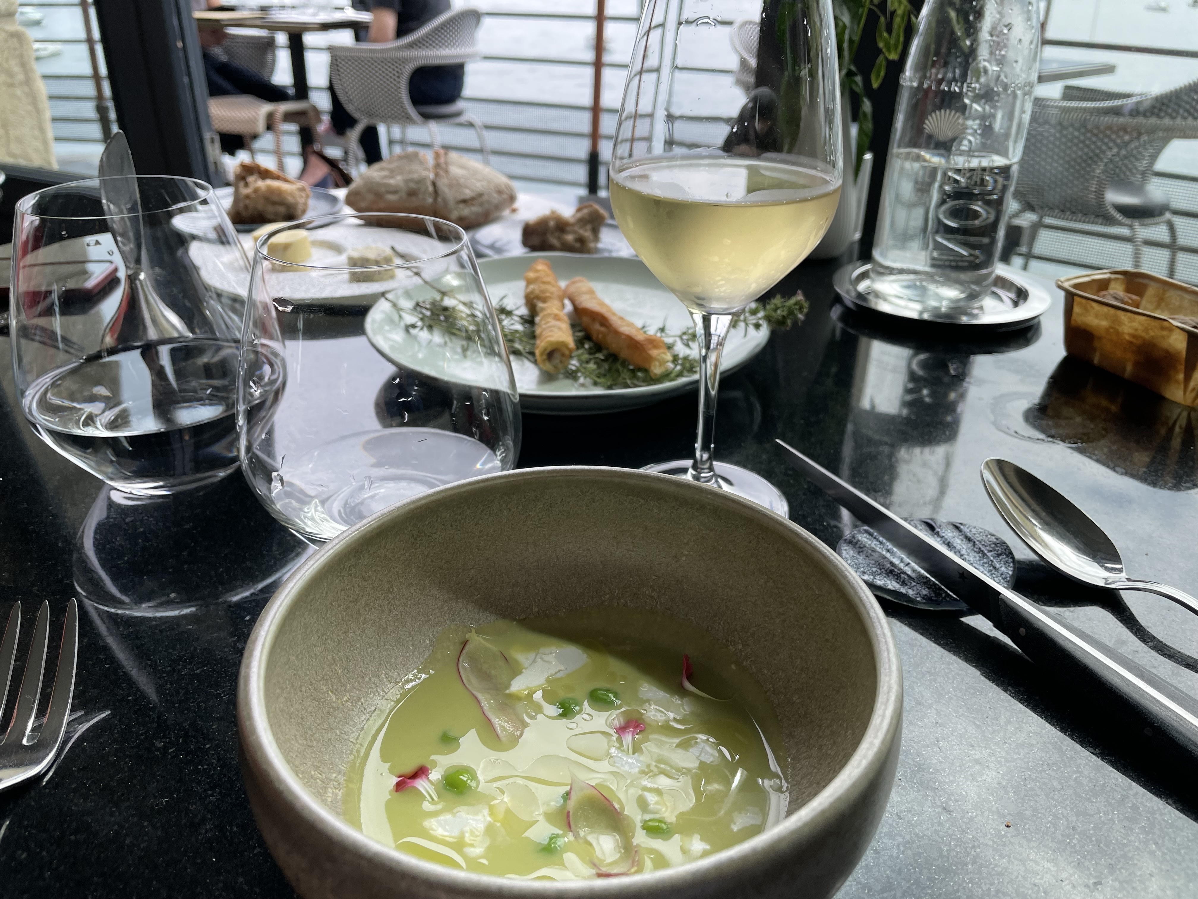 Bel endroit avec une belle vue, Personnel aimable. Note pour le chef : Pour moi qui suis allergique aux fruits de mer (j’avais prévenu lors de la resa) les entrées étaient simples et décevantes (falafel, houmous, betterave, purée de butternut…) Au prix du menu je trouve dommage de ne pas prévoir une équivalence avec du poisson ou des produits plus « nobles ». Le reste était bon particulièrement le plat de poisson avec le beurre noisette fumé aux épines de pin qui était excellent.