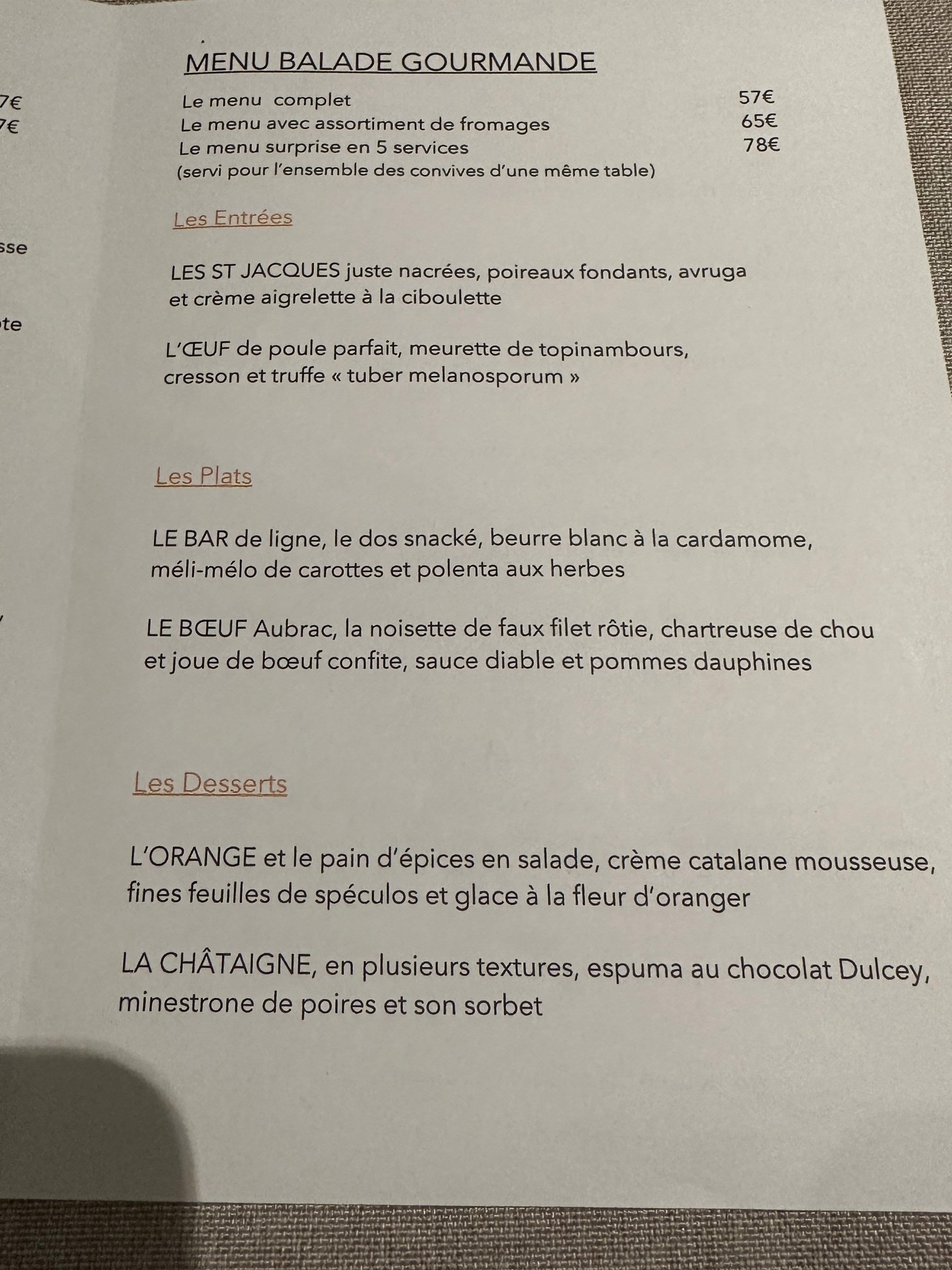 UN REGAL!!!!!!! Nous avons pu profiter du Menu Promenade avec mon compagnon, un vrai régal! Tous les plats étaient délicieux. Le Chef joue sur les textures, toujours autour du terre & mer, aucun point négatif, juste parfait! En plus de cela, le prix est vraiment abordable au vue du travail fourni et de la quantité copieuse retrouvée dans les assiettes! Le service était très agréable aussi. Je vous le recommande!