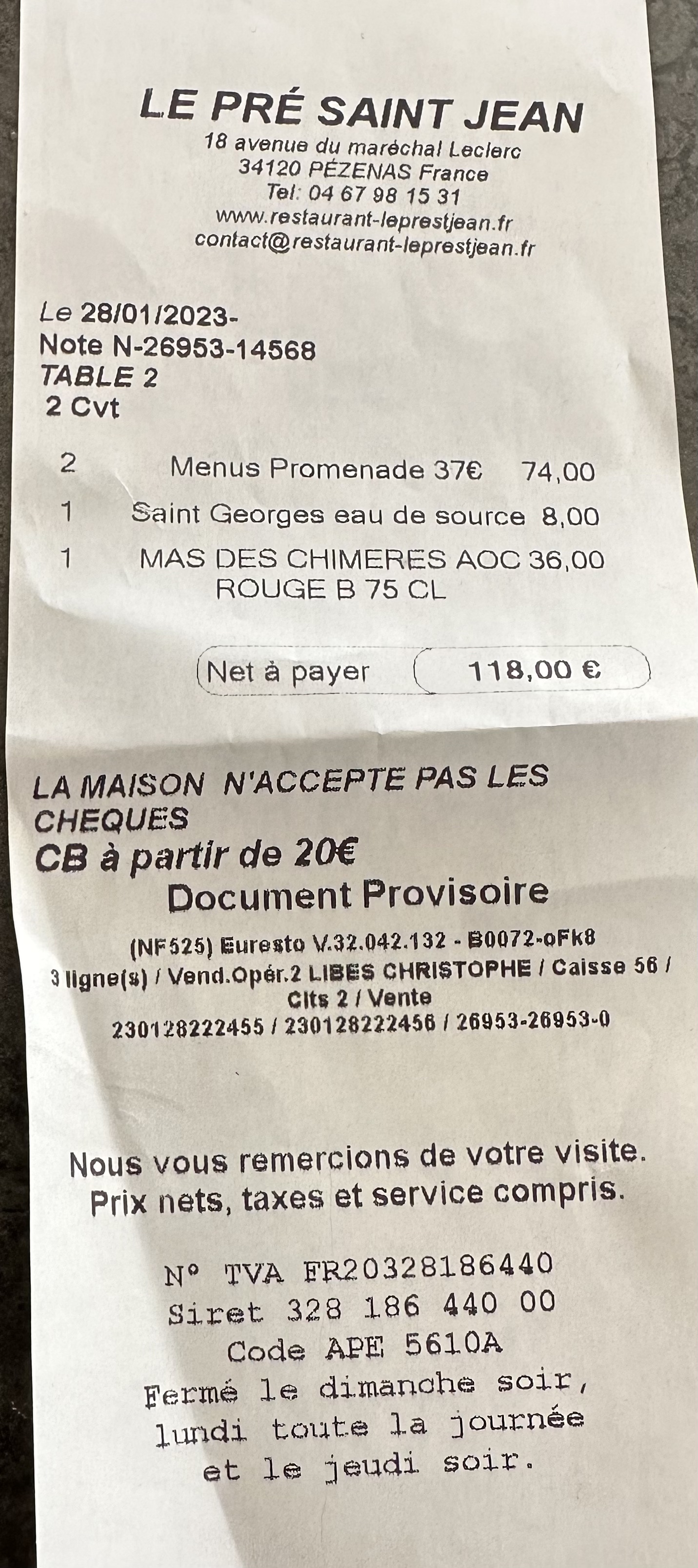 Nous y avons plusieurs fois déjeuner prestations très satisfaisantes. Le 7 nous avons fait un repas d'anniversaire quatre personnes seule l'addition nous laissera un souvenir.... Nous en avons fait part au responsable de salle...le chef doit reagir sur Pezenas il y a mieux. Voilà...