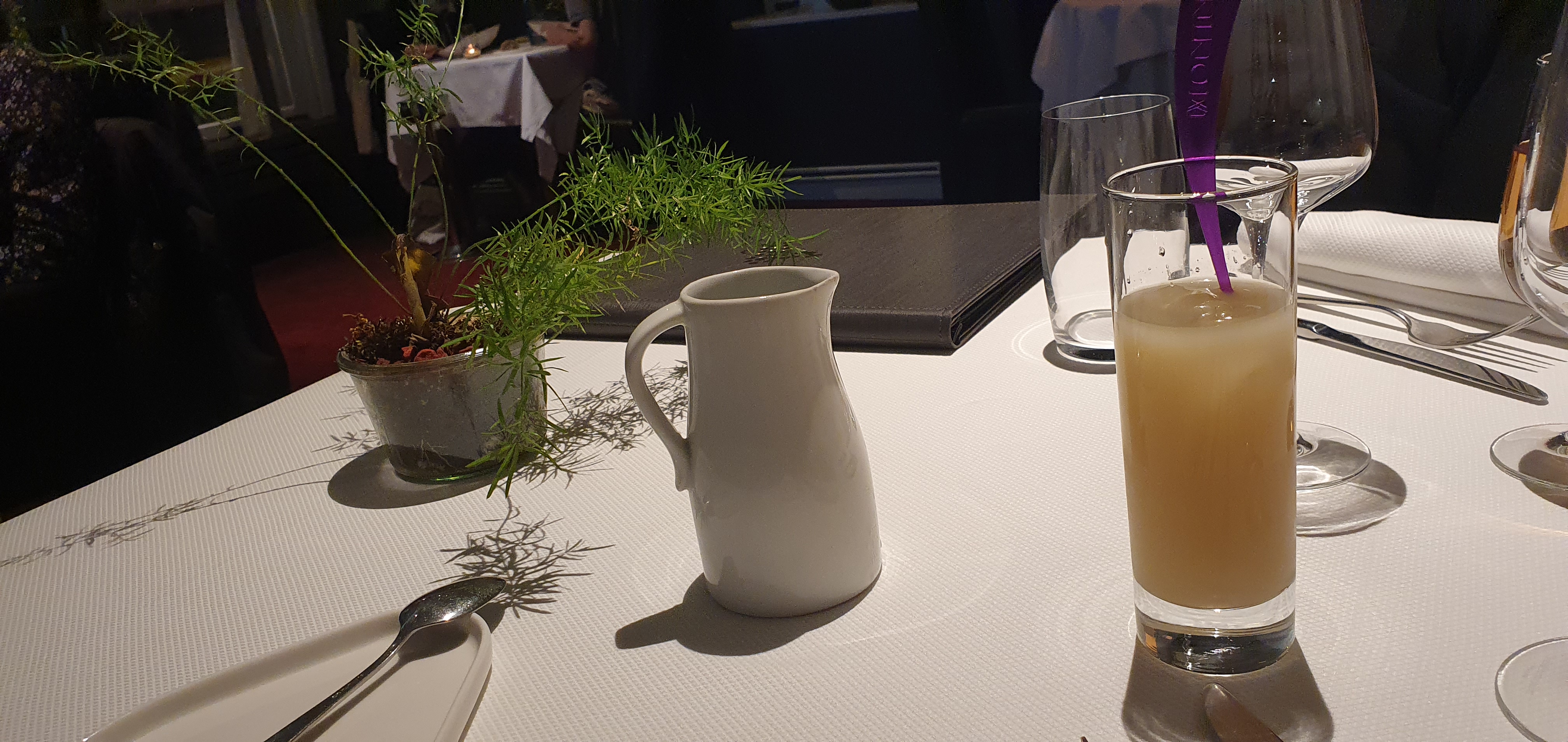 Formidable. Nous sommes venus en vélo et avions peur de ne pas être acceptés. Nous avons été chaleureusement accueillis et on nous a donné une table. Le menu que nous avons choisi était excellent du début à la fin. Un merveilleux jeu d'arômes, harmonieux et finement accordé à chaque service. Le sommelier brille par ses connaissances, son charme et son esprit. Il parle également allemand. L'ambiance est discrète et crée une atmosphère agréable. Dans l’ensemble, absolument recommandé.