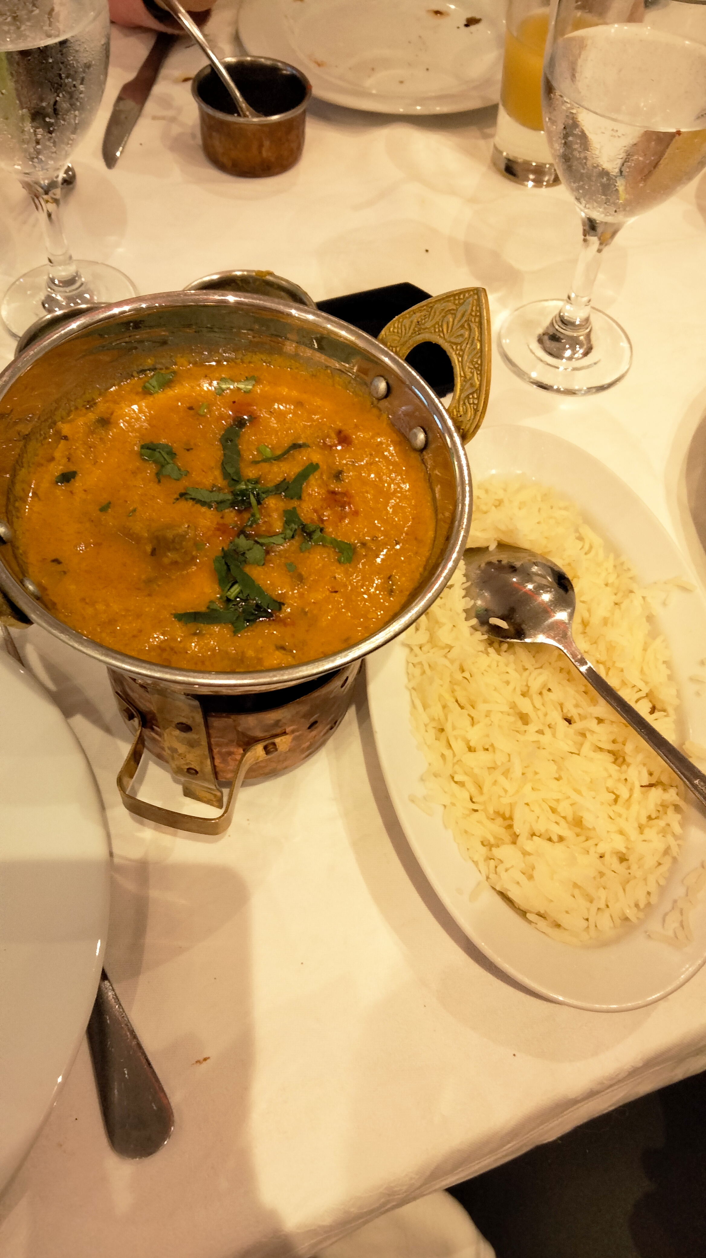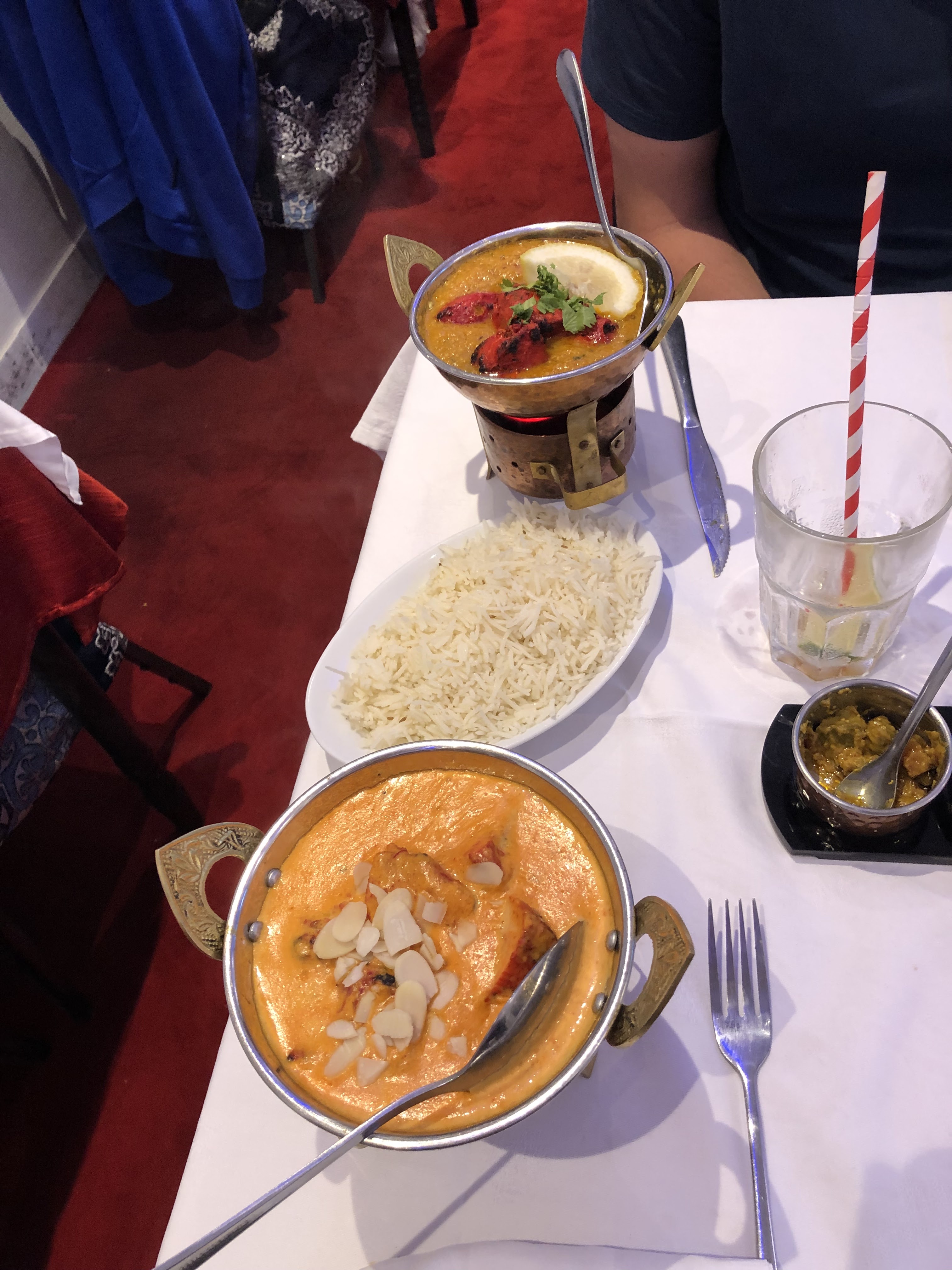 Habitué des restaurants indien, nous avons été très déçu. Riz en quantité largement insuffisante et payant si nous voulons en avoir davantage ( j’ai tout de même réussi à avoir du riz supplémentaire gratuitement pour finir mon plat). Poulet a peine cuit, voir encore rose. Viande de moindre qualité et sauce (trop) sucré. Passez votre chemin. Ne pas ce fier aux commentaires positifs qui vantent les mérites de ce restaurant, qui sont à mon avis montés de toute pièce. Néanmoins personnel agréable et accueillant et décoration présente. Dommage cela aurait pu être un très bon restaurant.