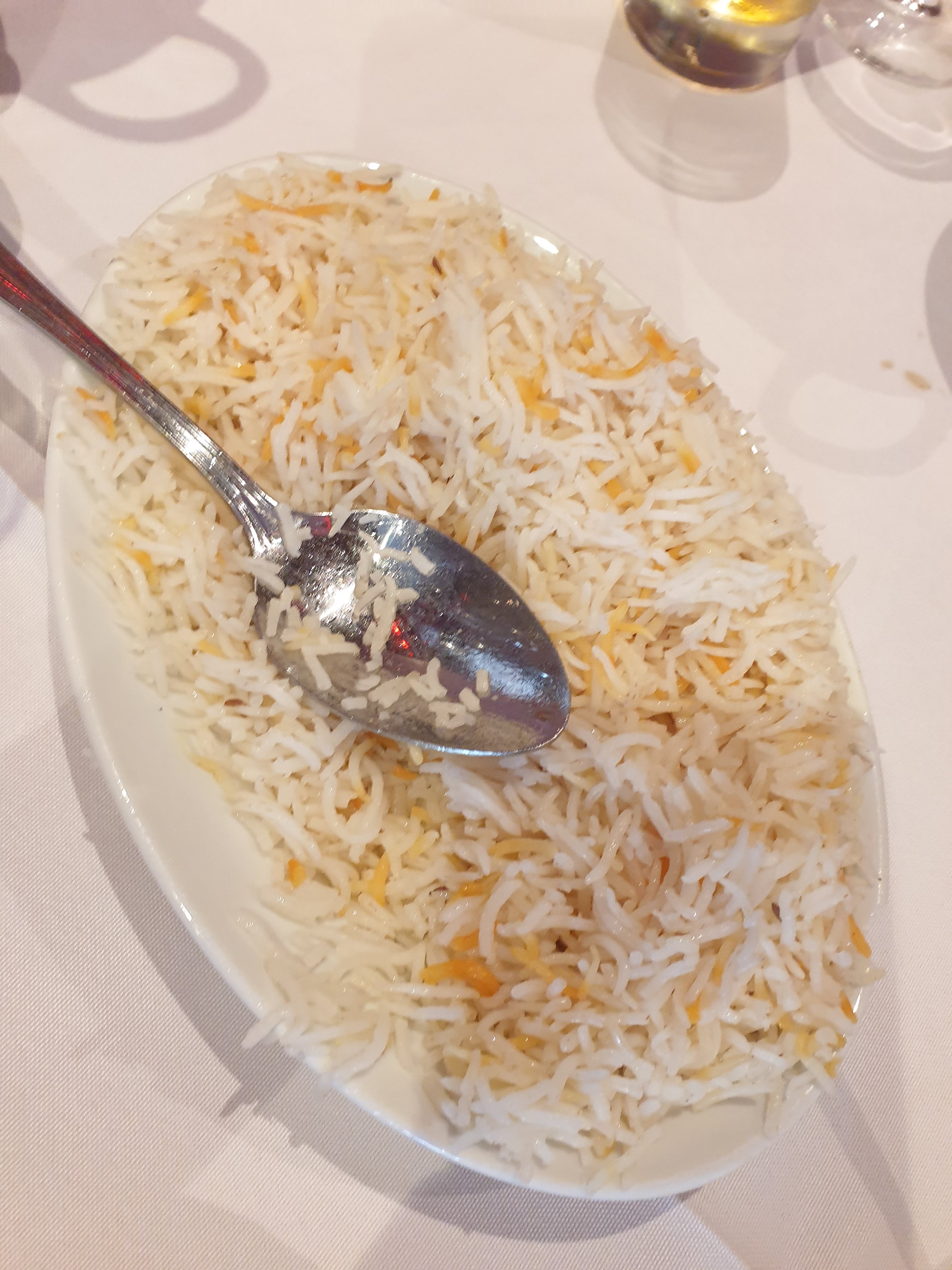 Bon restaurant, beau décor, nappe et serviettes en coton blanc épais, service rapide. Toilettes propres. Riz aérien. Plats hors menu vous emmène a plus de 20 euros par tête. mon meilleur indien.